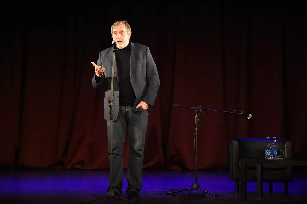 — Меня пригласил Эвклид Кюрдзидис, президент кинофестиваля «Хрустальный источникЪ». Это очень приятно. Меня здесь хорошо принимают, и, надеюсь, зритель отнесется ко мне благосклонно. Не так часто я это делаю, но мы договорились о моем приезде еще два года назад: был на кинофестивале «Хрустальный источникЪ», и тогда возникла идея сделать такой творческий вечер. В рамках кинофестиваля мы думали и о выставке, и ретроспективе Высоцкого в кино… В эти планы внесла коррективы пандемия. Но фестиваль будет продолжаться, в следующем году он пройдет уже в пятый раз, и я думаю, что мы это сделаем.