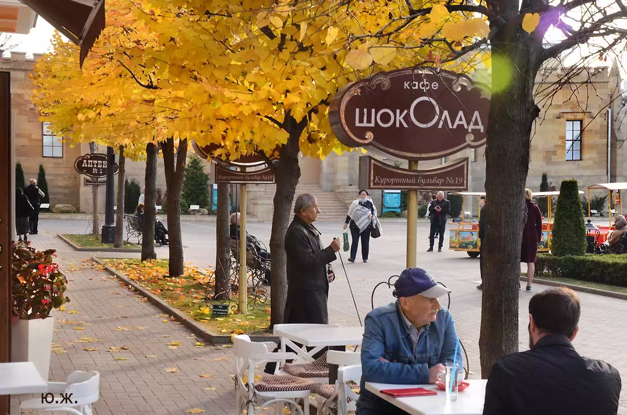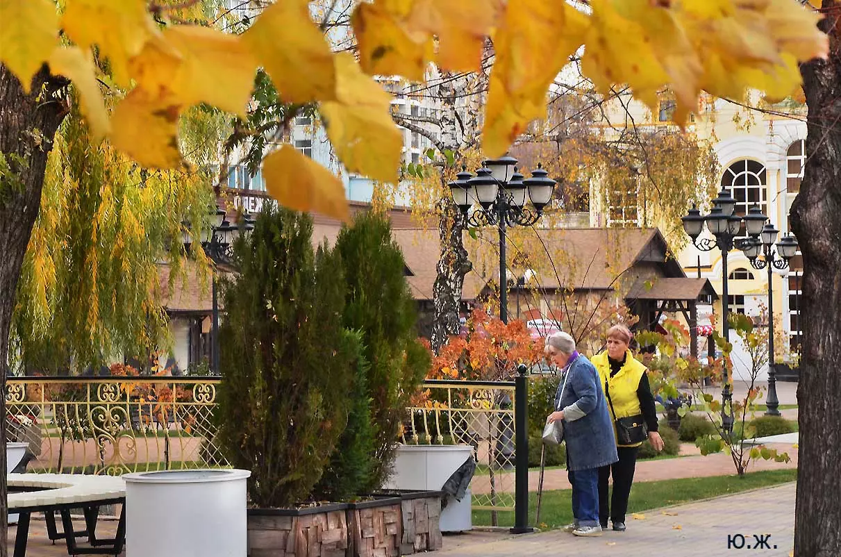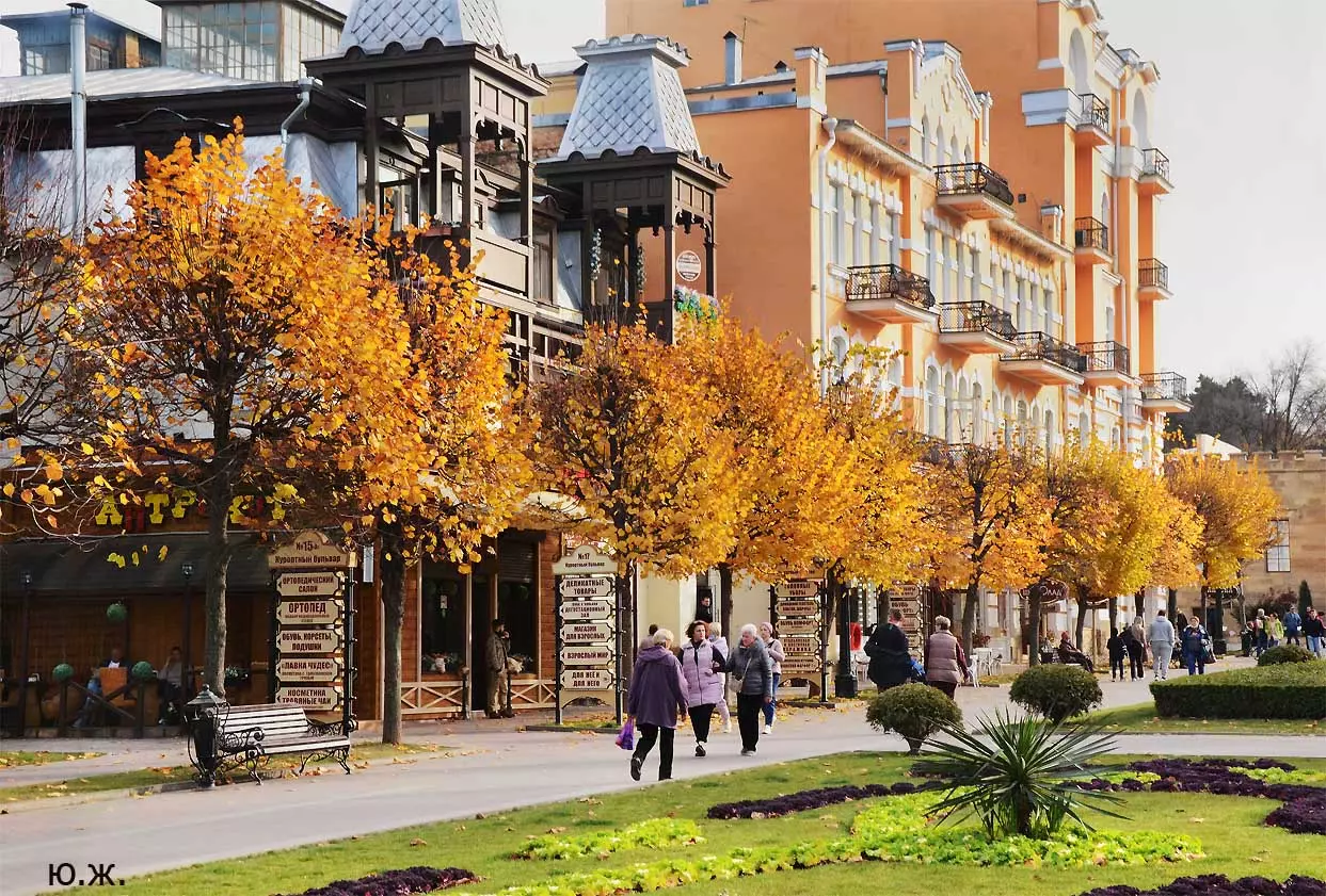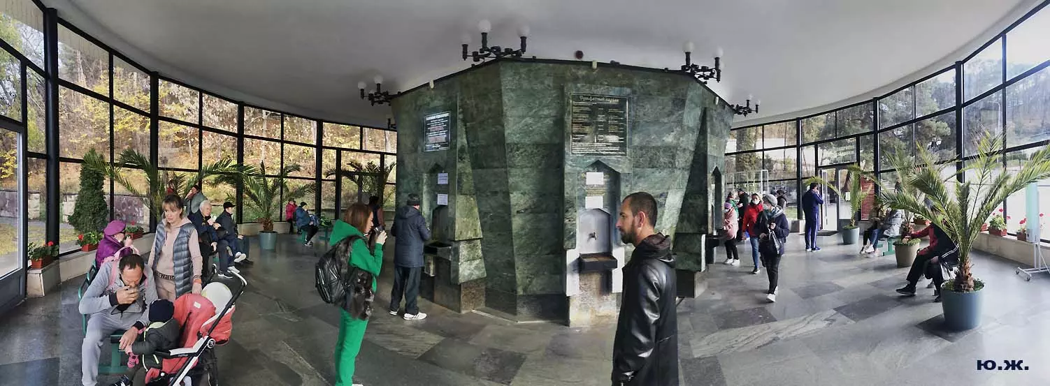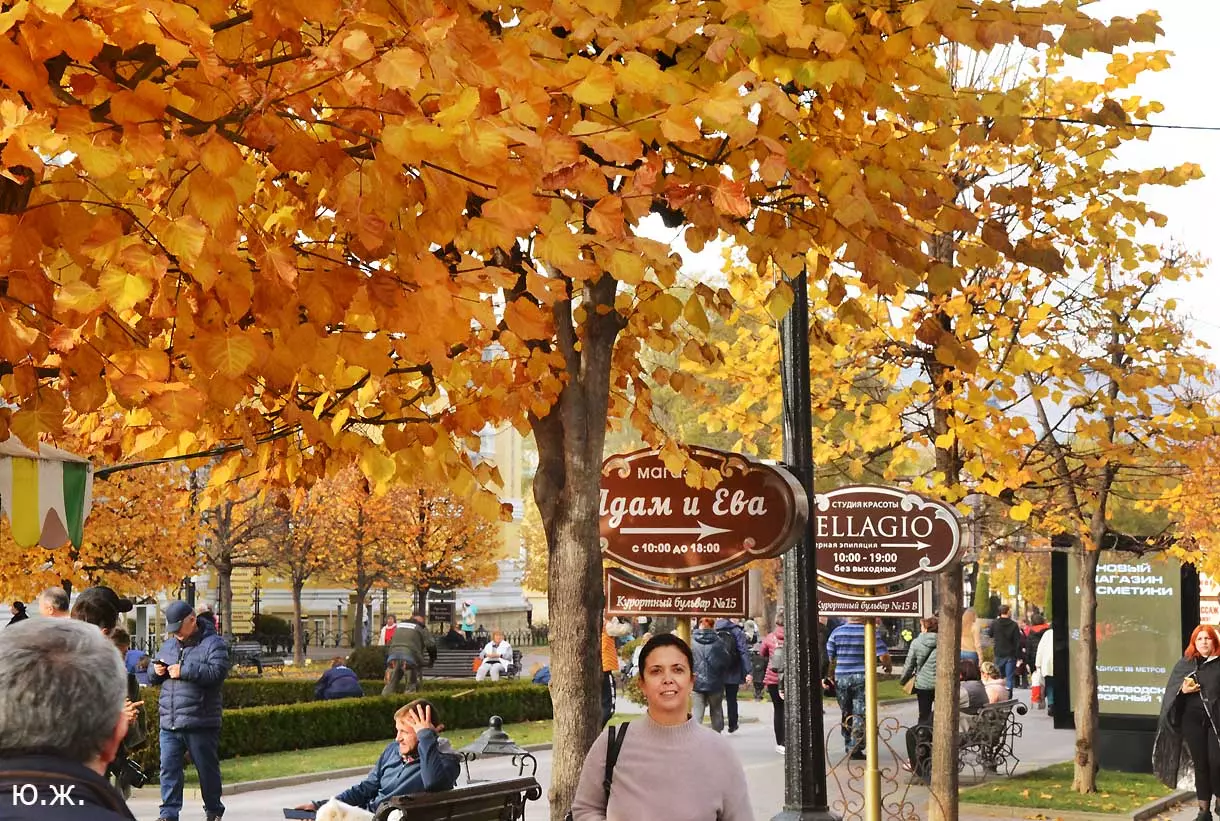 А на место снесенных деревьев сразу же высадили 15-летние липы. Там же у Колоннады провели осеннее кронирование взрослых деревьев. Оживленно сейчас у круглого нарзанного бювета, что у здания Курортного совета.(на фото) У Цветомузыкального фонтана -первый новогодний мотив, над его круглой чашей, оборудуется место для новогодней ели. Нашему бронзовому «нищему» стали щедро подавать…