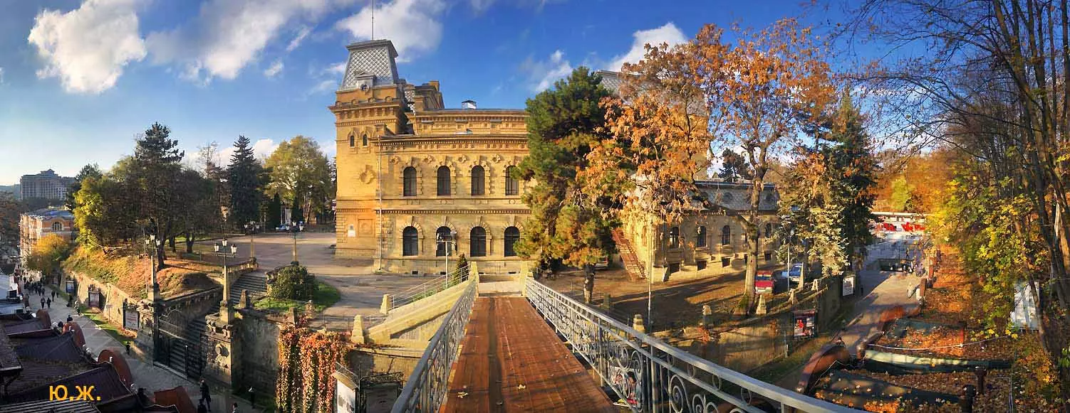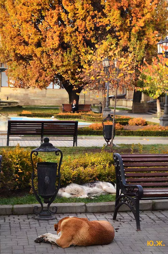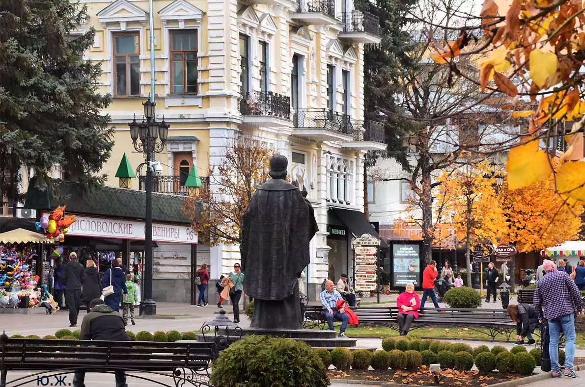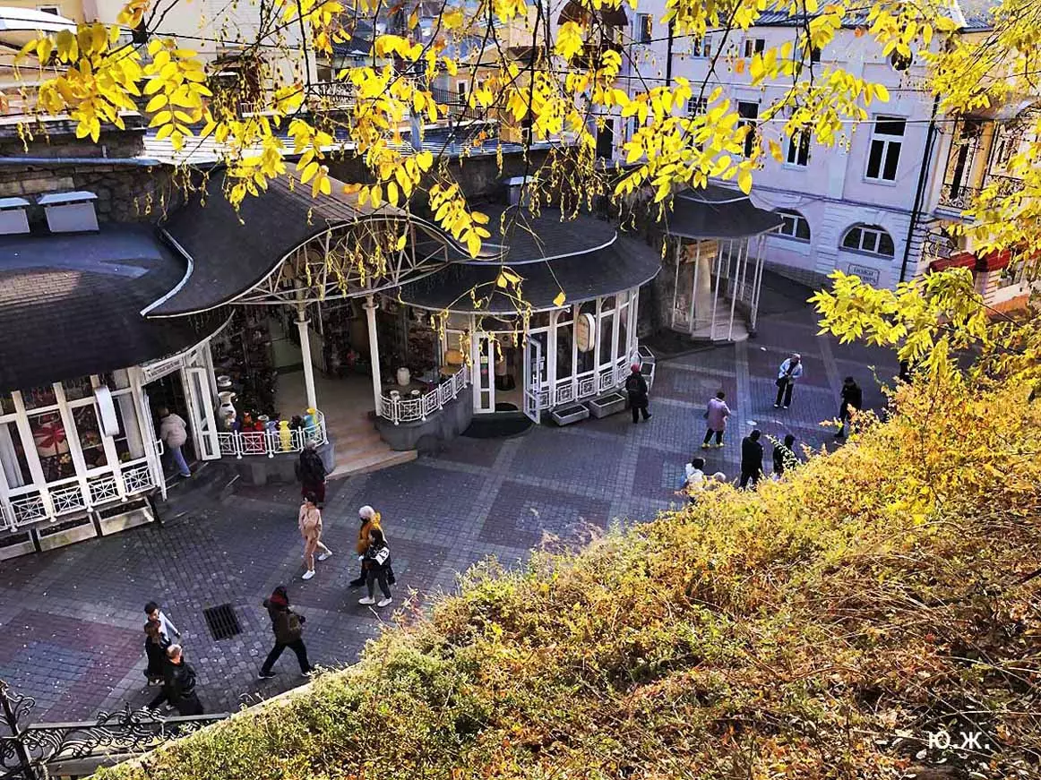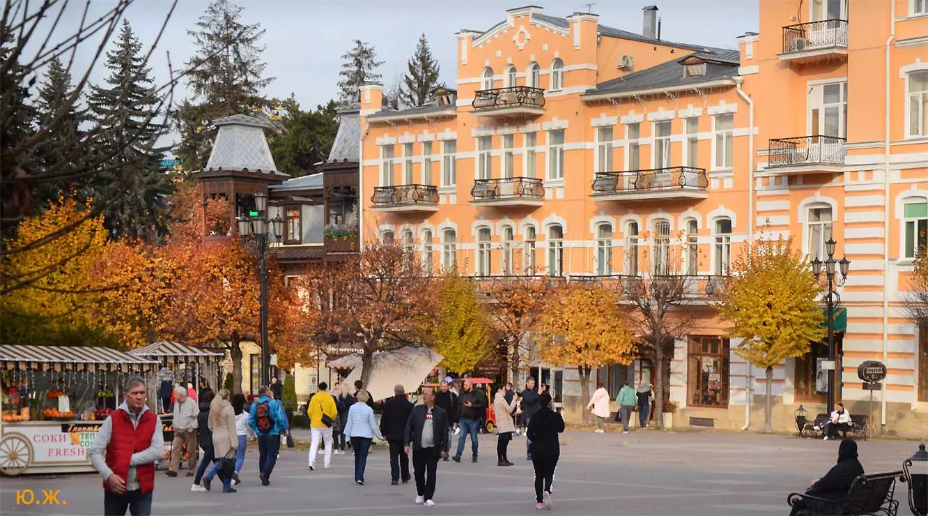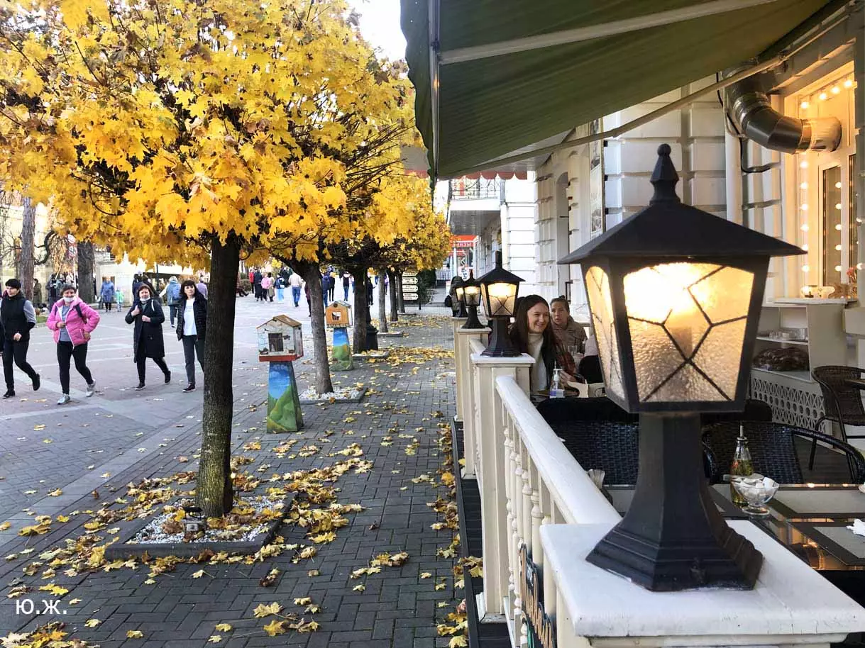 А на место снесенных деревьев сразу же высадили 15-летние липы. Там же у Колоннады провели осеннее кронирование взрослых деревьев. Оживленно сейчас у круглого нарзанного бювета, что у здания Курортного совета.(на фото) У Цветомузыкального фонтана -первый новогодний мотив, над его круглой чашей, оборудуется место для новогодней ели. Нашему бронзовому «нищему» стали щедро подавать…