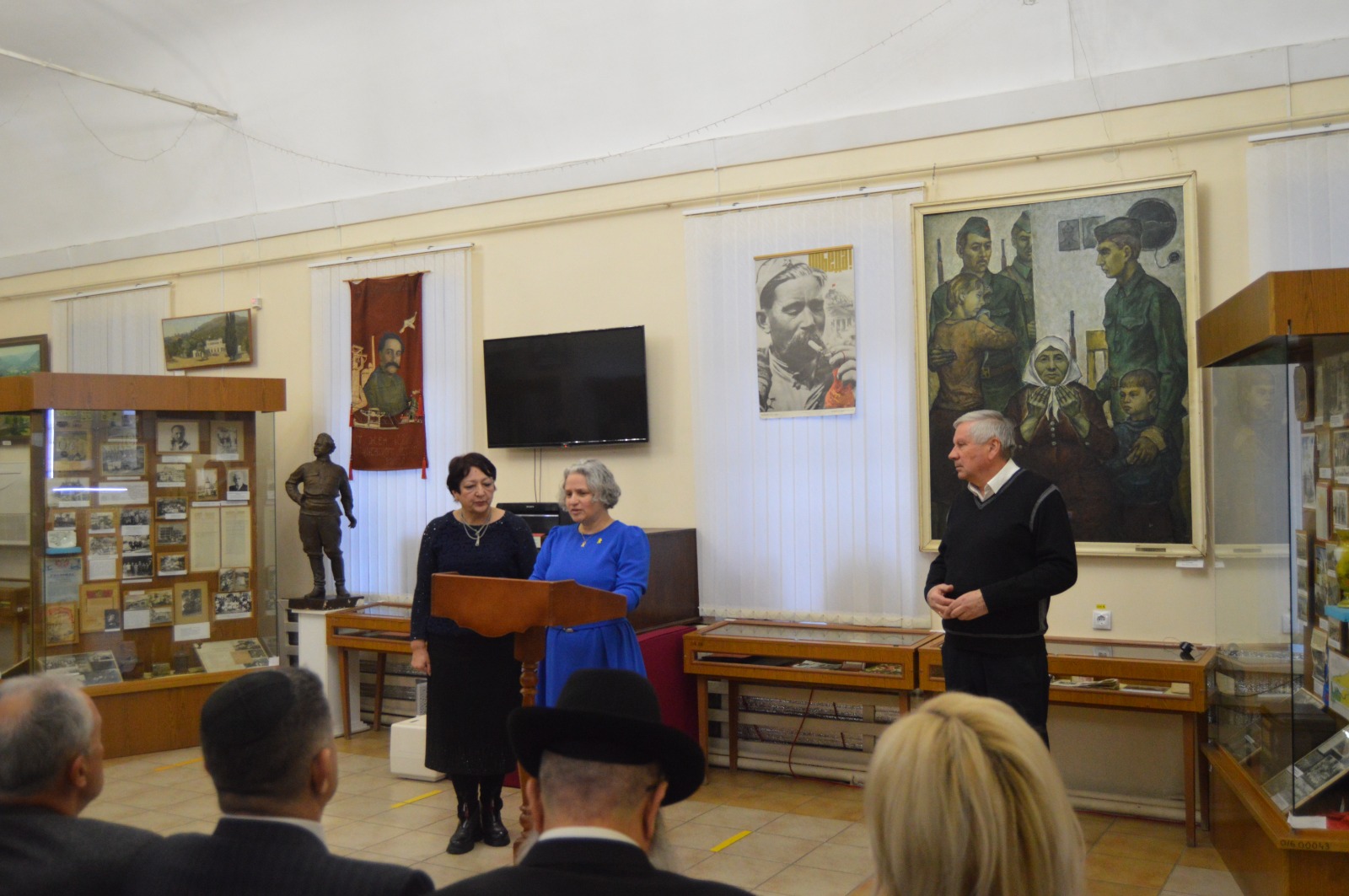 На фото слева направо: Виктория Полухина, чрезвычайный и полномочный посол Израиля в РФ Симона Гальперин, директор ГБУК СК «КИКМ «Крепость» Сергей Степанович Лузин