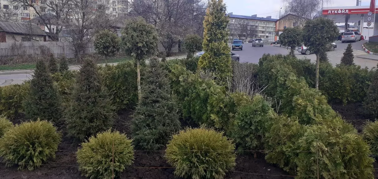 На малых пространствах и газонах довольно сложно воплотить что-то глобальное, а вот это направление ландшафтного дизайна как раз в точку. Разные по размеру растения и кустарники как нельзя лучше создадут объём и придадут форму небольшой клумбе или же украсят маленький газон. Два таких объекта благоустраиваются и в Кисловодске: на пересечении улиц Азербайджанской-Ленинградской и Римгорской-Замковой. Разные породы хвойных, зелёных и золотистых туй, высажены на круглых клумбах-газонах в виде орнамента, который создаёт объёмный узор или фигуру. Гармонично вписываются в узор и малые деревца туй, постриженные в виде шара.