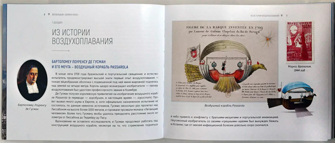 История воздухоплавания ведет свой отчет с лета 1709 года, когда бразильский и португальский священник Бартоломеу Лоуренсу де Гусман продемонстрировал высшей знати, как тонкая яйцевидная оболочка поднялась над землей на четыре метра. Король щедро вознаградил изобретателя. Пионер воздухоплавания был удостоен профессорского звания. Прошли многие десятилетия, прежде чем французы, братья Монгольфье, Жак -Этьен и Жозеф-Мишель на своей фабрике изготовили и запустили в воздух шар, который взлетел на высоту до полутора километров и опустился в 4200 футов от места подъема. Узнав об этом Французская академия предложила братьям финансирование их экспериментов. 19 сентября 1783 года с территории резиденции Людовика ХVI Версаль, братья Монгольфье подняли свой новый шар. Это было настоящее произведение искусства. Высотой в 20 метров воздушный шар пролетел четыре км, поднялся в небо на пятьсот метров и затем плавно приземлился. Первые аэростаты были богато декорированы: на голубом фоне вышита фигура короля, вся поверхность была расшита вензелями и богатым орнаментом, в нижней части крепилась круглая галерея для путешественников… Эру Монгольфьеров сменила эра Шальеров, затем Розъеров. Конструкции шаров постоянно менялись, достижения по дальности полетов и высоте росли. Вот уже известный изобретатель и фотохудожник француз Надар, поднявшись на своем шаре впервые фотографирует Париж с высоты птичьего полета. Аэростаты стали использовать для воздушной разведки, картографии…