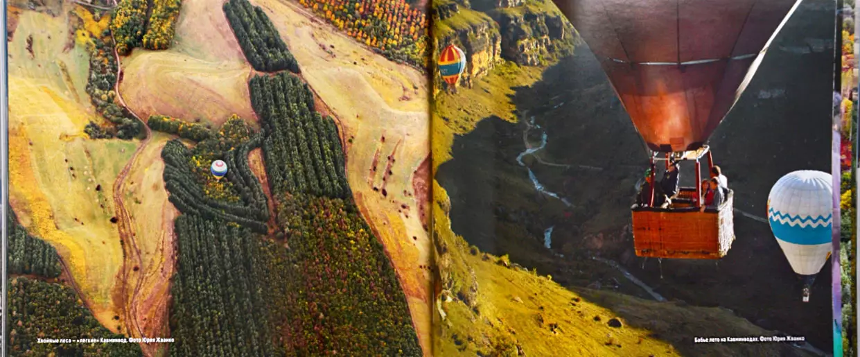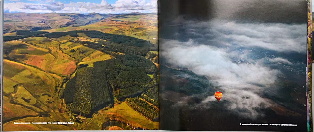 В третьей части фотоальбома представлены фотографии Юрия Жванко, снятые с корзины аэростата с высоты птичьего полета: это наш прекрасный регион Кавказские Минеральные Воды, его города и живописные окрестности, горы-лакколиты, каньоны, виды на Эльбрус и Кавказский хребет, хвойные леса как легкие Кисловодска. Снимки даны одним блоком , более пятидесяти страниц, все сопровождаются подтекстовками….