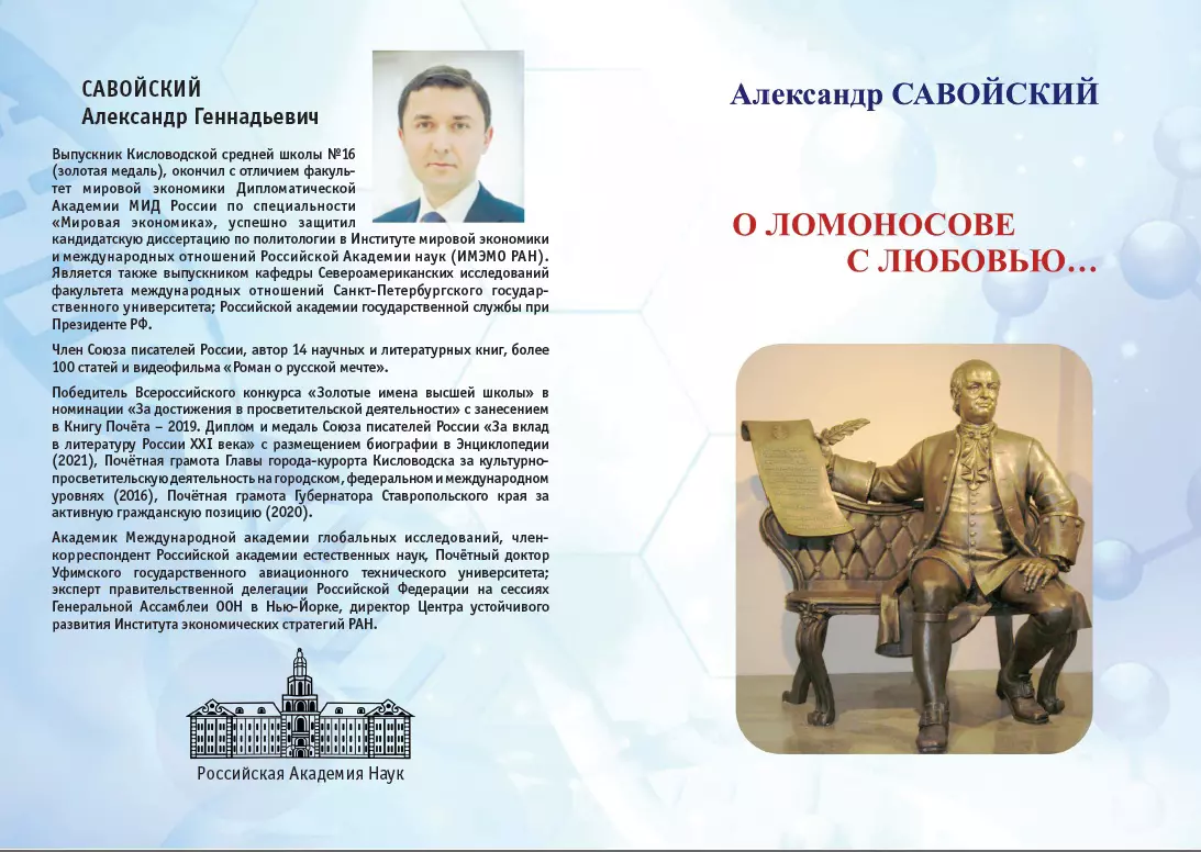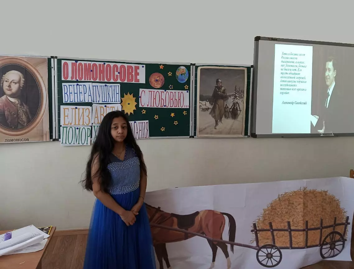 В среду, 18.05.2022 Г., в рамках празднования 310-летия со дня рождения Михаила Васильевича Ломоносова, великого сына России, 7 «б» класс МБОУ СОШ 12 города-курорта Кисловодска гостеприимно распахнул двери своего кабинета, пригласив всех желающих посетить открытый урок по книге кисловодчанина Александра Савойского, члена Союза Писателей России, «О Ломоносове с любовью…».