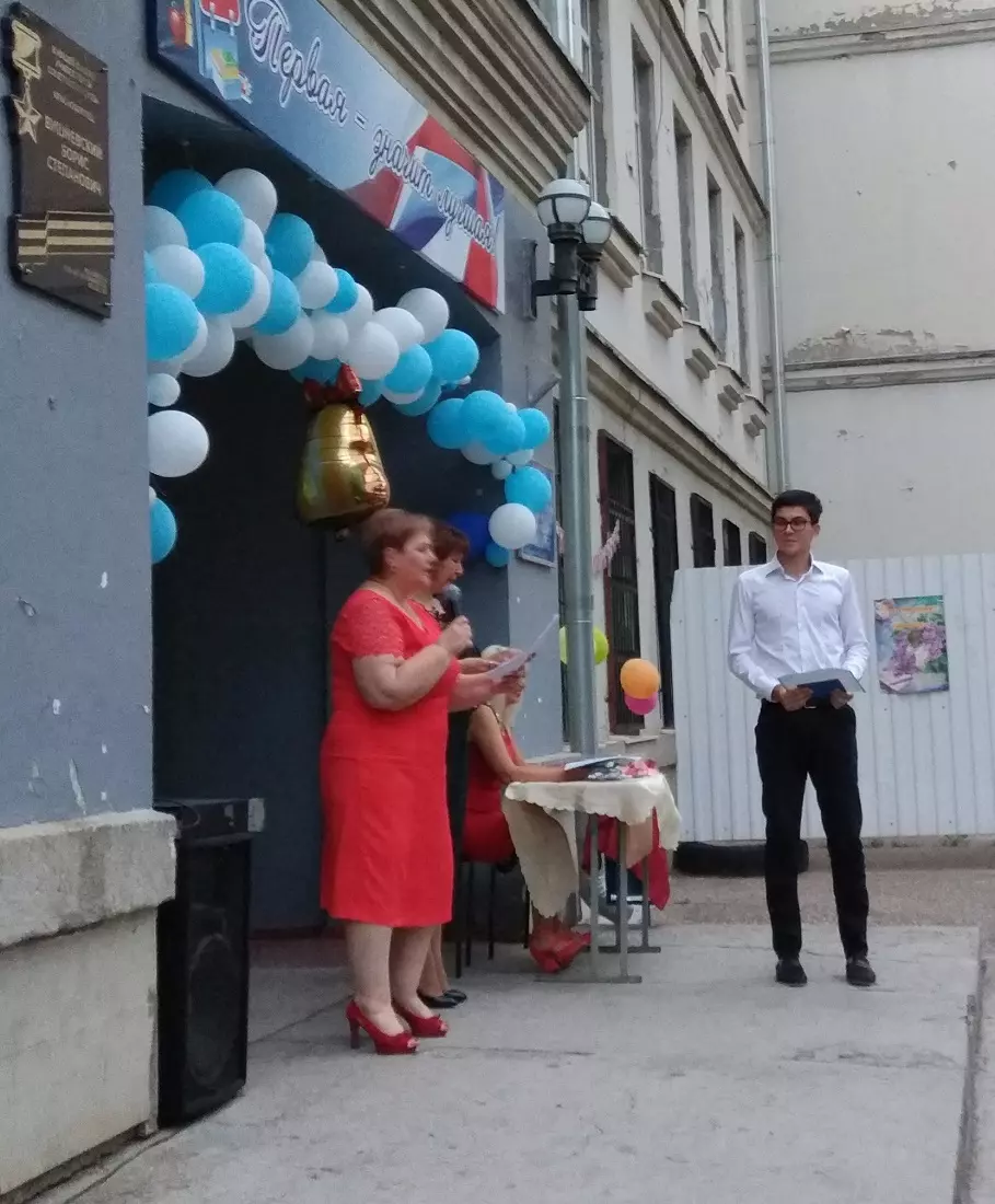 А вечером в старейшей школе курорта Кисловодска – СОШ № 1 — своих 25 выпускников в самостоятельную жизнь проводили словами поздравления, напутствиями и пожеланиями директор школы Наталия Николаевна Осипьянц, заместитель директора по воспитательной работе Эльмира Рашидовна Гафарова, первые учительницы, подготовившие малышей двух классов к средней школе – Елена Анатольевна Бурова и Зоя Грантовна Газарян, а также почетный гость – депутат думы города-курорта Игорь Юрьевич Костюк. Трогательным сопровождением вручения аттестата стал сюрприз от классного руководителя Инны Юрьевны Познахаревой, обратившейся к каждому своему ученику с характеристикой и индивидуальным пожеланием … в стихах .
