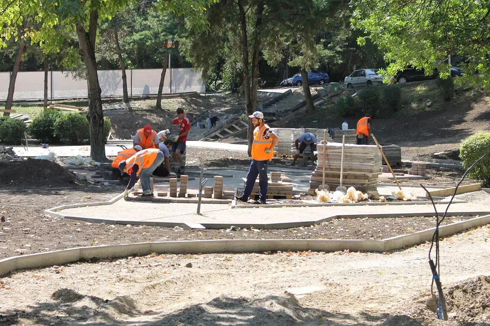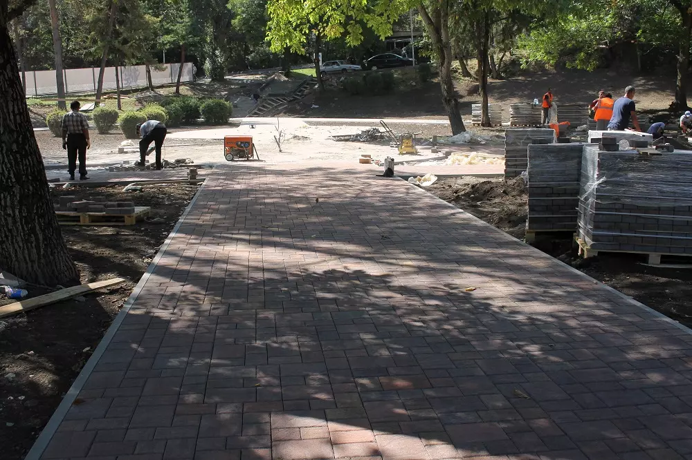 Сквер Победы (а именно такое название теперь будет носить эта территория) откроется осенью, а его ландшафтная основа вырисовывается уже сейчас. Подрядная организация работает с опережением сроков, а за строительством наблюдает экспертная группа строителей и общественников. В сквере будут выложенные плиткой прогулочные дорожки, освещение, места для отдыха, удобные скамейки, а также площадка с аттракционами для детей, которую сейчас изготавливают на заводе по специальному эскизу. На ней будут качели новых фигурных форм.