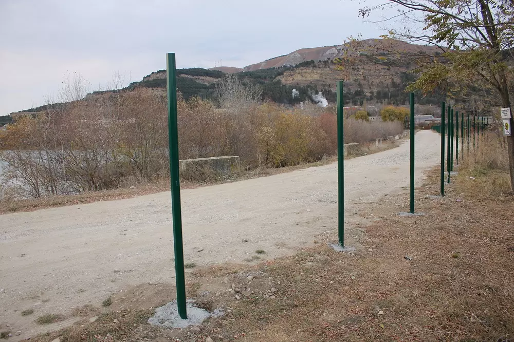 Сейчас рабочие устанавливают порядка 160 восьмиугольных столбов в день. Когда все они будут готовы, начнется монтаж сетки по периметру. Предусмотрены также калитки и ворота для свободного доступа на территорию озера.