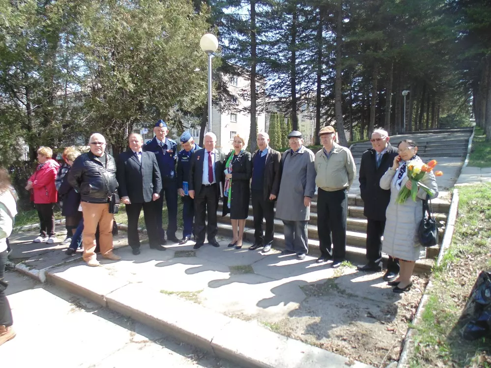 В этот день у памятника выступили также заместитель главы администрации города по социальным вопросам Т.А. Загуменная, представитель ветеранов Вооружённых сил В.В. Зубарев, ветеран-педагог В.Ф. Сасса. Собравшиеся почтили память минутой молчания и возложили цветы в честь дня ксмонавтики.