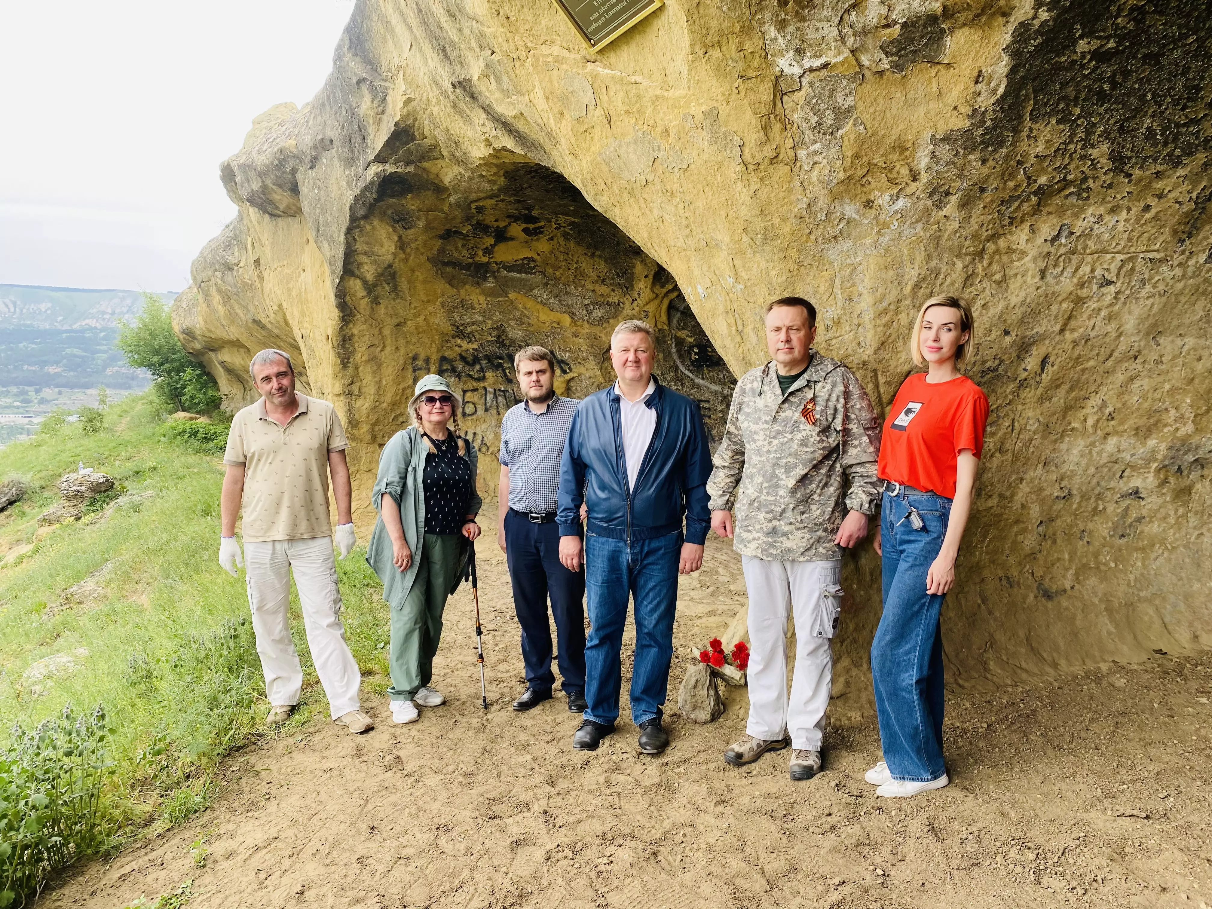 Сегодня кисловодские добровольцы по инициативе депутата думы Ставропольского края Николая Мурашко установили информационную табличку возле исторического места, связанного с событиями Великой Отечественной. Речь — об одной из пещер в Кисловодске на склоне Джинальского хребта. Здесь в 1942 году, в период наступления гитлеровских войск на Ставрополье и оккупации города, курсанты Ростовской школы ВВС, эвакуированной в Кисловодск, оставили надпись, обещая жителям вернуться!