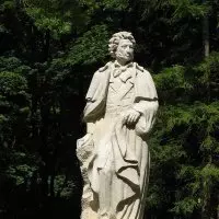Правее павильона на уютной площадке для отдыха, со всех сторон окруженной деревьями и цветниками, в центре расположен памятник великому русскому поэту Александру Сергеевичу Пушкину, который первым в русской поэзии воспел Кавказ не по книгам и чужим рассказам, а по собственным личным впечатлениям. Он называл Кисловодск волшебной страной, «где сама природа обладает особенными свойствами, здесь вдыхаешь бодрость, удовольствие, счастье». В память о пребывании великого поэта в Кисловодске, в честь двухсотлетней годовщины со дня рождения поэта в 1999 году был установлен памятник – молодой поэт стоит в полный рост и задумчиво смотрит на горные вершины. Автор памятника талантливый известный, местный скульптор Гурген Вараздатович Курегян (1942-2002 годы жизни).