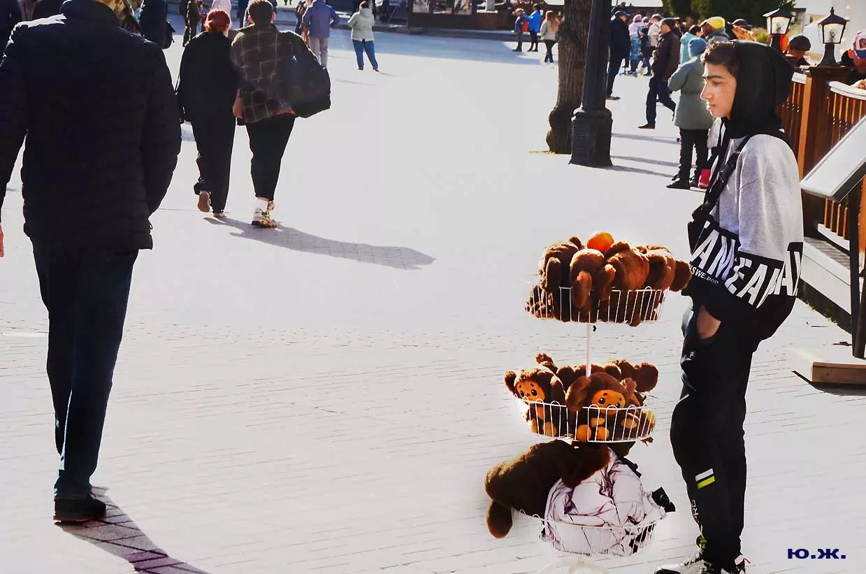 Первого апреля прогулялся по Курортному бульвару. Получил удовольствие. Это еще и день смеха, розыгрышей. Везде множество плюшевых Чебурашек, думаю, вряд ли в других городах страны видели их столько и сразу. И еще приятно, что Первого апреля Чебурашек предлагали симпатичные молодые люди и девушки. У грота Демона еще стояло и моточудо Гены, с апельсинами. Здесь представлена небольшая подборка фотографий на эту тему.