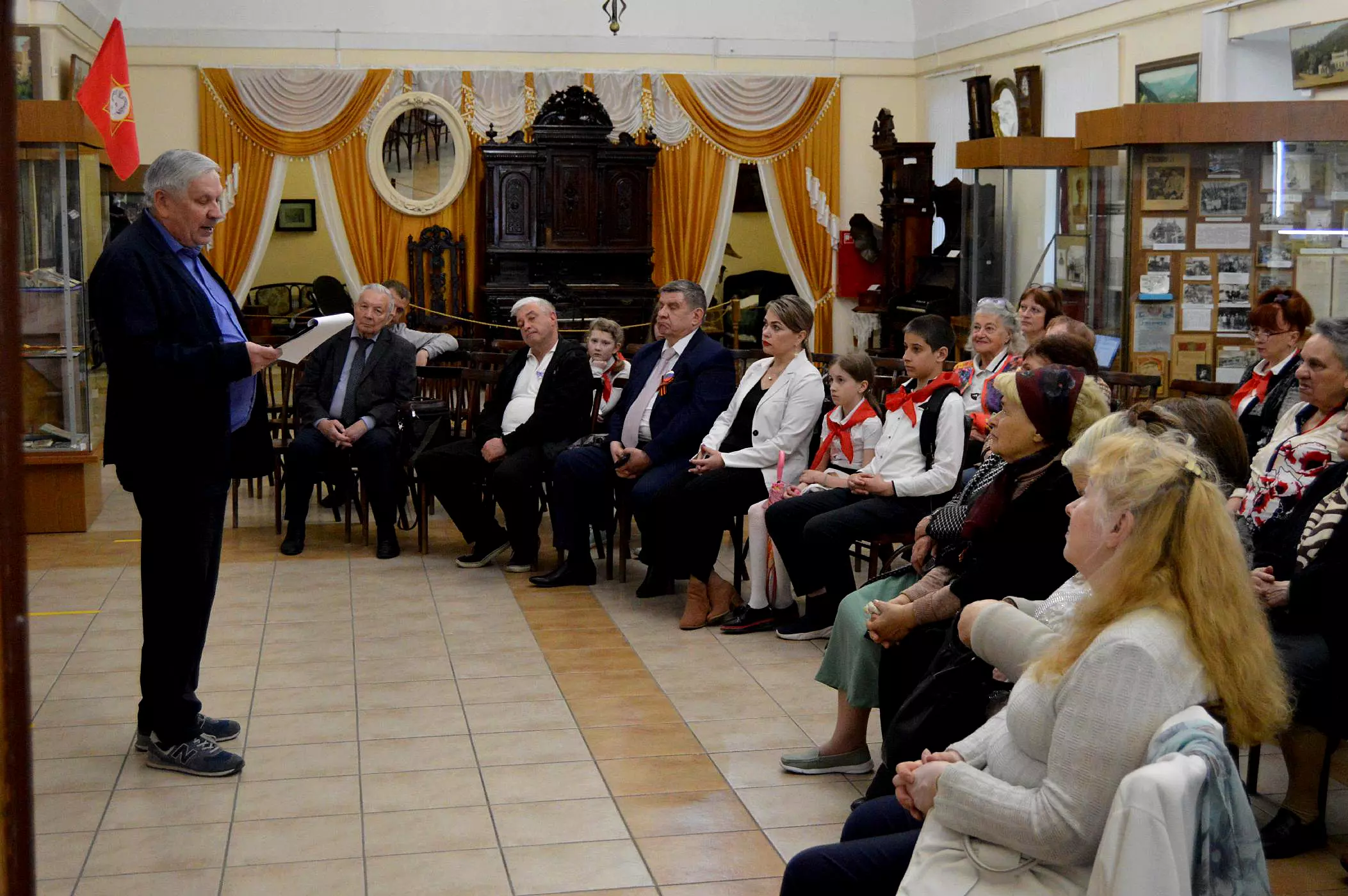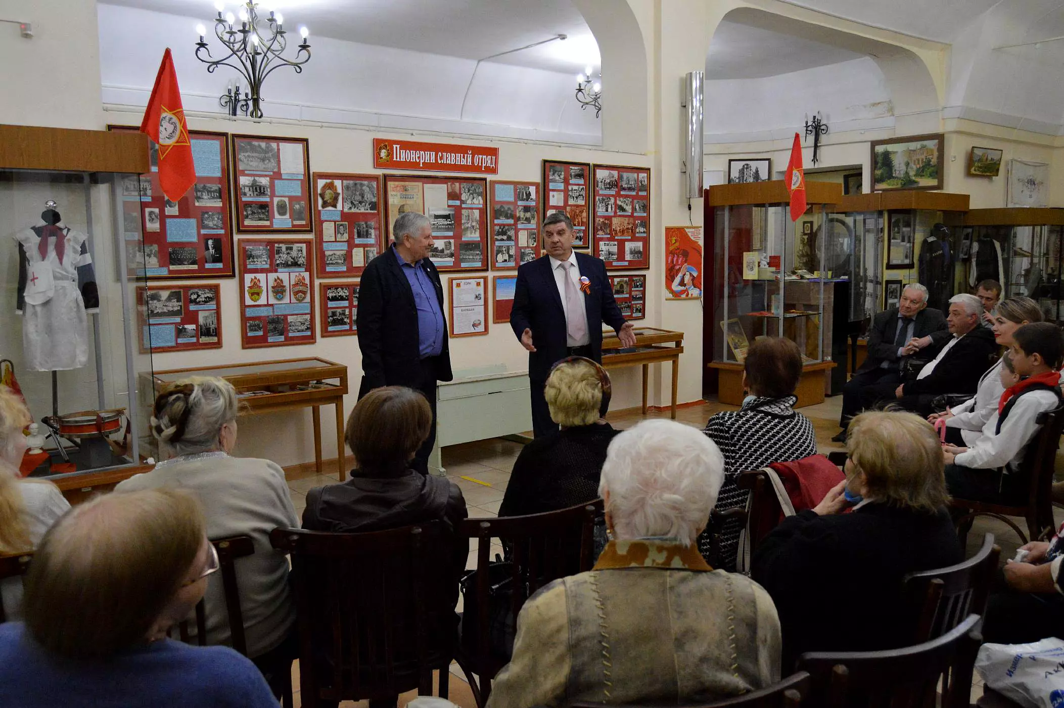 Директор музея Сергей Степанович Лузин в своём вступительном слове напомнил о страницах истории Кисловодской пионерской организации. А здесь есть, что вспомнить. Например, предшественник пионерии – скаутское движение в России зародилось именно на Ставрополье. Организовал его здесь вице-адмирал Иван Федорович Борстрем. Многие атрибуты скаутинга: костры, значки, галстуки перейдут затем в пионерское движение. Инициатором создания новой советской организации, скаутской по форме, но социалистической по содержанию стала Надежда Константиновна Крупская.