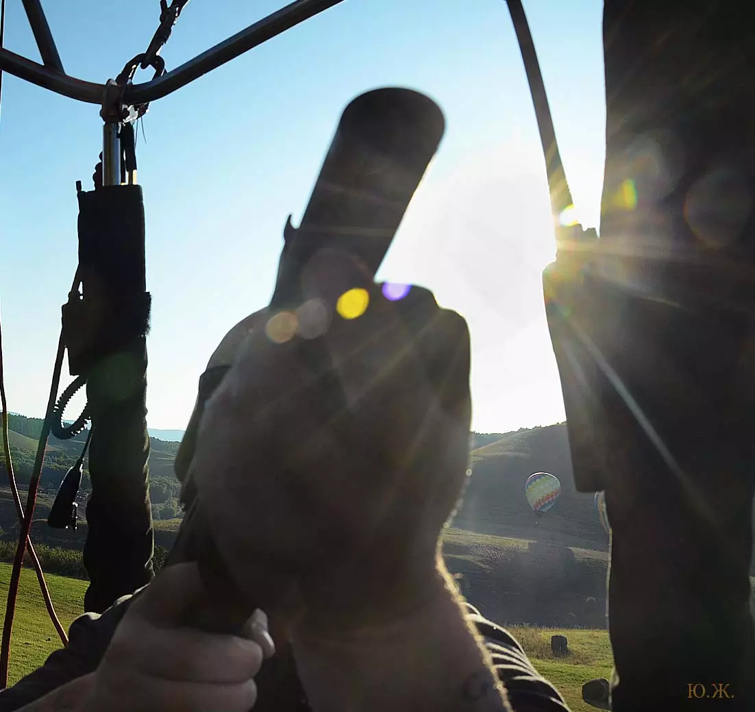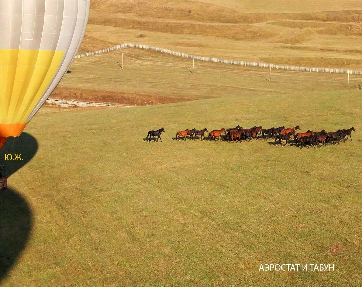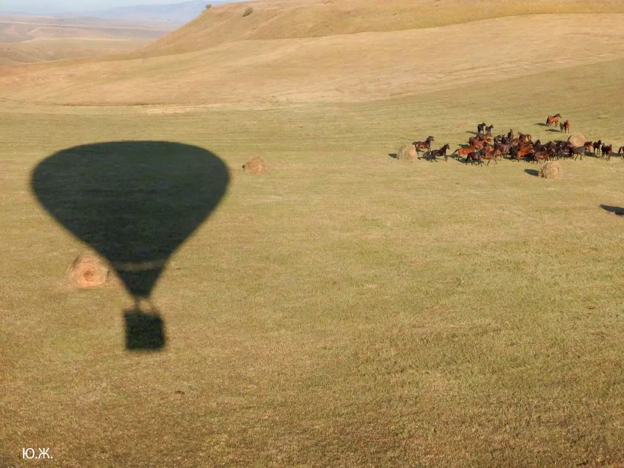 И вот красавцы аэростаты высотой в многоэтажный дом поднимаются в синеву неба. Внизу типичный для окрестностей Кисловодска рельеф – каньоны Березовки, Аликоновки, многочисленные глубокие балки, то тут, то там хвойные посадки – легкие Кисловодска, пасутся отары овец, стада коров. Табуны лошадей при звуках газовых горелок пускаются в галоп – все сверху кажется игрушечным и очень живописным. Волшебный полет продолжается