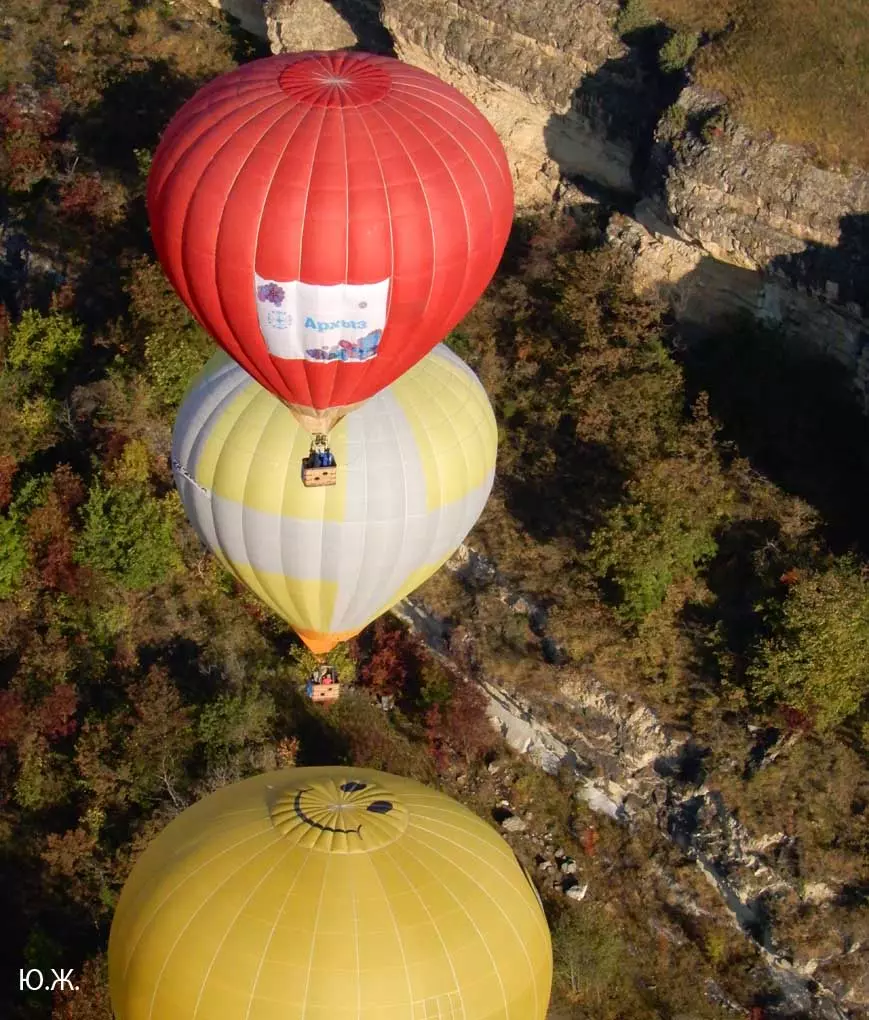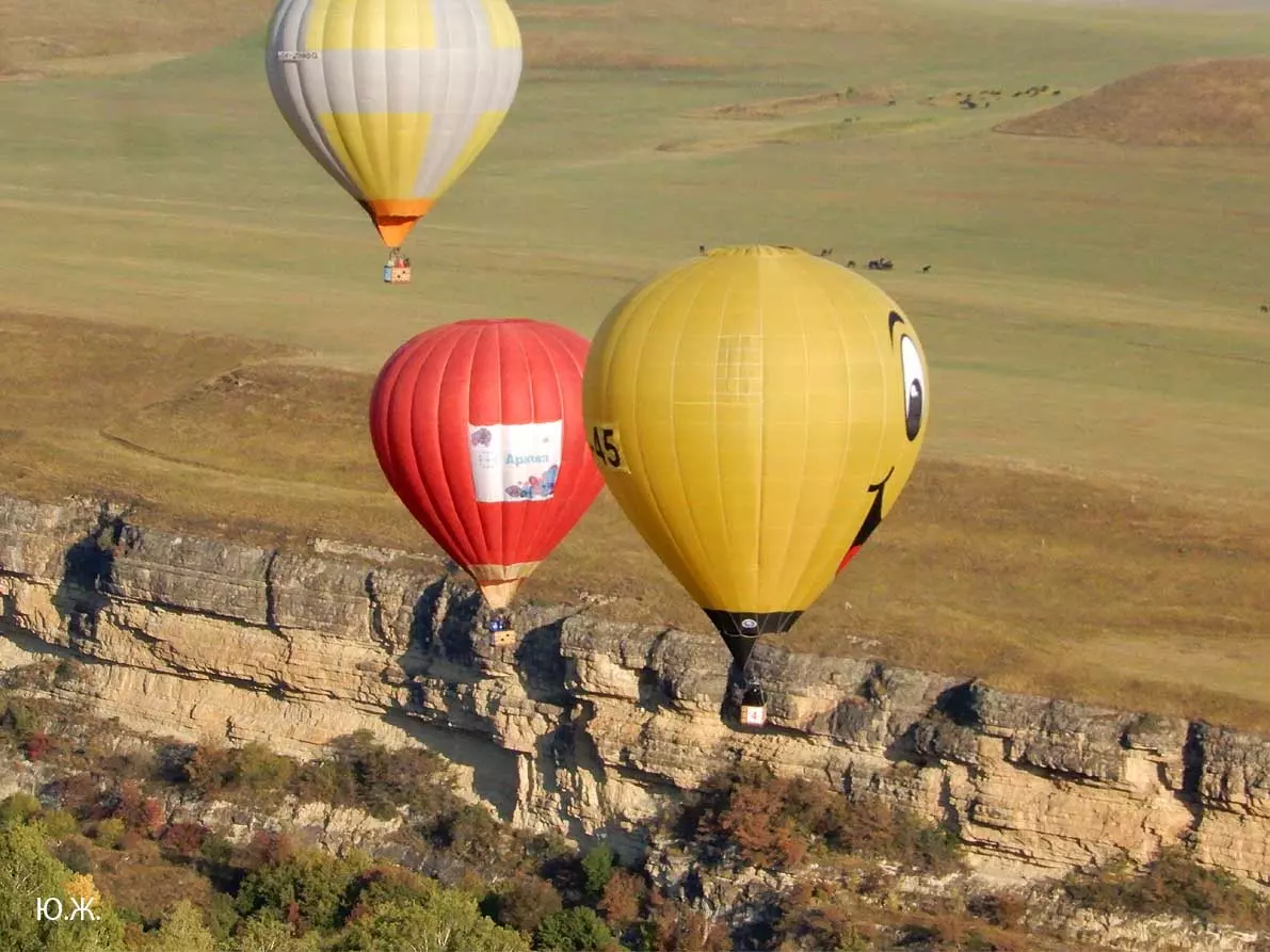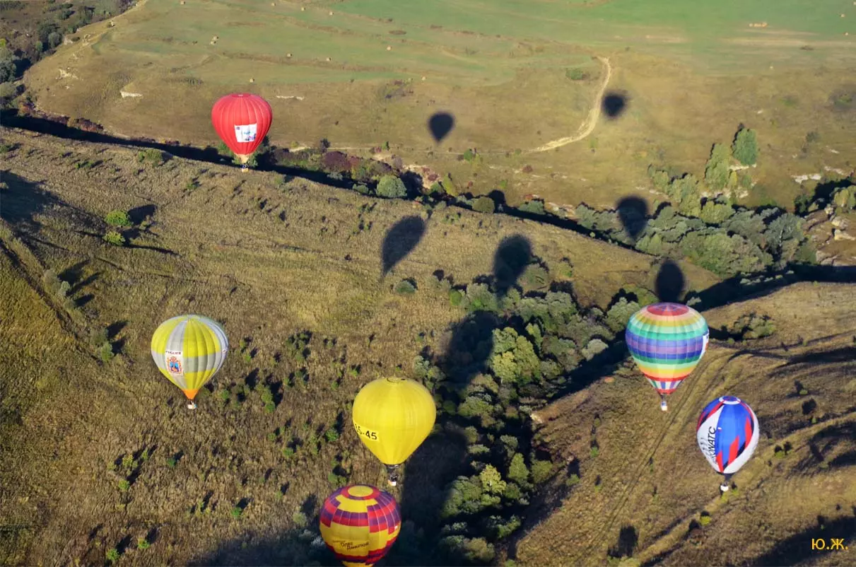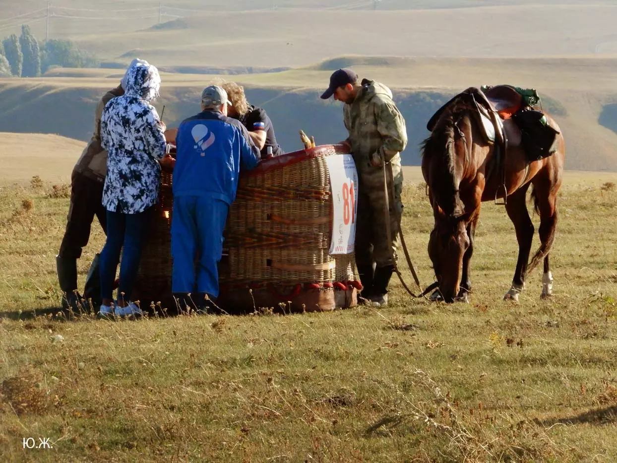 И вот красавцы аэростаты высотой в многоэтажный дом поднимаются в синеву неба. Внизу типичный для окрестностей Кисловодска рельеф – каньоны Березовки, Аликоновки, многочисленные глубокие балки, то тут, то там хвойные посадки – легкие Кисловодска, пасутся отары овец, стада коров. Табуны лошадей при звуках газовых горелок пускаются в галоп – все сверху кажется игрушечным и очень живописным. Волшебный полет продолжается