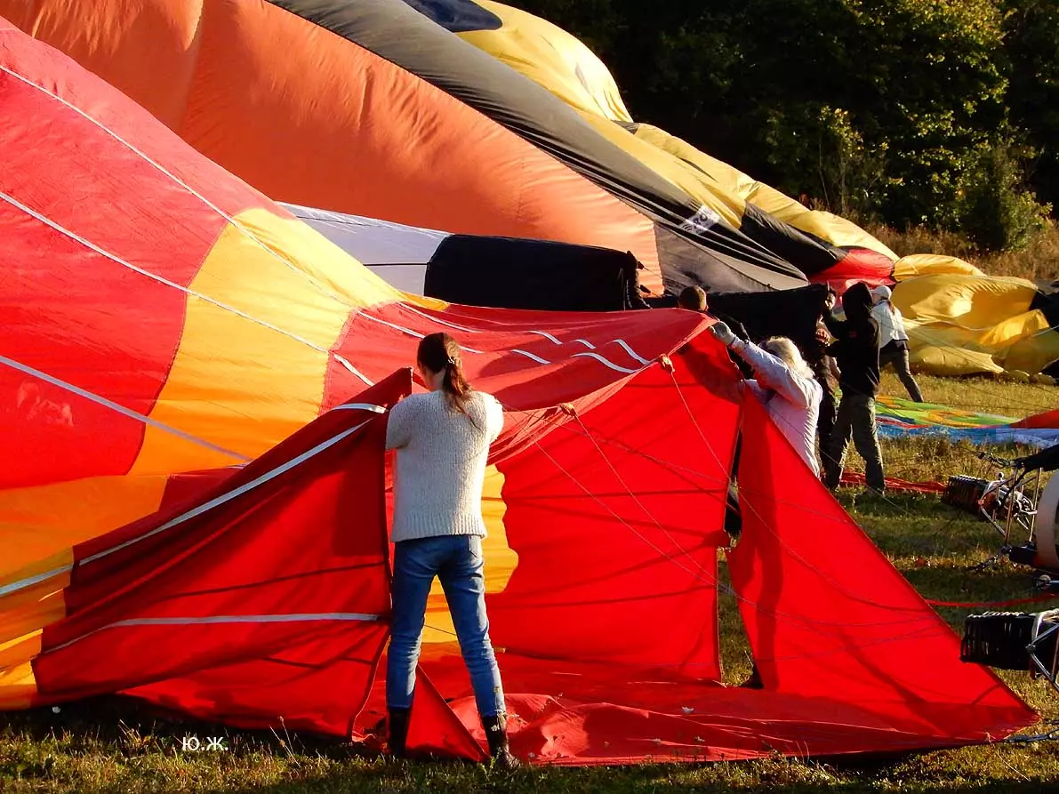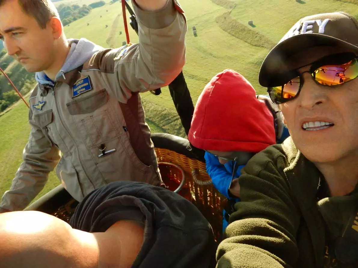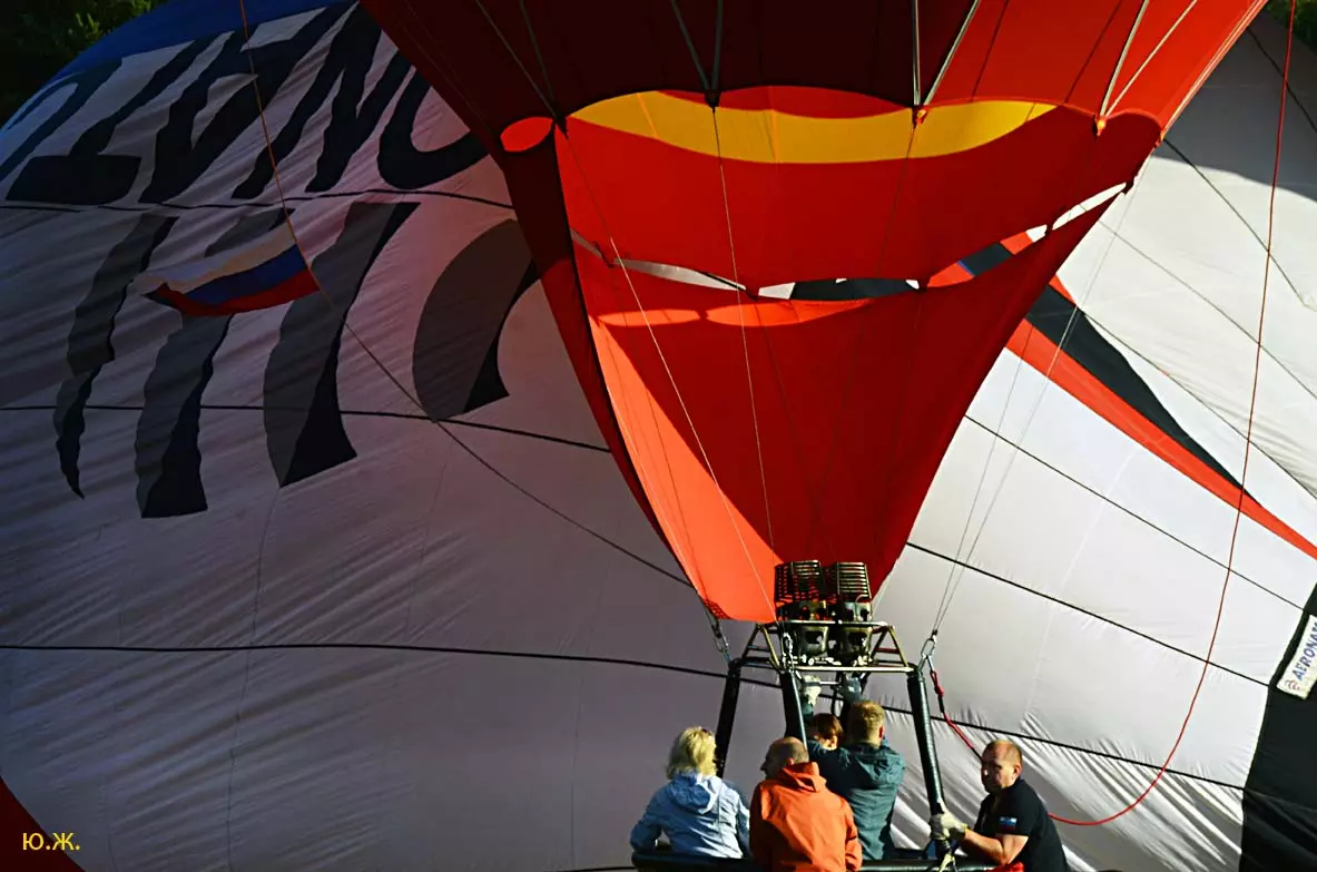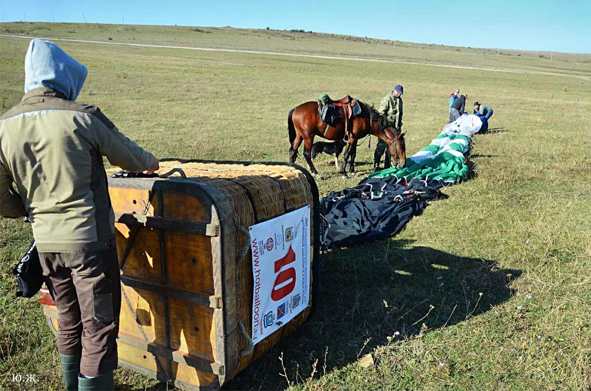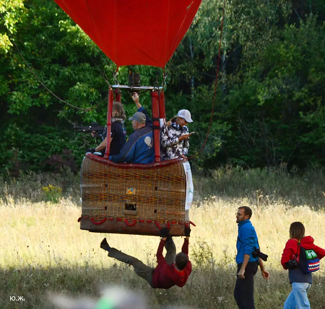 Мы в районе Рим – горы. Все, кроме пилота, приседают на корточки в корзине крепко держась за веревочные петли. Первая жесткая встреча с землей. На несколько мгновений оболочка шара, освобожденная от значительного груза – корзины с нами,не из самых легких, четырех больших металлических газовых баллоновкоторые ей (оболочке)уже не надо нести и снова взмывает вверх. Снова жесткое касание, немного смягченное плетенной как 200 лет назад, корзины и снова скачок за скачком удар за ударом,еще тянет по кочкам оболочка – парус, потерявшая усилиями пилота почти весь воздух. И вот распластанная лежит на земле. Мы из лежащей на боку корзины выползаем на четвереньках. Но какой ДРАЙВ! Особенно когда это на восьмом десятке.