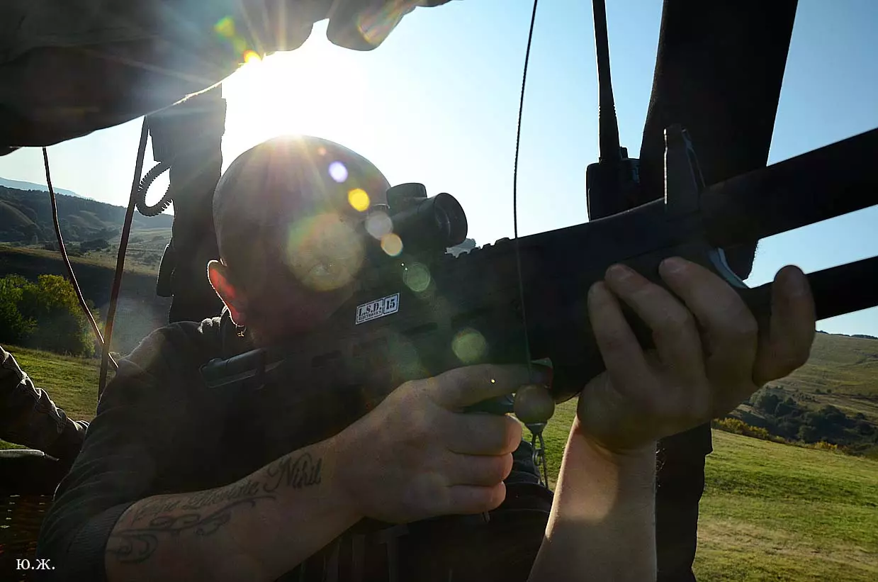 Помимо спортивных полетов, где пилоты выполняют привычные воздушные упражнения, уже несколько лет они еще стреляют из лазерных ружей по мишеням и результаты стрельбы стекаются через спутник на компьютер главного судьи соревнований. Это новинка. Ставропольская федерация воздухоплавания здесь является пионером и не только в стране а и в мире. Это идея ее президента В. Ненашева и вместе с коллегами реализованная. Это мирная стрельба.