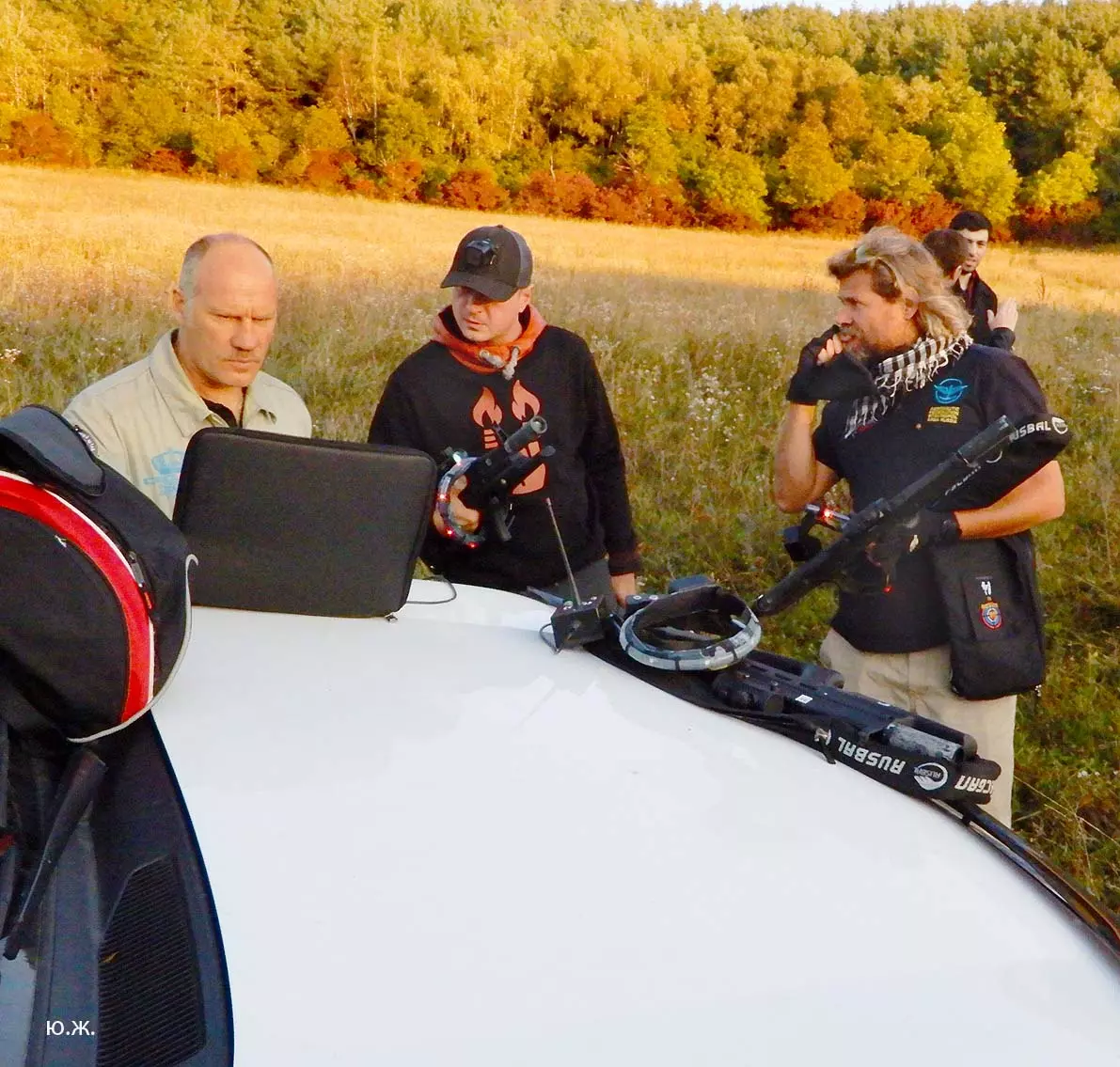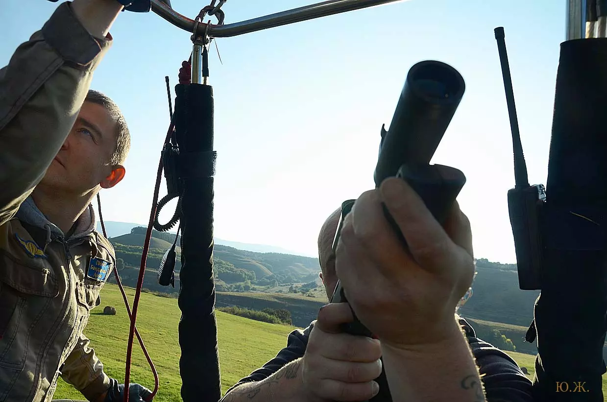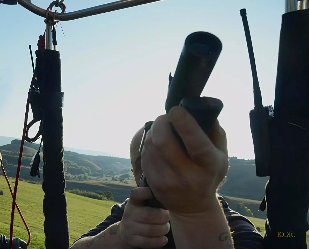 Но начинаются порывы ветра, быстро усиливающиеся. Свистяще шипящие горелки аэростата, похожие звуки лазерного ружья, ставшие уже привычными, не мешают замечать как становятся серьезнее лица. Все четверо понимают к чему идет дело. Мы уже около часа в полете. Видно, что пилот выбирает место для приземления. Под корзиной овраги и линии электропередач, а, главное, по приборам видно как быстро растет скорость воздушного судна изза силы ветра. Будет жесткая посадка. Короткие указания пилота убрать аппаратуру, другие предметы, которые смогут повредиться и причинить друг другу ушибы. Да и место для посадки пилоту нужно выбрать так, чтобы наш автомобиль с прицепом для шара смог к нему проехать.