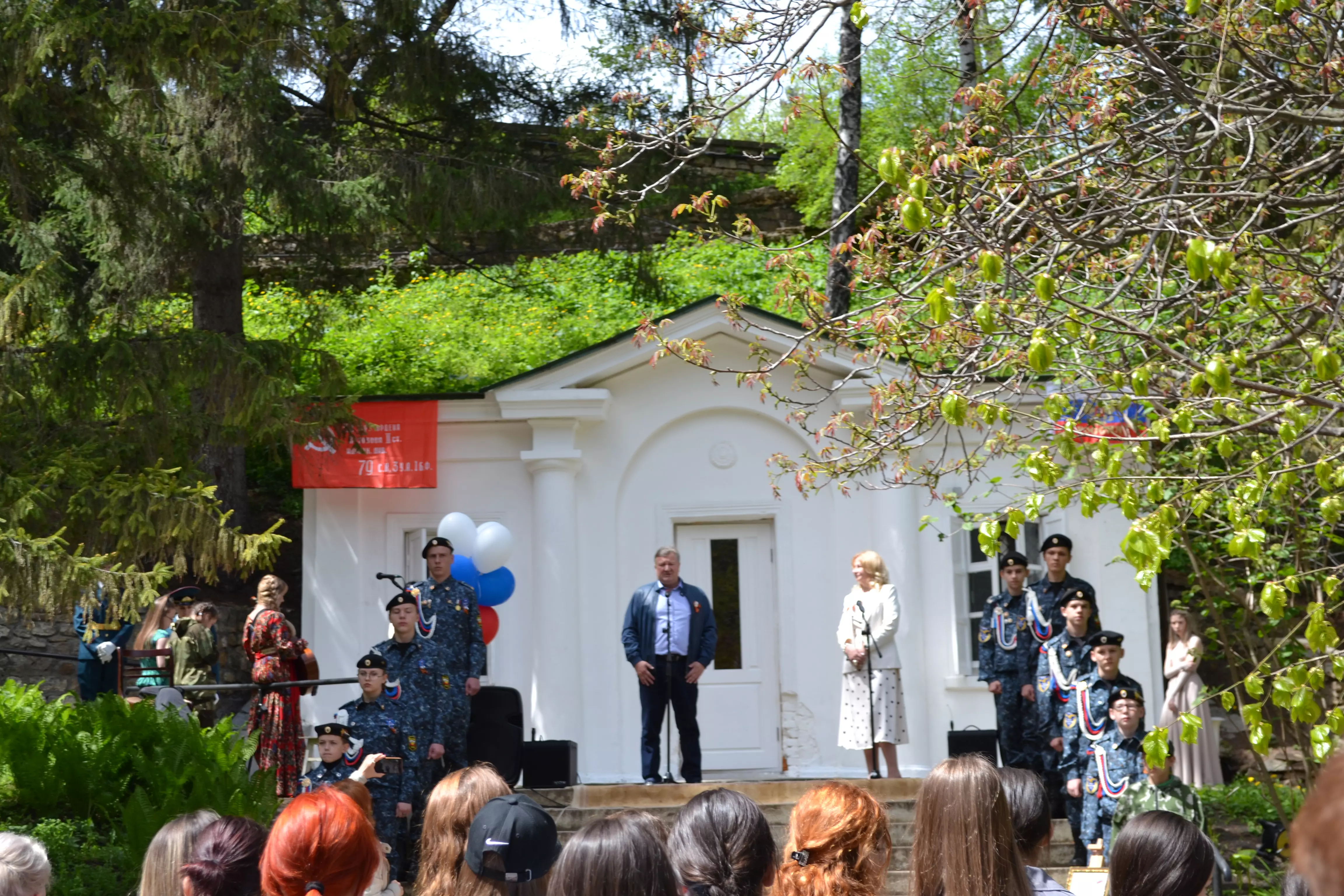 «Белая вилла» Кисловодска сегодня в цвету, как это бывает накануне майских праздников. Ярошенковский сад стал местом встречи гостей усадьбы. Её сотрудники вместе с гостями, ветеранами войны и труда, кадетами ВПК «Беркут», активистами Кисловодска приняли участие в закладке послания потомкам, которое те прочтут в год празднования столетия Победы. К участникам памятного события обратилась директор музея-усадьбы Наталья Шумайлова и депутат Ставропольской Думы Николай Мурашко.
