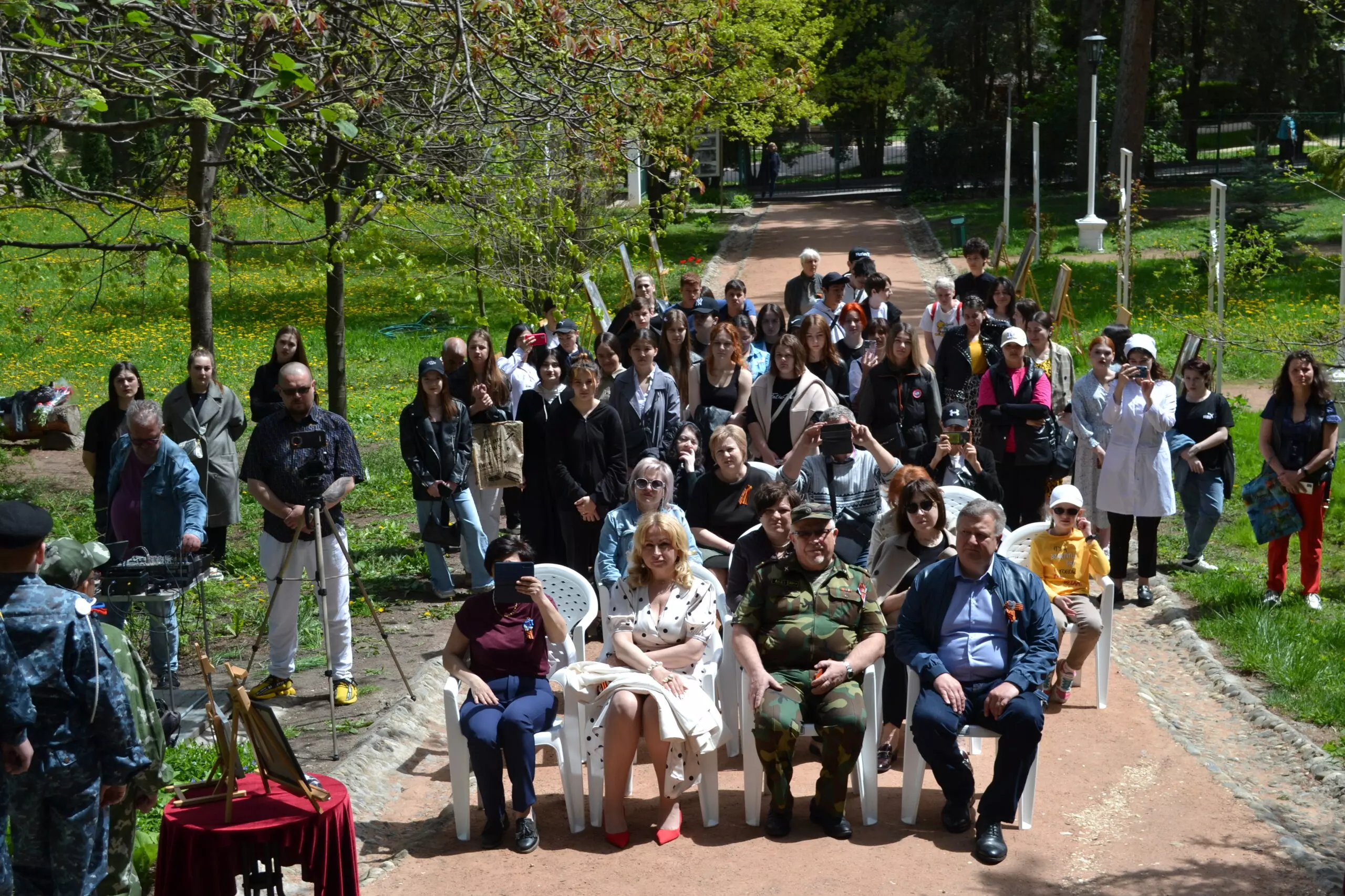 «Белая вилла» Кисловодска сегодня в цвету, как это бывает накануне майских праздников. Ярошенковский сад стал местом встречи гостей усадьбы. Её сотрудники вместе с гостями, ветеранами войны и труда, кадетами ВПК «Беркут», активистами Кисловодска приняли участие в закладке послания потомкам, которое те прочтут в год празднования столетия Победы. К участникам памятного события обратилась директор музея-усадьбы Наталья Шумайлова и депутат Ставропольской Думы Николай Мурашко.