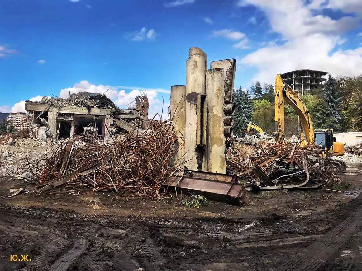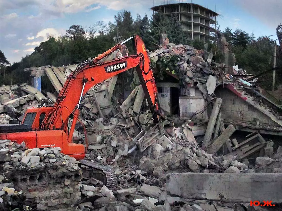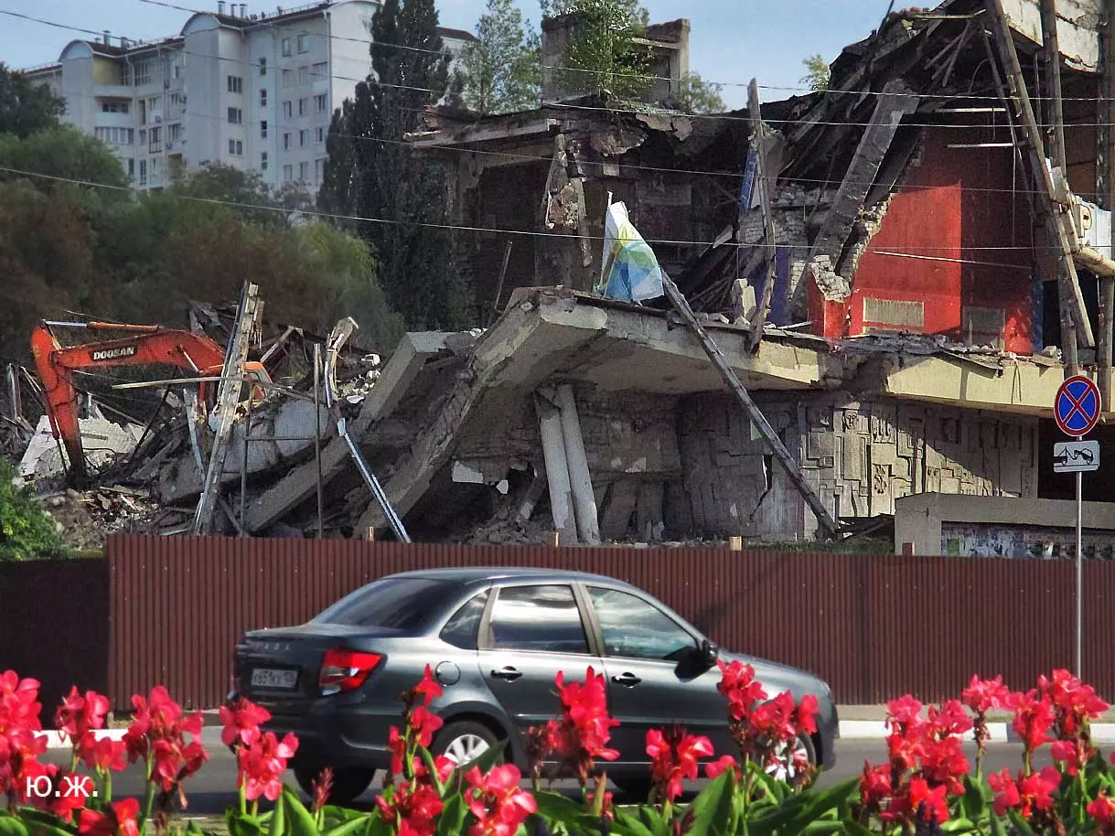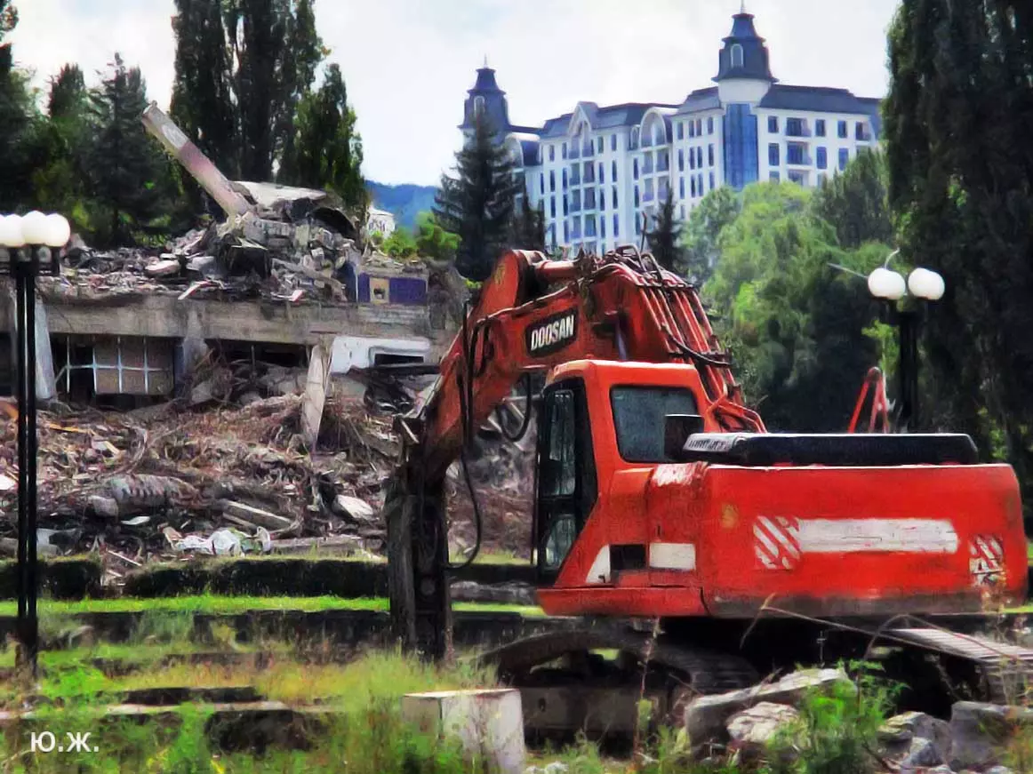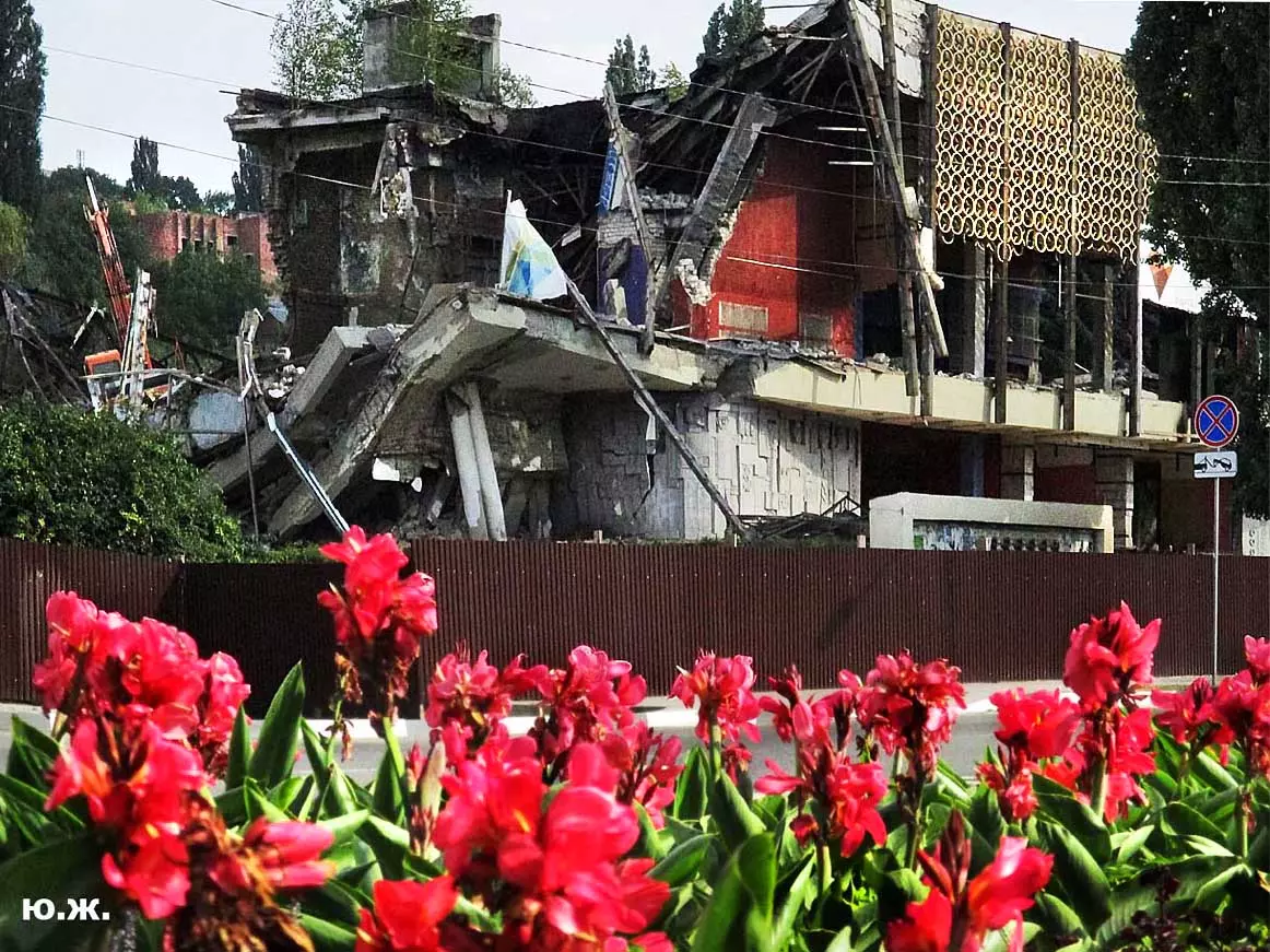 Эта небольшая подборка отобранных из массы фотографий, которые я снимал несколько месяцев, обнаружив здесь попутно еще очень много живописных мест и вдоль речки Березовки, и в ее окрестностях, будет фотохроникой — фильмом о том, как выглядел снос кинотеатра, как уходило от нас это прекрасное здание, и будем надеяться, что многофункциональный культурный центр «Россия», который появится в этом красивом месте через три года, будет достоин Кисловодска.