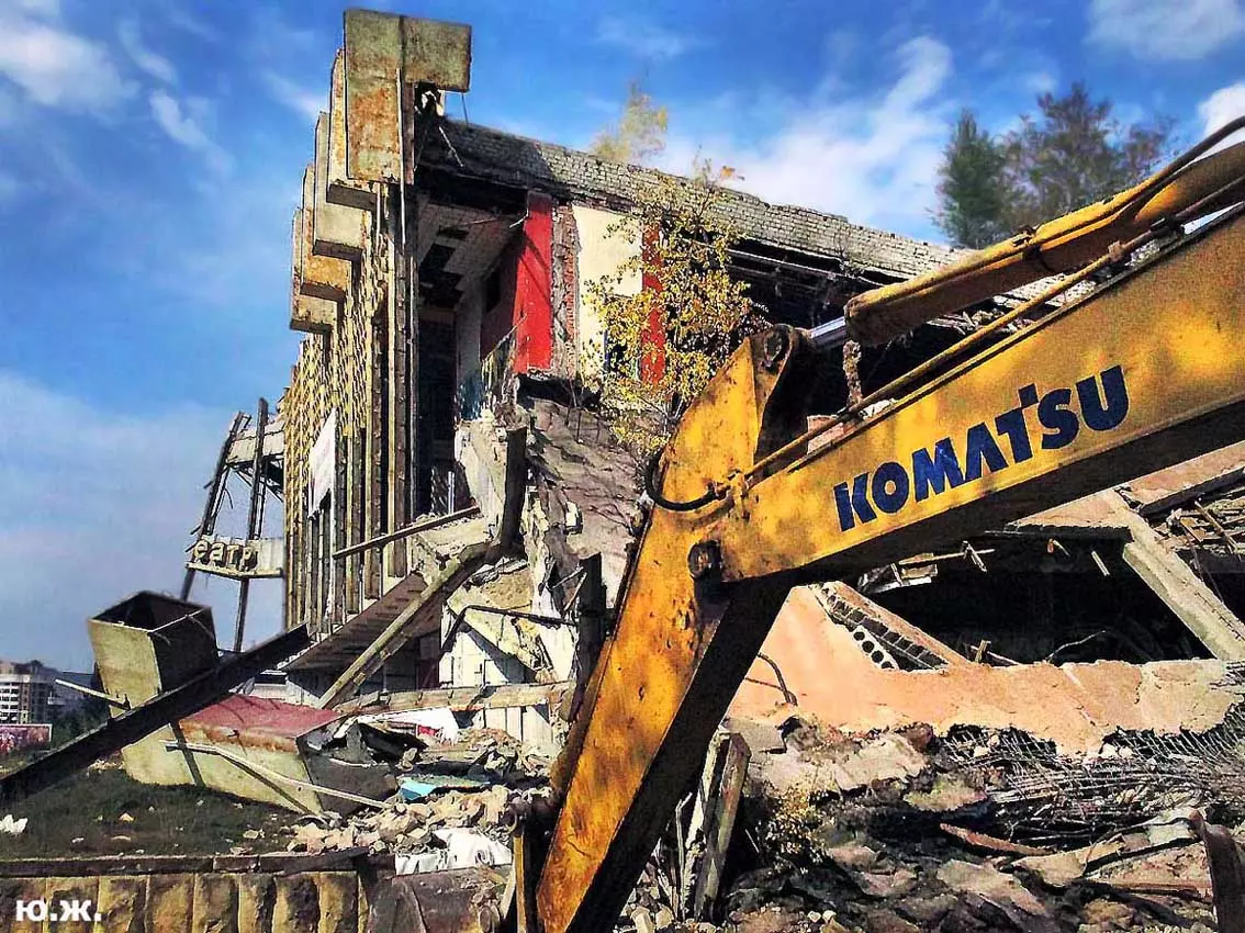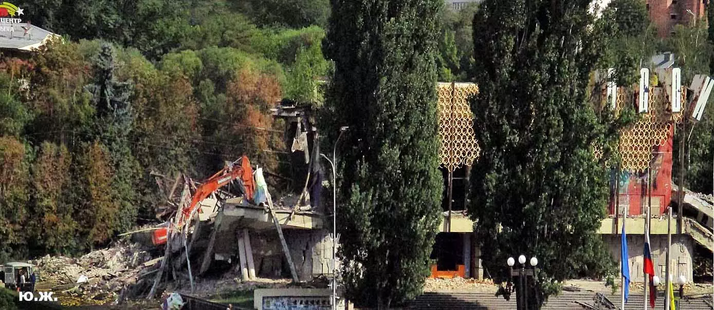Этим летом начался снос известного в стране кинотеатра, построенного на месте бывшего автовокзала в 1970 году. Здание быстро стало изюминкой архитектуры еще и потому, что было облицовано кольцами из пластика охристого цвета, это сделало его словно одетым в кружевной наряд – стало его фирменным знаком. Через 10 лет здание кинотеатра «Россия» было удостоено премии Госстроя СССР. Примечательно, что одновременно с ним строился и Олимпийский бассейн, и оба здания были закончены в 1970 году.