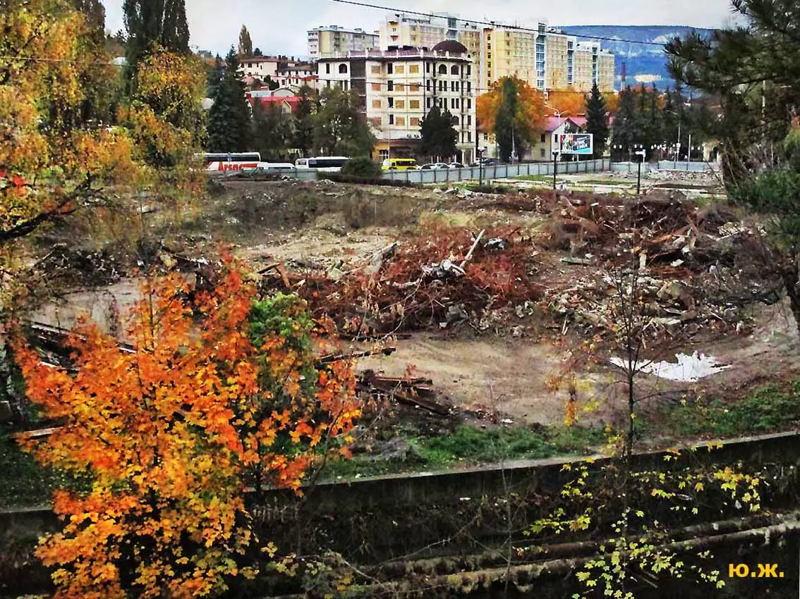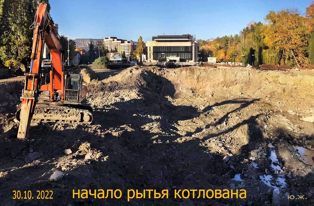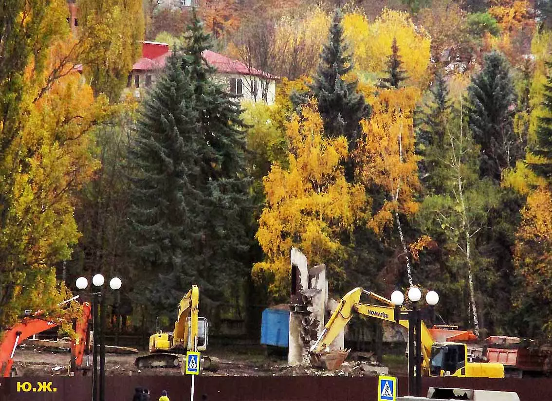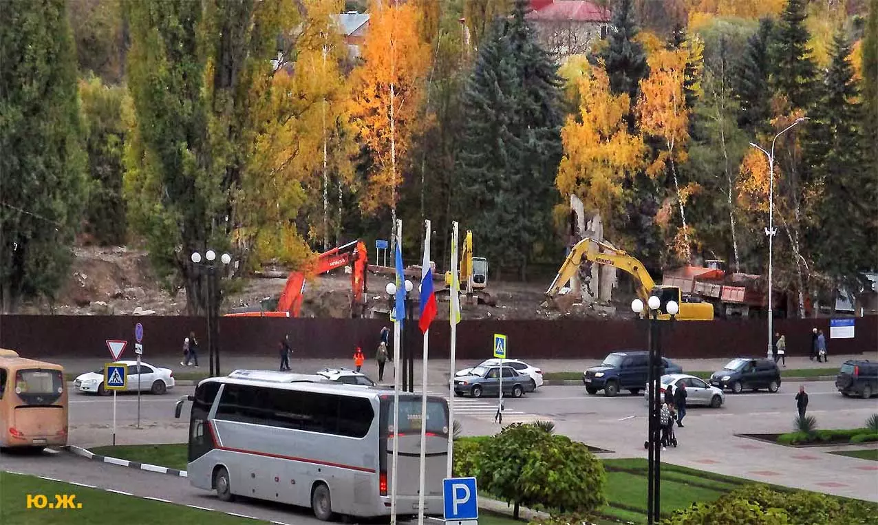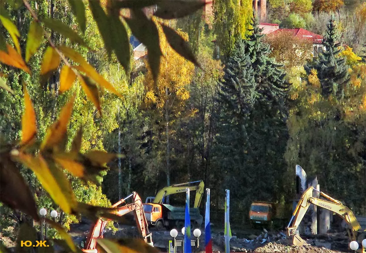 Ну, вот, здание кинотеатра «Россия» сравнялось с горизонтом, и как раз в дни золотой осени, окруженное по территории деревьями в ярких цветах. Вскоре приступили к рытью котлована.
