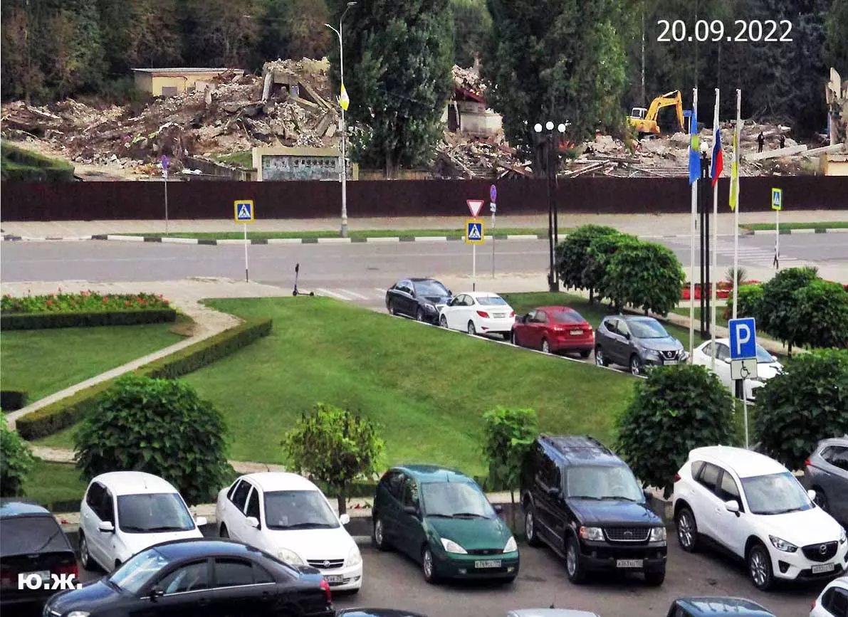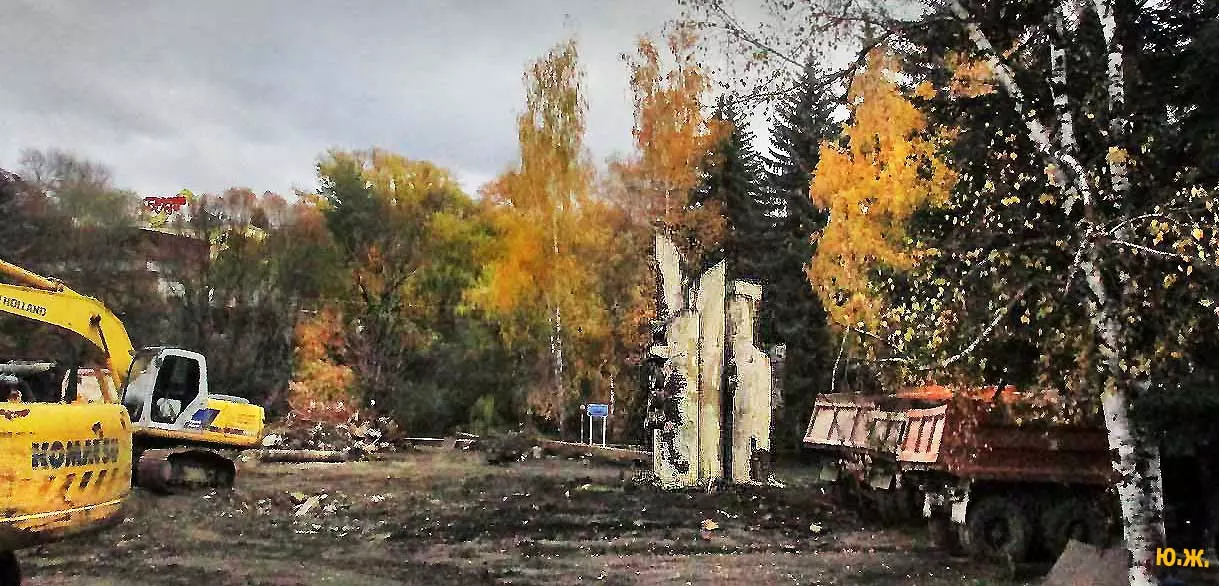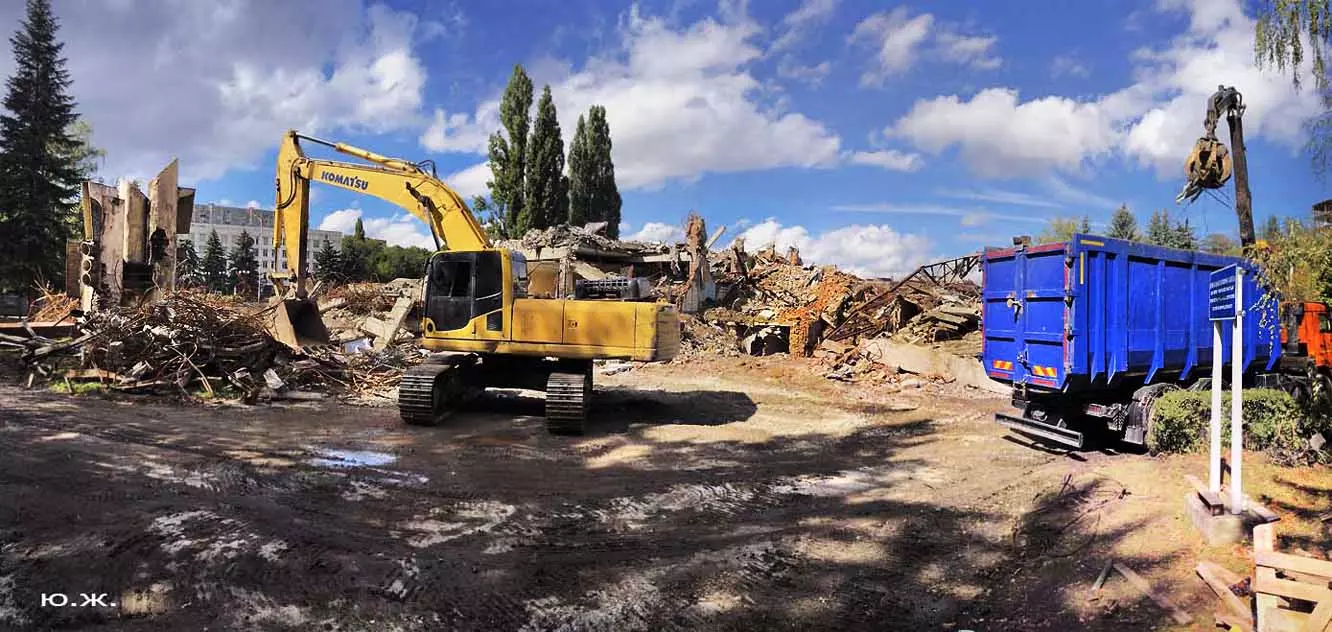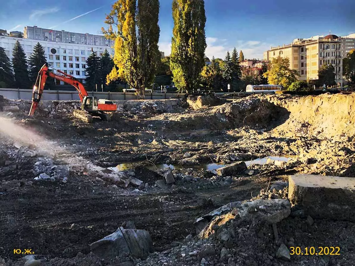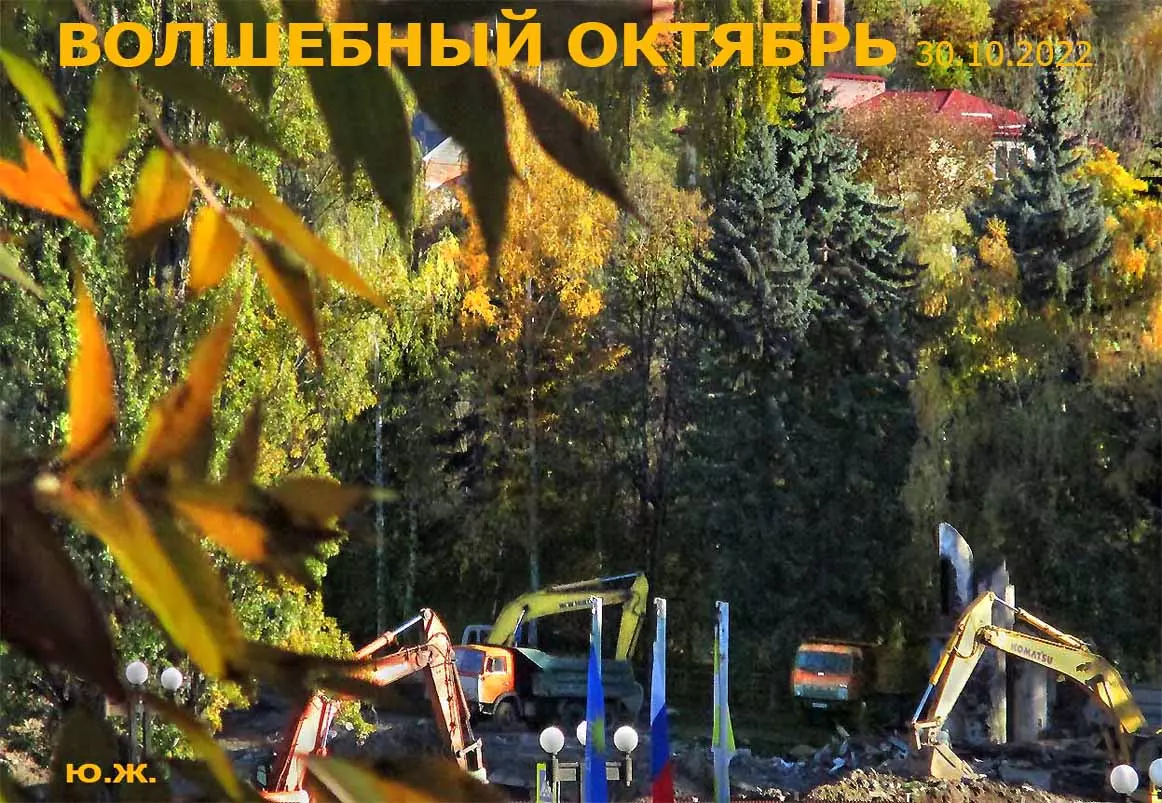 Ну, вот, здание кинотеатра «Россия» сравнялось с горизонтом, и как раз в дни золотой осени, окруженное по территории деревьями в ярких цветах. Вскоре приступили к рытью котлована.