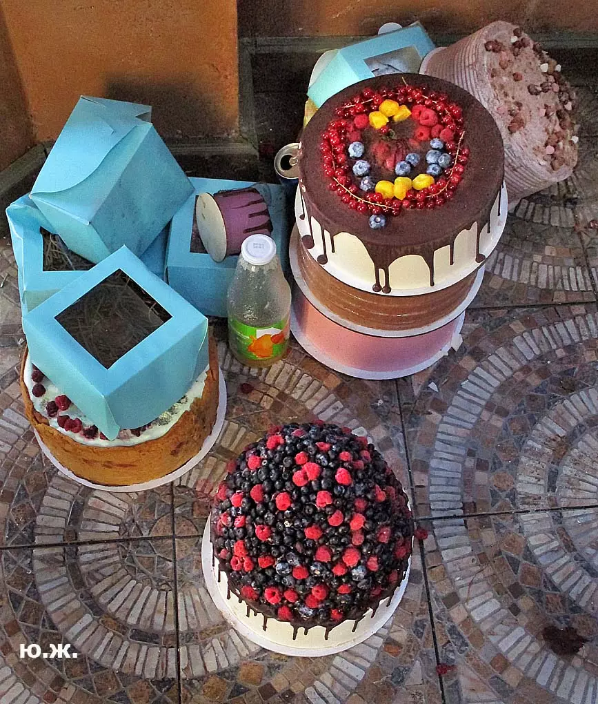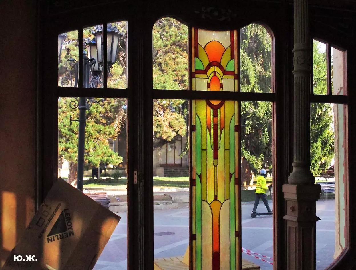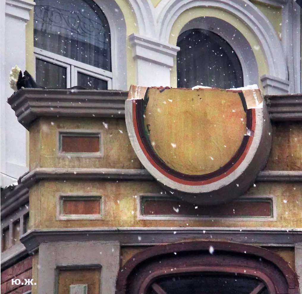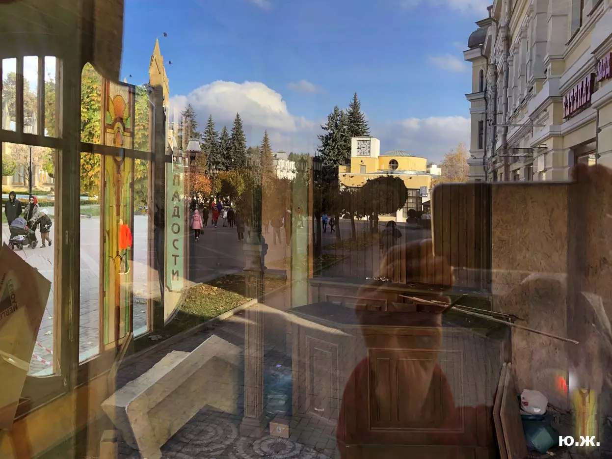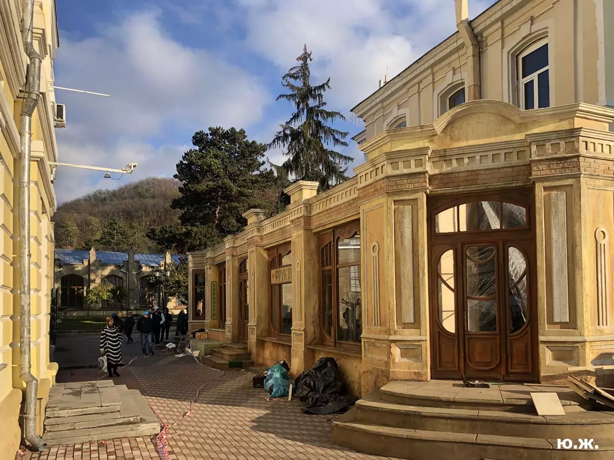 И все о чем я здесь пишу-предисловие к тому, что уже несколько дней я бываю в этом домике (его адрес на одном из фото) и уже сделал несколько фотосессий. Вот эти снимки я хочу вам и показать. Здесь и интерьер и его панорама и виды, которые отсюда открываются через красивые витражи на Курортный бульвар, на Нарзанную галерею. Рассказывать я больше ничего не буду, потому что сам абсолютно ничего о фильме не знаю, кроме того, что этот домик сделан из картона, пенопласта, чуть стекла и немного дерева и еще, что сейчас отсюда все тащат — в первый день, когда шел снег, были даже грузовики, (см фото) через пару дней исчезли красивые бутафорские, отлично сделанные огромные фруктовые торты (см фото). Вот и все, что я знаю о фильме «ЧЕБУРАШКА».