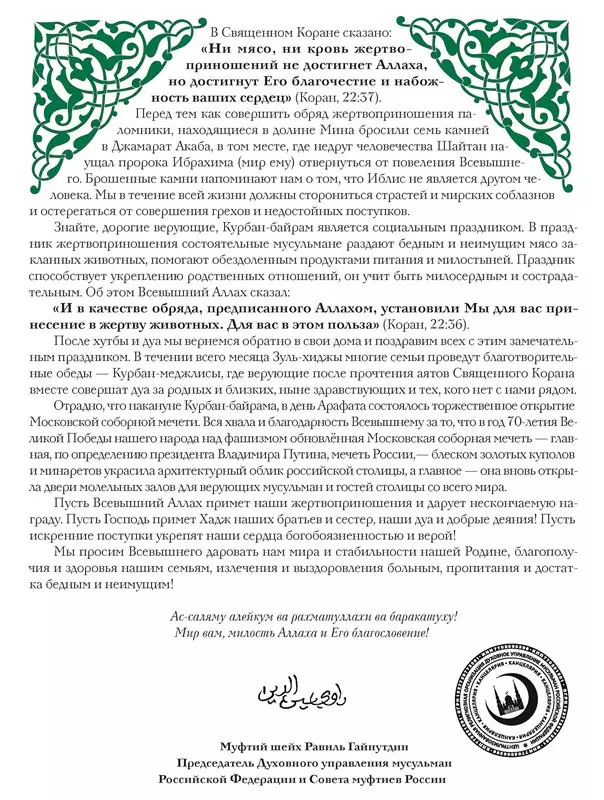 ПОЗДРАВЛЯЕМ МУСУЛЬМАН С ВЕЛИКИМ ПРАЗДНИКОМ!