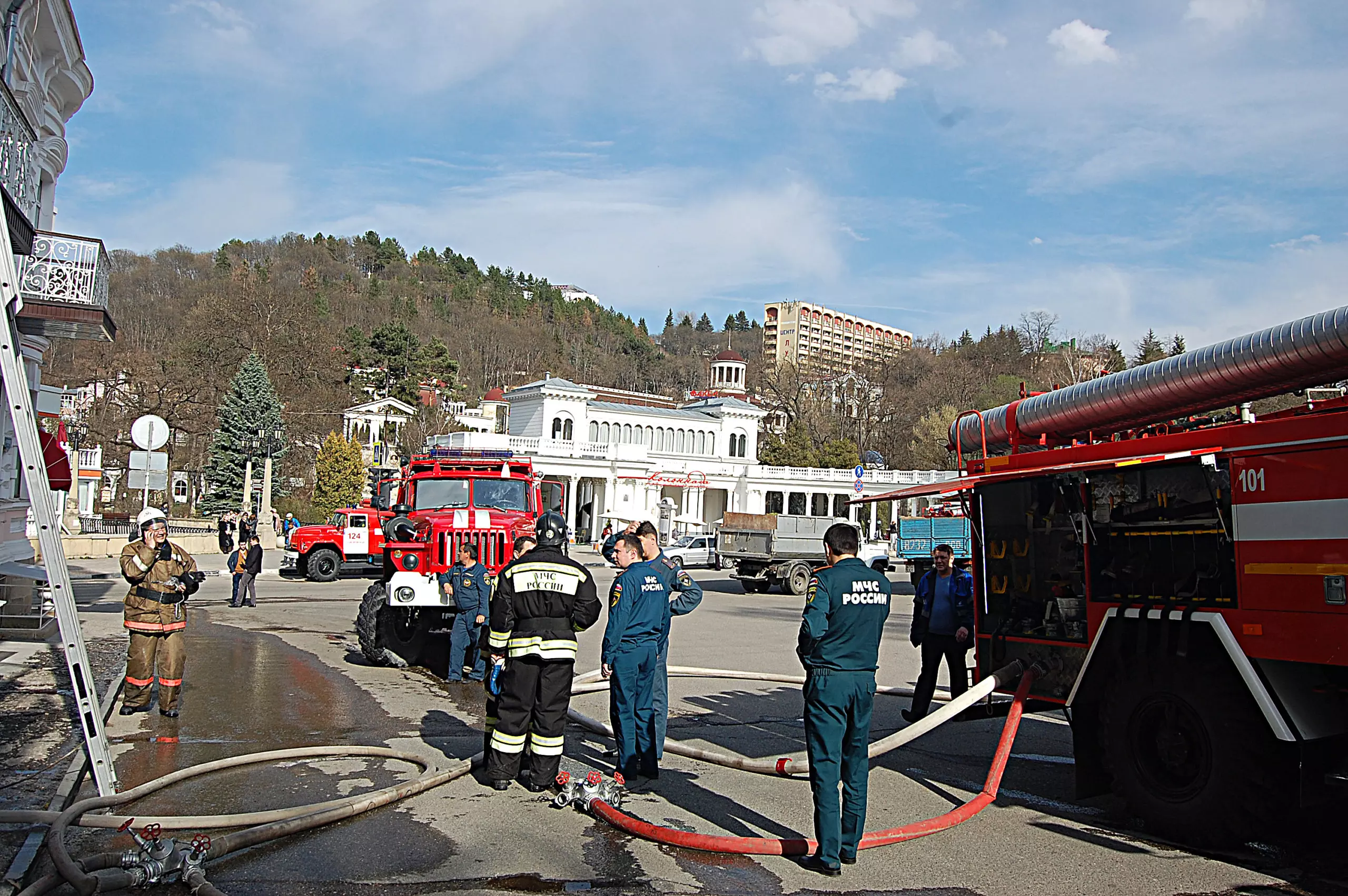 По словам дознавателя отдела надзорной деятельности и профилактической работы подполковник внутренней службы МЧС Ларисы Садыковой, пожар охватил площадь 150 квадратных метров, были эвакуированы 30 человек. Погибших и пострадавших нет. На четвертом этаже располагались две жилые квартиры, которые частично уничтожены огнем: перекрытия, оконные блоки, межэтажные перекрытия, кровля. Бытовые вещи от огня не пострадали, залиты при тушении. На третьем этаже библиотека, которая тоже имеет следы затопления. Первый этаж занимал отдел дознания ОМВД по Кисловодску. Но он не пострадал. Причины пожара и ущерб устанавливаются, завтра будет работать пожарно-техническая лаборатория города Ставрополя.