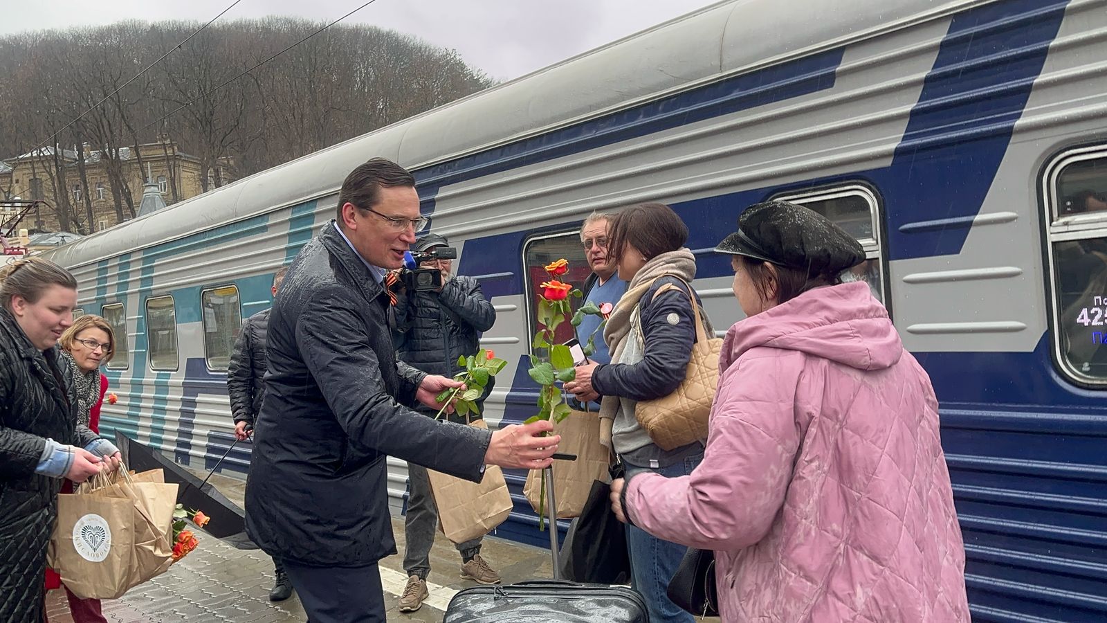 «Город-курорт Кисловодск всегда славился своим гостеприимством. Поэтому вот уже третий год подряд продолжаем нашу добрую традицию — встречаем в День воссоединения России с Крымом очень дорогих гостей с полуострова, прибывших на поезде из Симферополя.