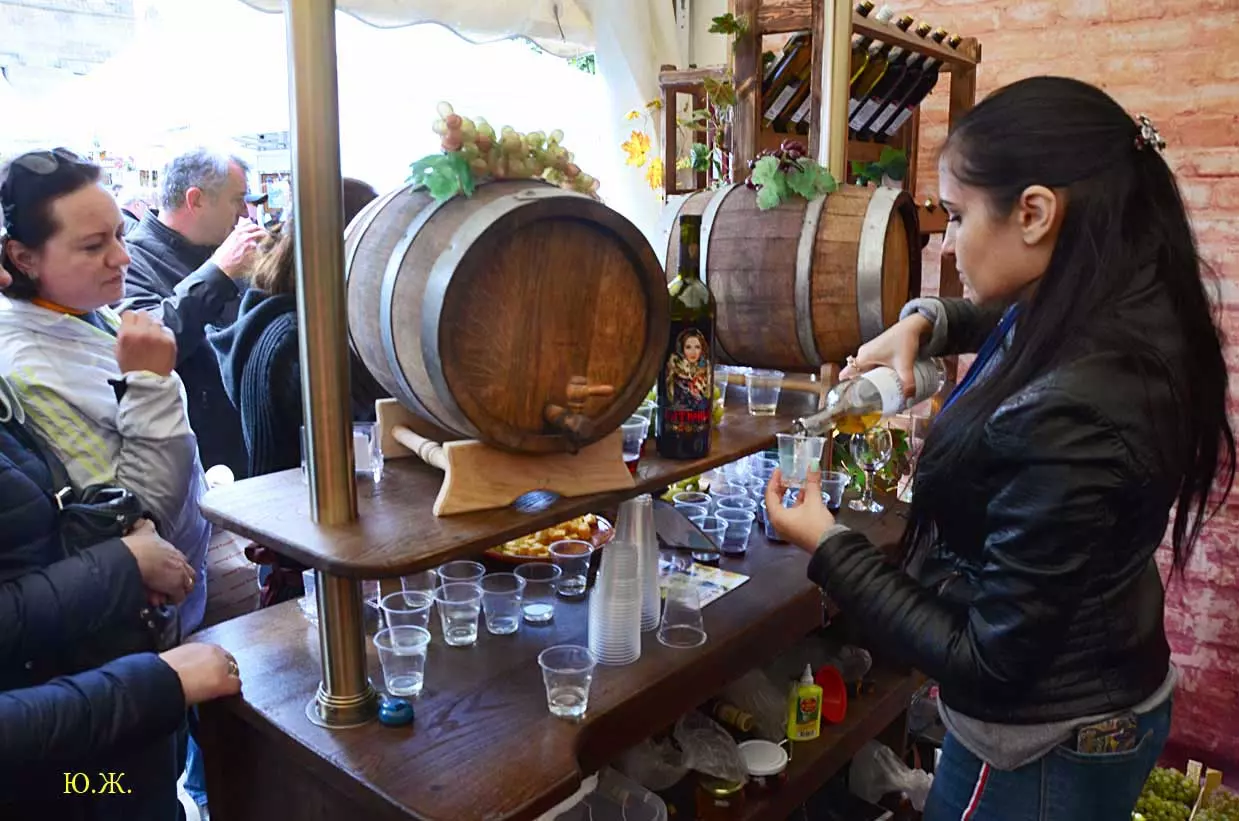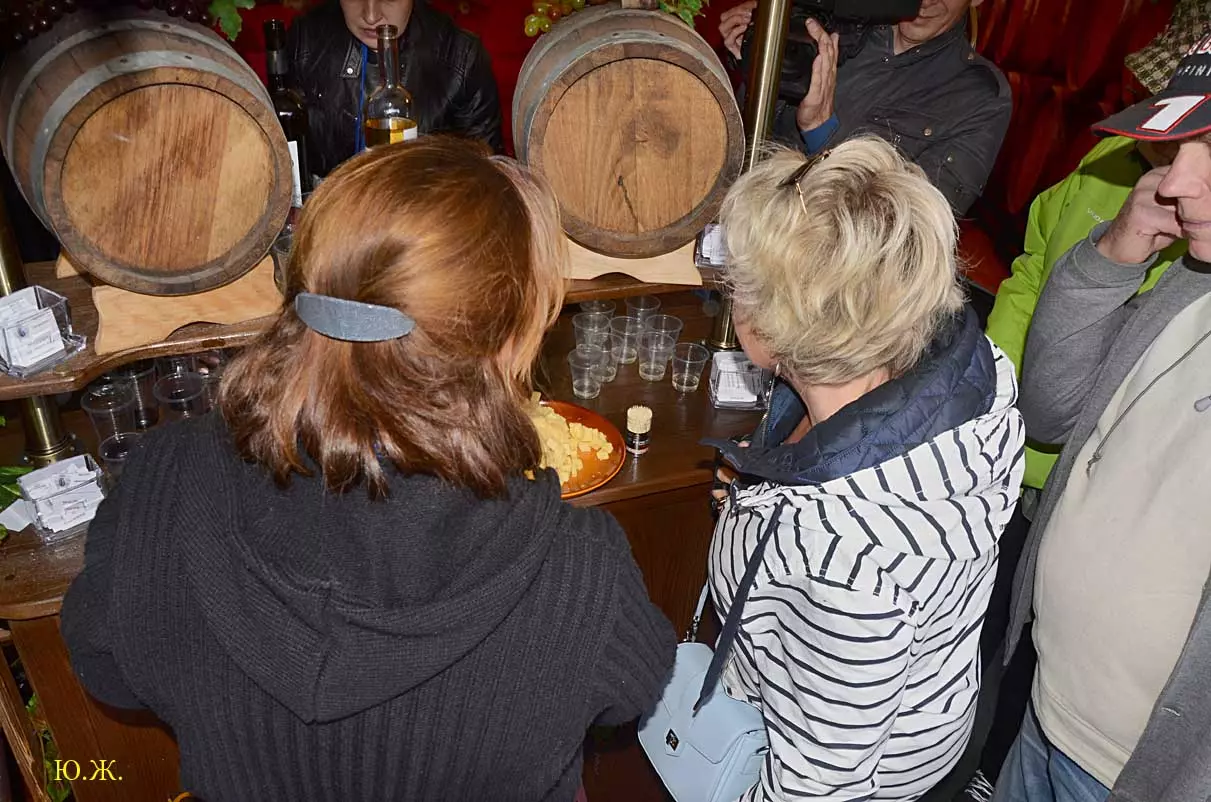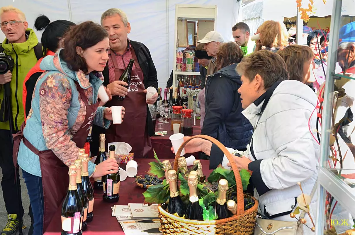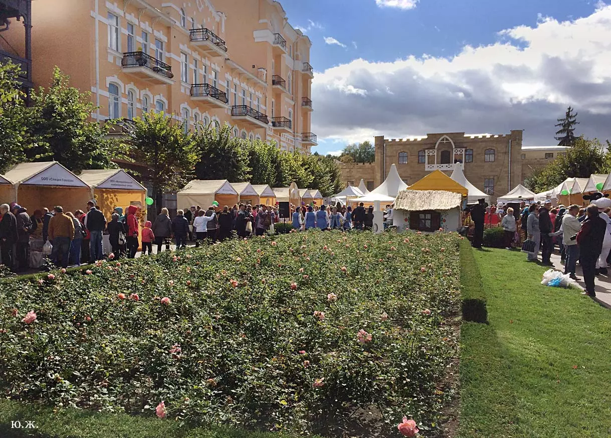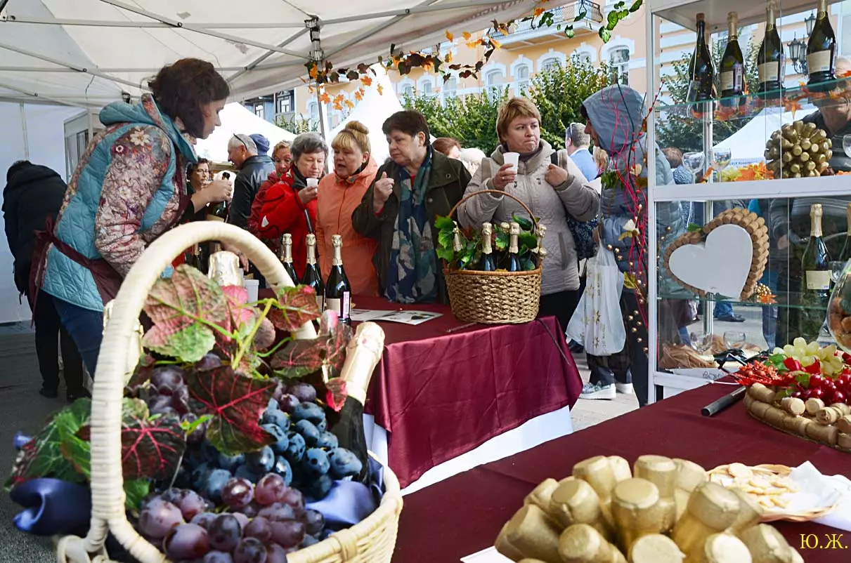 дегустационных павильонах у Нарзанной галереи на Пятачке, украшенных отборными гроздьями винограда и щедро заполненными батареями бутылок, а некоторые бочонками с кранами на прилавках, протекает приятное действо. Многочисленным гостям и хозяевам города предлагается продегустировать вина и коньяки солнечного Ставрополья.