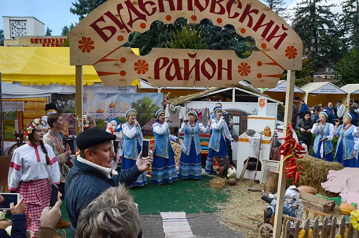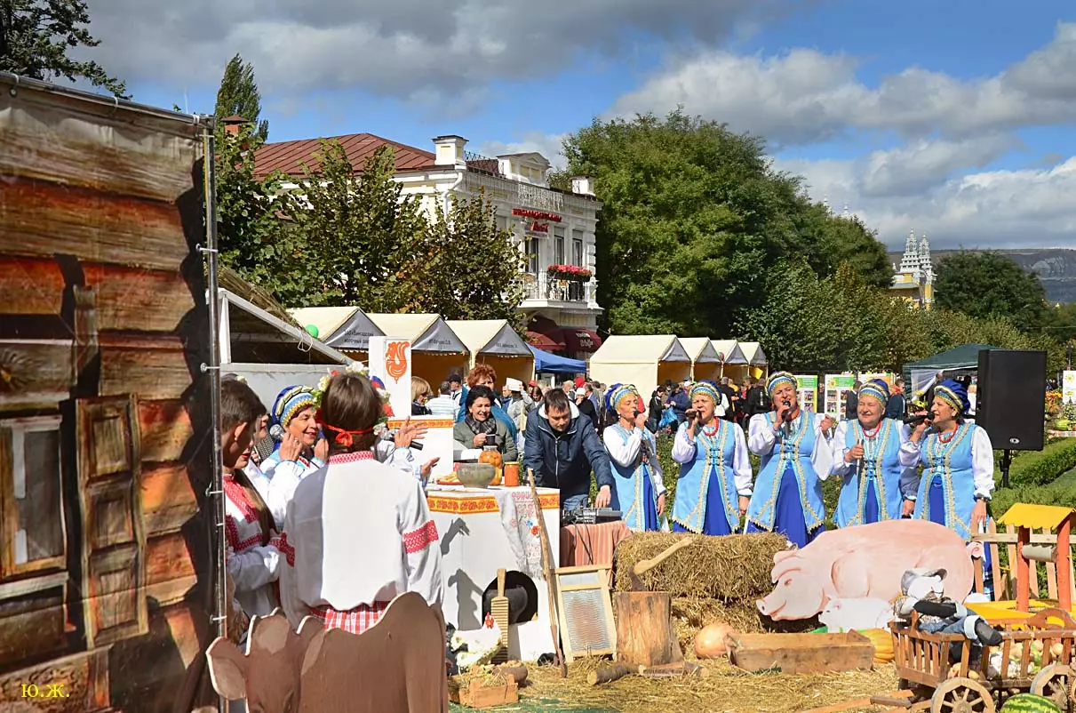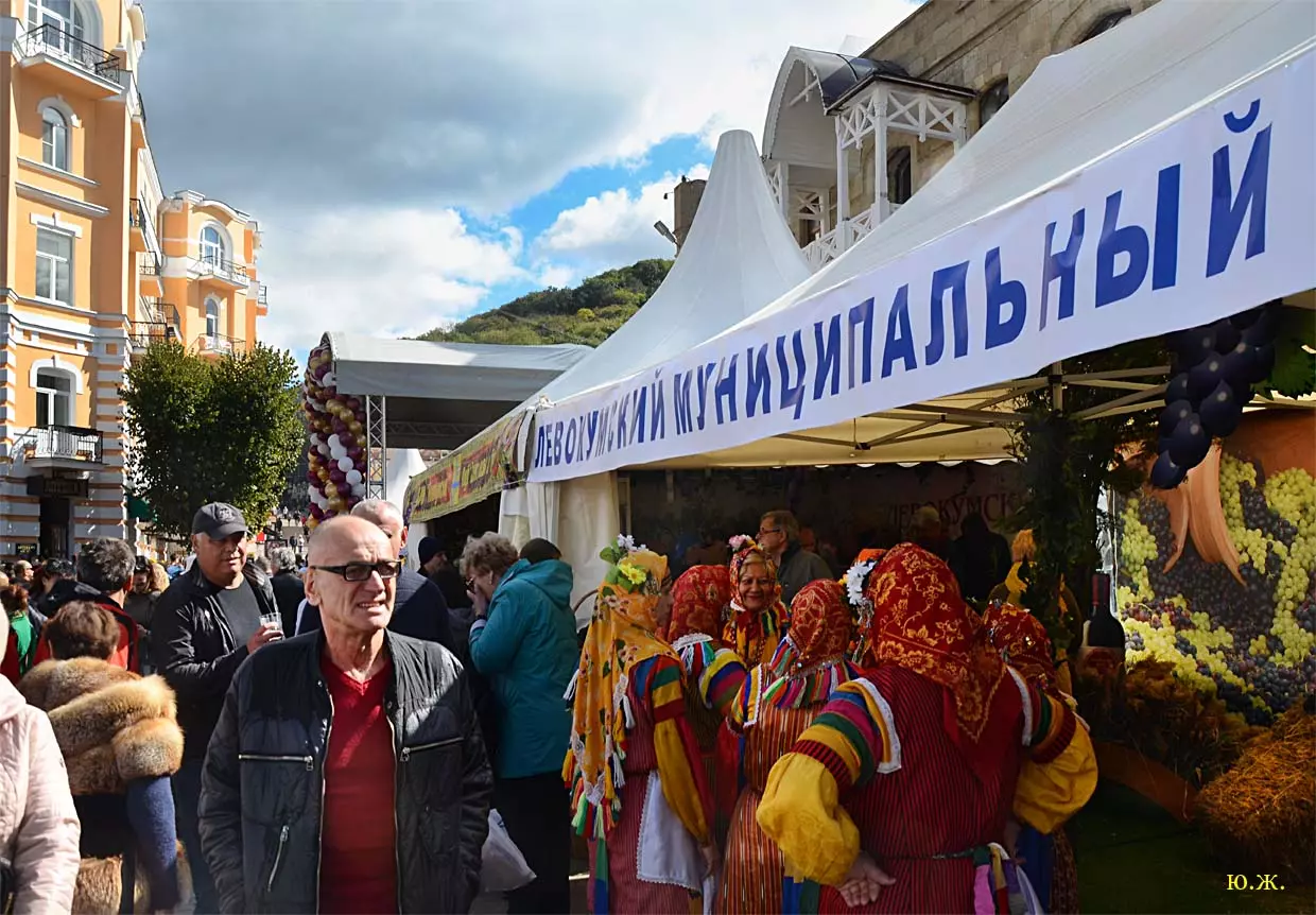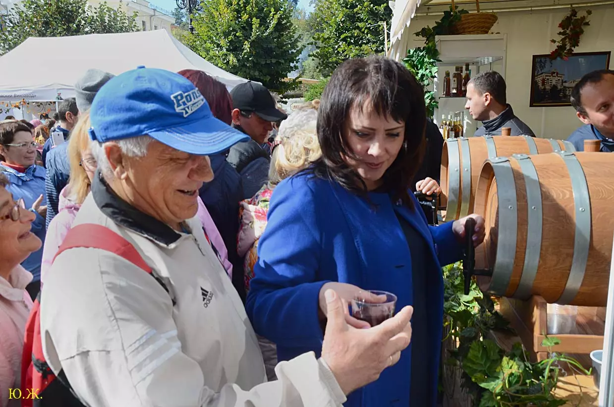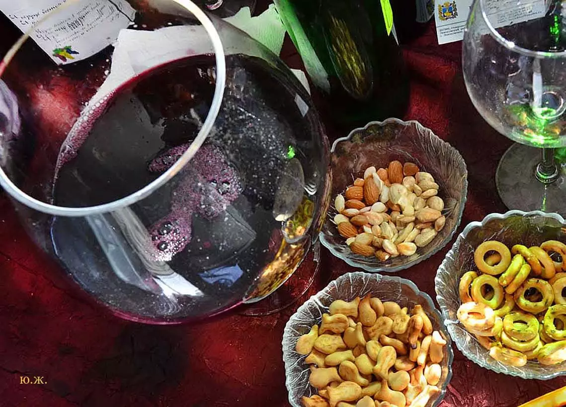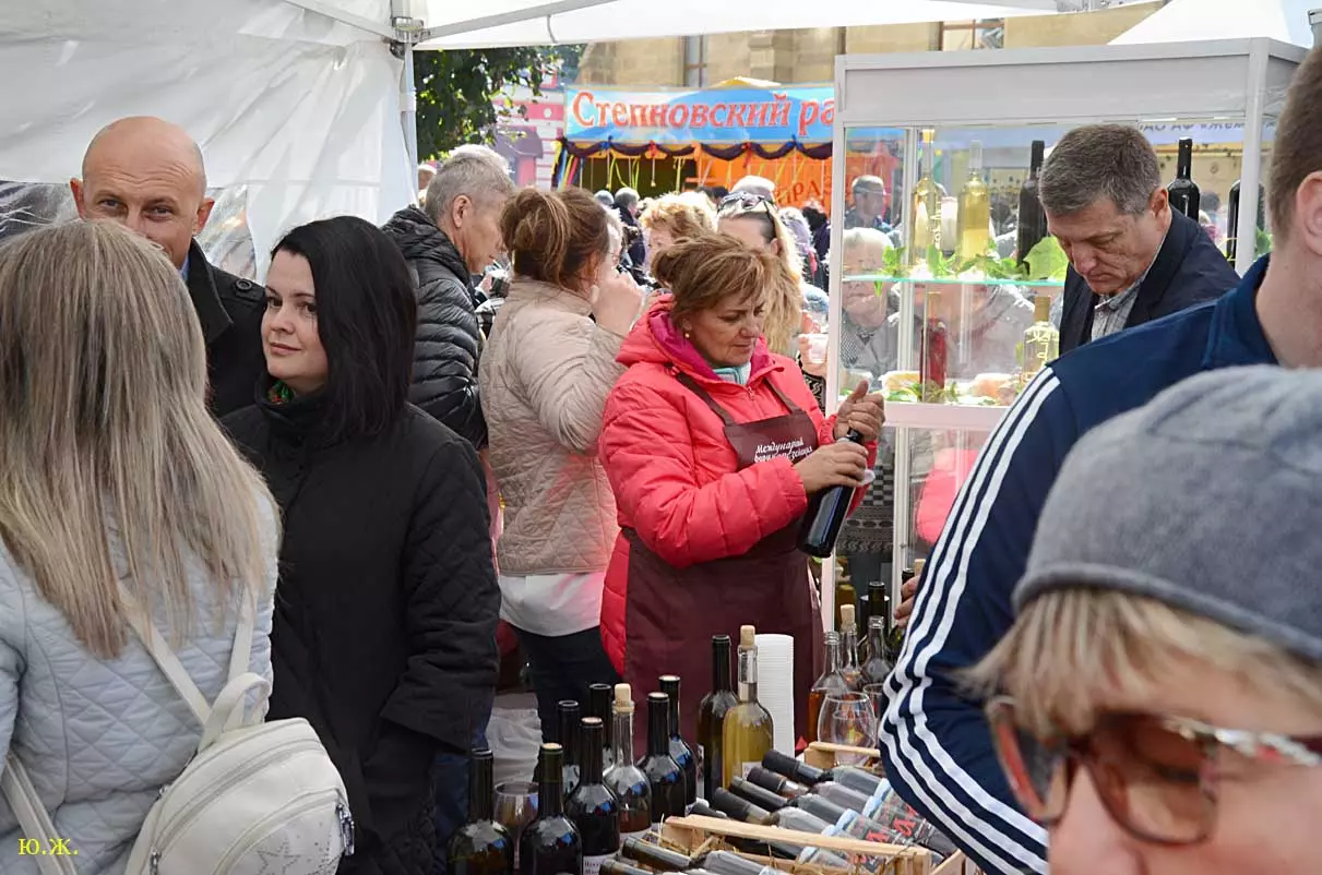 дегустационных павильонах у Нарзанной галереи на Пятачке, украшенных отборными гроздьями винограда и щедро заполненными батареями бутылок, а некоторые бочонками с кранами на прилавках, протекает приятное действо. Многочисленным гостям и хозяевам города предлагается продегустировать вина и коньяки солнечного Ставрополья.