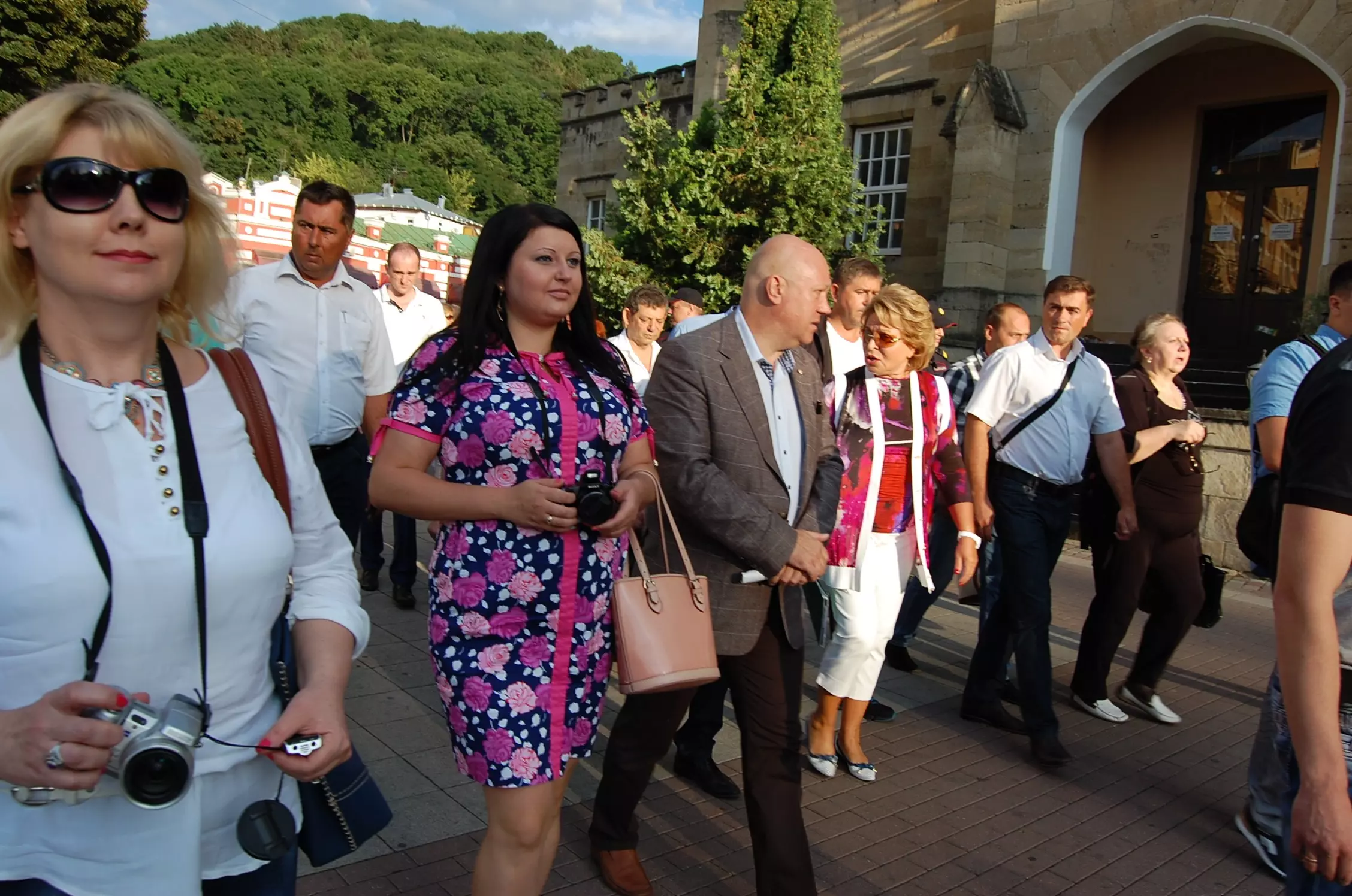 Председатель Совфеда остановилась у Колоннады, прошла в сопровождении представителей администрации, прессы и общественности по Курортному бульвару. Валентина Матвиенко жестко потребовала от городской власти вернуть фонтаны и клумбы, восстановить Кисловодское озеро, решить проблему с торговлей и т.д. Подробно об этом мы в ближайшее время расскажем, а пока предлагаем читателям снимки, сделанные во время рейда.