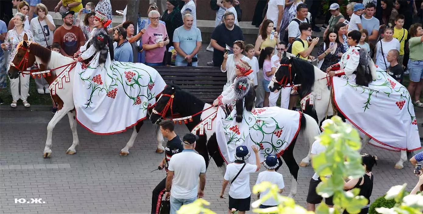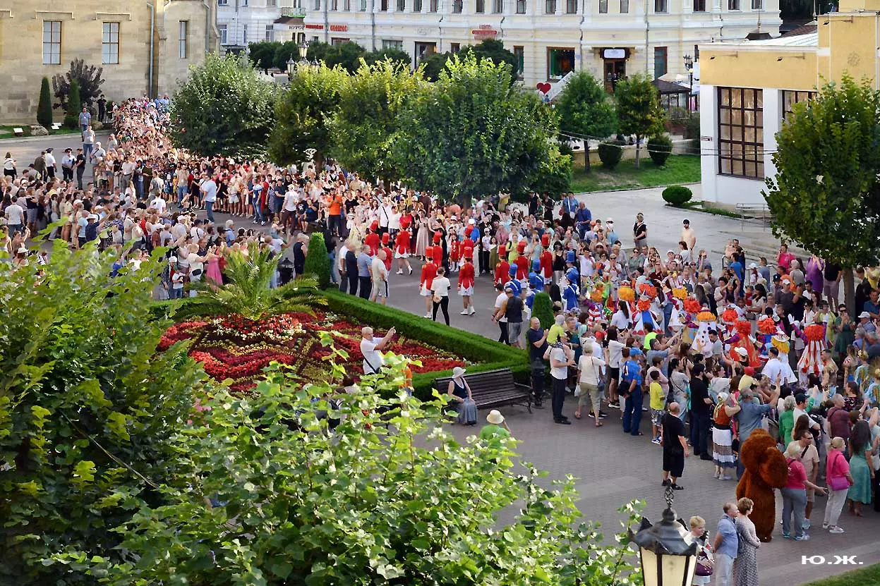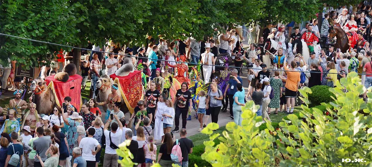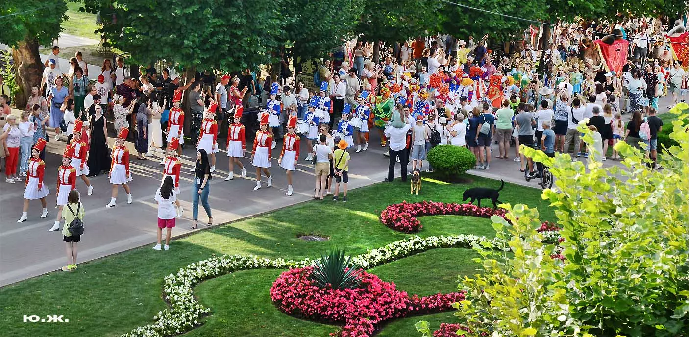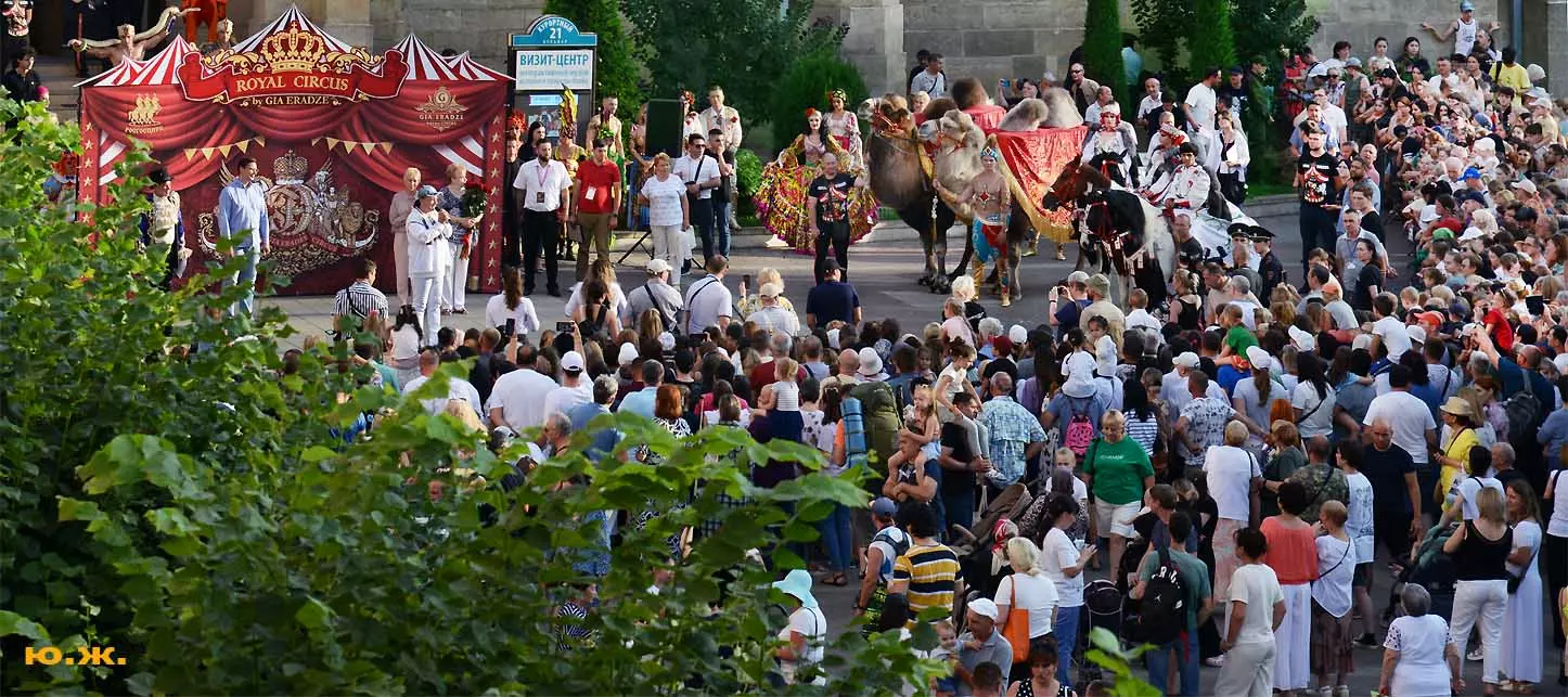 Перед нами разворачивается прекрасное действо, чудесное шоу, особенно, когда все проходит на фоне старинной архитектуры Курортного бульвара и пышных августовских клумб. И вот начинается движение мощной массы людей и «наших младших братьев», нарастает приглушенный гул, мы различаем уже детали. Сюжеты быстро меняются. Мы понимаем, какого высочайшего уровня это представление, восхищаемся чудесными костюмами, мастерством артистов, их статью, понимаем, какой за этим стоит гигантский труд…