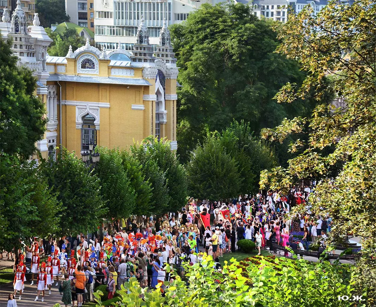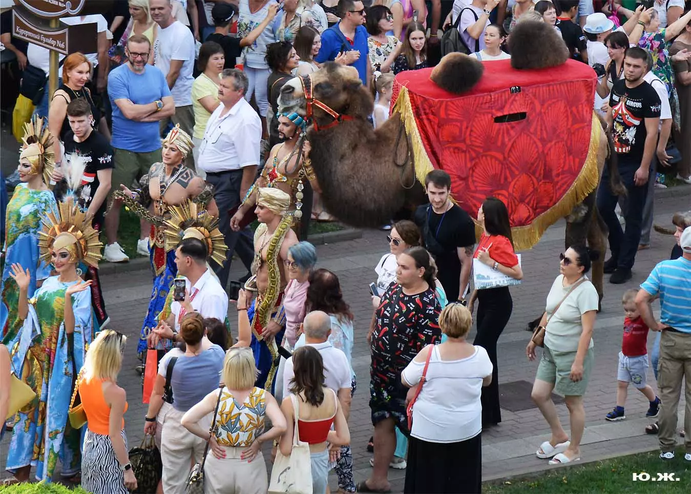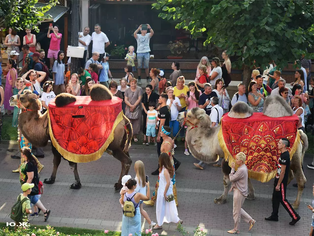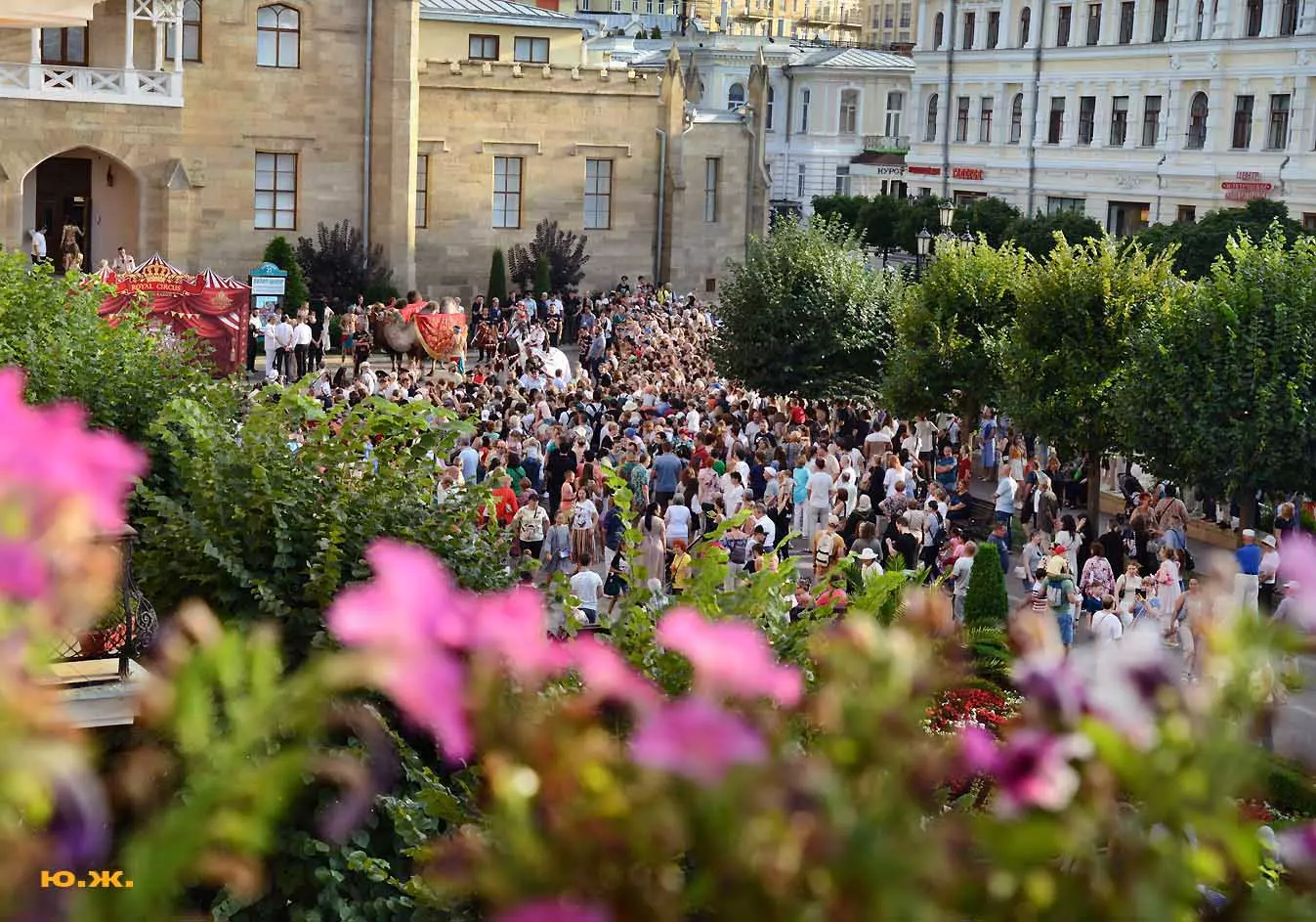 Перед нами разворачивается прекрасное действо, чудесное шоу, особенно, когда все проходит на фоне старинной архитектуры Курортного бульвара и пышных августовских клумб. И вот начинается движение мощной массы людей и «наших младших братьев», нарастает приглушенный гул, мы различаем уже детали. Сюжеты быстро меняются. Мы понимаем, какого высочайшего уровня это представление, восхищаемся чудесными костюмами, мастерством артистов, их статью, понимаем, какой за этим стоит гигантский труд…