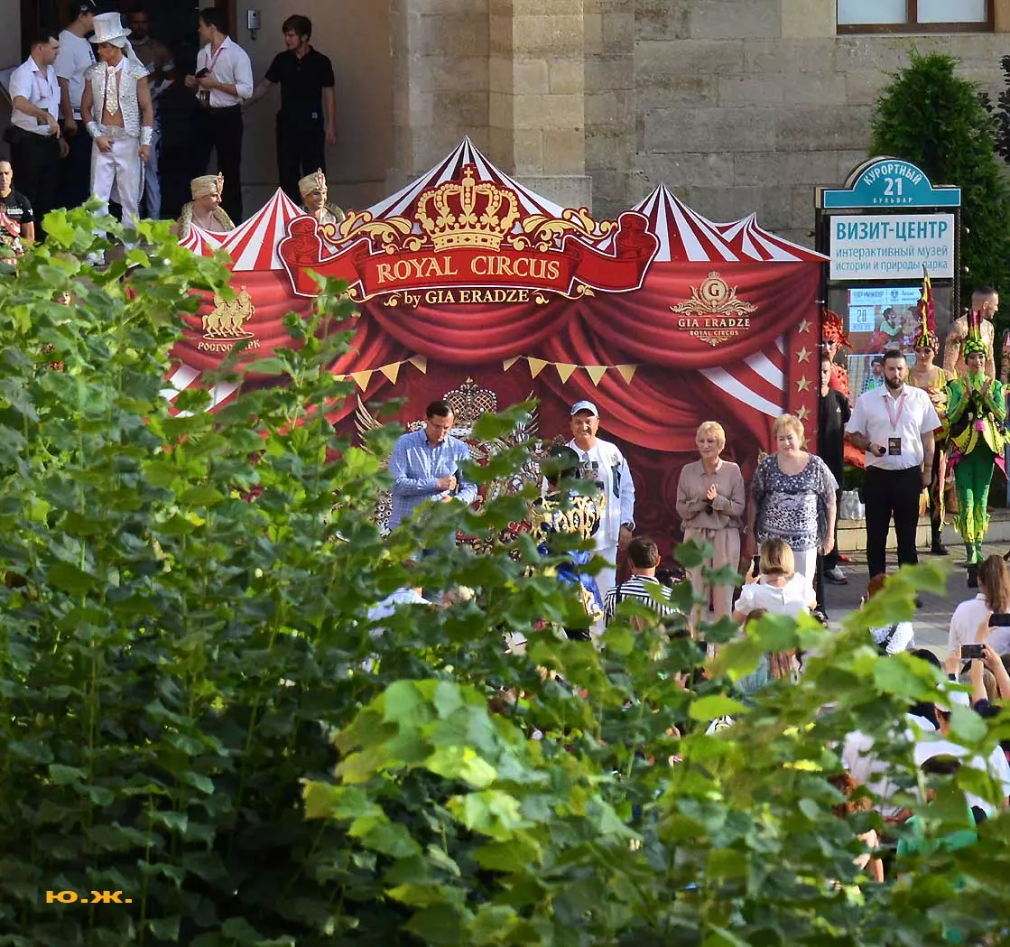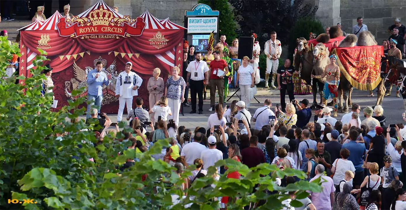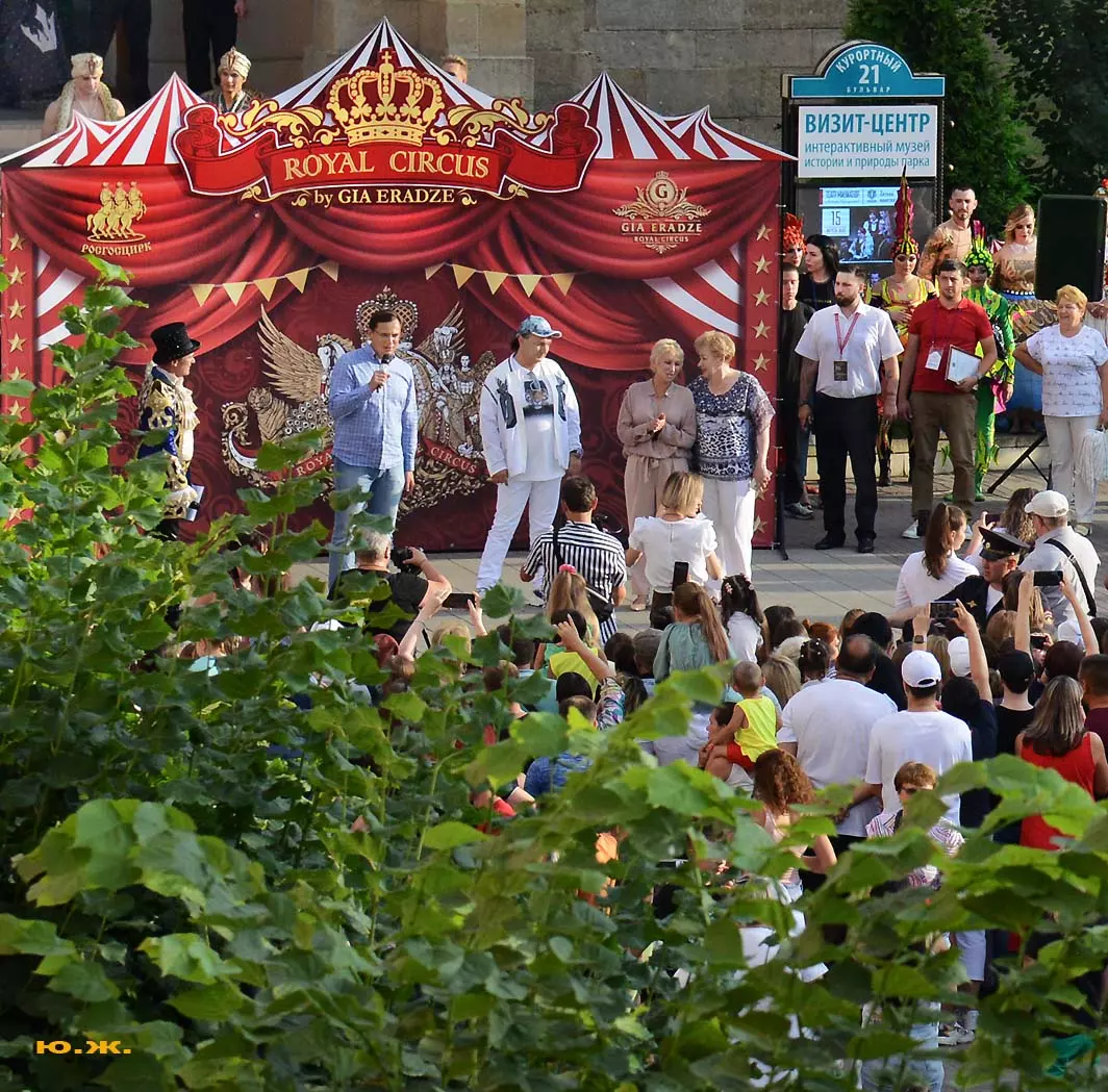 А между тем на «Пятачке» у Нарзанной галереи собралось много людей. Шоу продолжалось. Цирк приготовил обширную программу. Руководители города поздравили артистов цирка, его руководителей с полувековым юбилеем. От имени артистов Гия Эрадзе поздравил кисловодчан с 220-летним юбилеем города Солнца и Нарзана.
