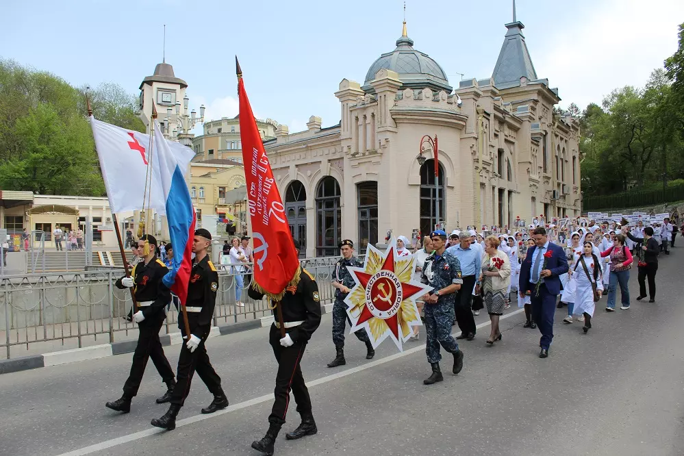Сегодня в память о медиках Кисловодска в годы Великой Отечественной войны от площади железнодорожного вокзала стартовало торжественное шествие. В суровые военные годы Кисловодск стал городом-госпиталем.