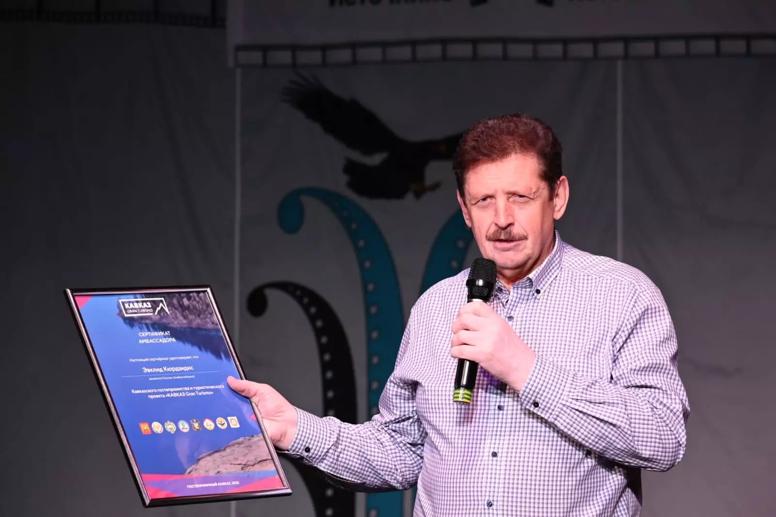 В краевом Минтуризма теперь даже начали вручать сертификаты амбассадоров КМВ. Один из первых из рук А.Сысоева получил Э.Кюрдзидис. Отныне он стал Послом Кавказского гостеприимства и туристического проекта «КАВКАЗ GranTurismo»!
