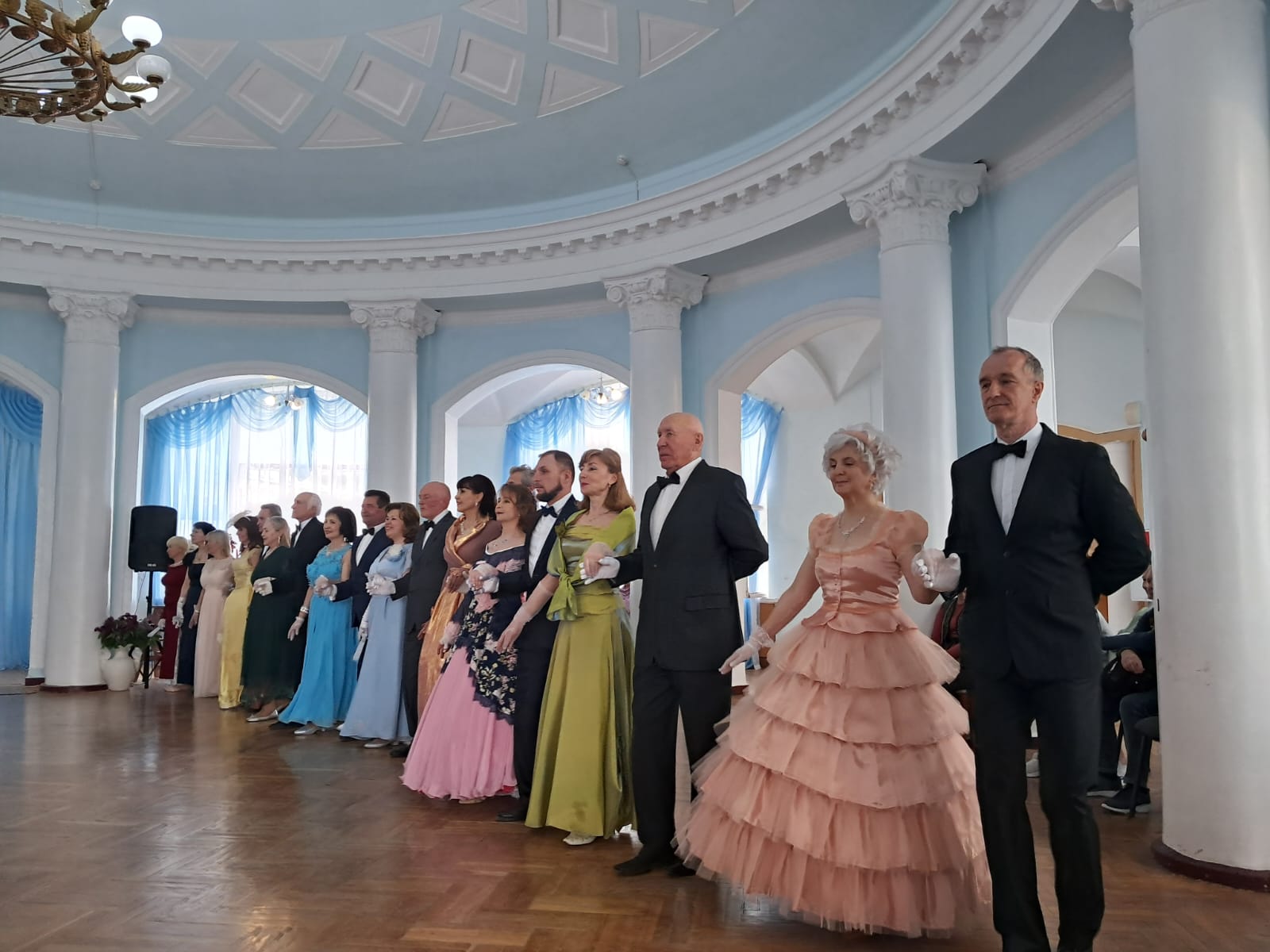 Так очень нужное и крайне необходимое для людей искусство исторического танца прижилось на КМВ. Ведь клуб «Грация» — пока единственный на все города КМВ. Он живёт и развивается в стенах старейшего санатория Кисловодска имени Кирова, где роскошный голубой зал с великолепной люстрой словно предназначен для проведения таких балов. В этот уникальный клуб записались и ходят на постоянной основе (три раза в неделю) желающие из Ессентуков, Пятигорска и Минеральных Вод. Теперь в клубе «Грация» участники из разных городов КМВ, поэтому его можно называть междугородним. Это лишний раз доказывает, что у этого танцевального направления есть будущее! Сюда приходят заниматься и мужчины, они с большим удовольствием становятся здесь «кавалерами», их уже 22 человека. Возраст танцоров-любителей от 37 до 79 лет. Хочется отметить, что в клубе «Грация» танцуют 10 семейных пар.