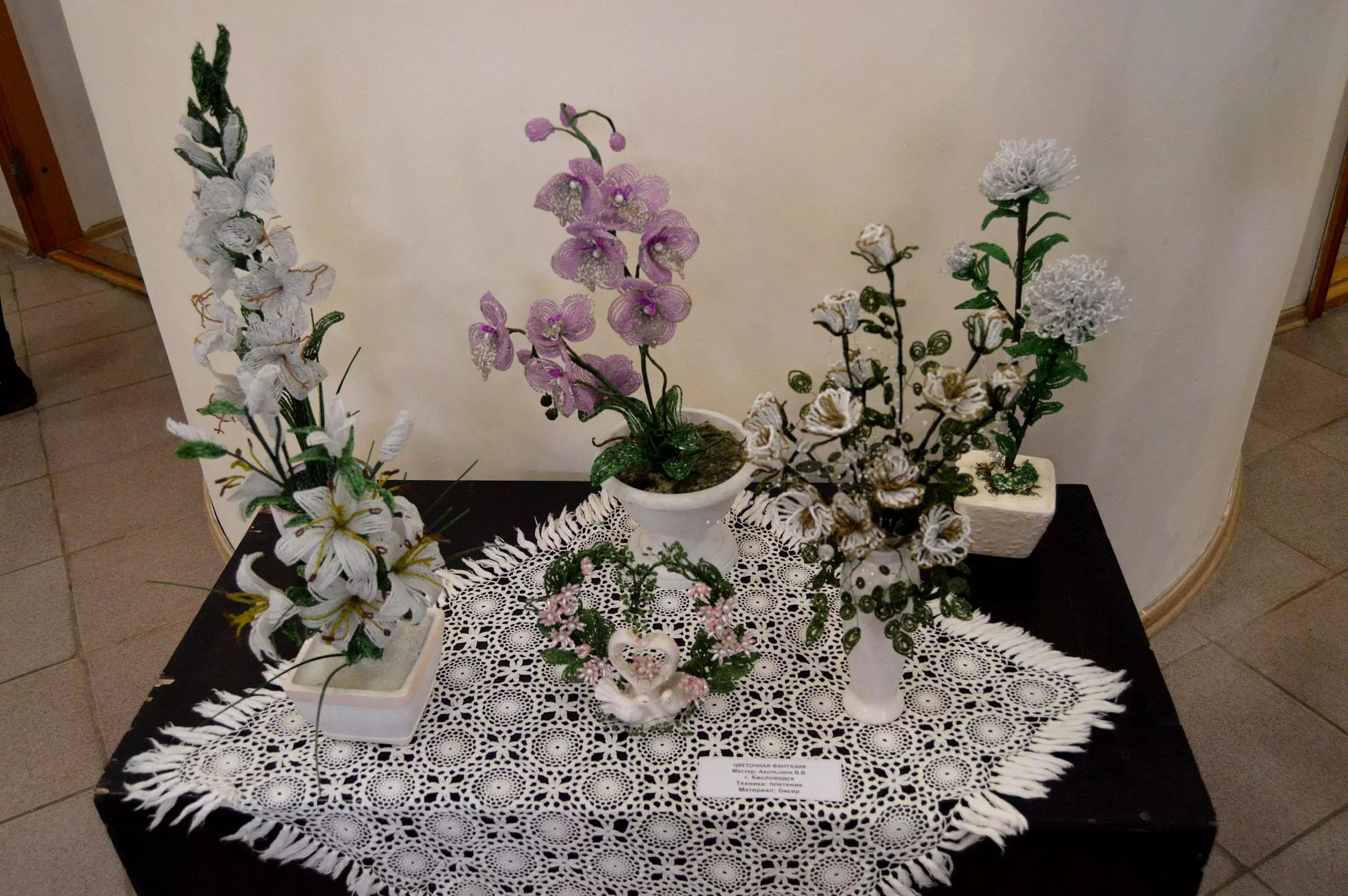 Неоднократно представляла свои работы на выставке жительница Ессентуков Валентина Кременица. Валентина Митрофановна занималась вышивкой с 1952 года, ее работы участвовали в многочисленных зональных краевых и общероссийских выставках, а сама мастерица неоднократно становилась героиней телевизионных передач.К сожалению, Валентины Митрофановны уже нет в живых, но в память о постоянном авторе, ее работы обрели достойное место на выставке.