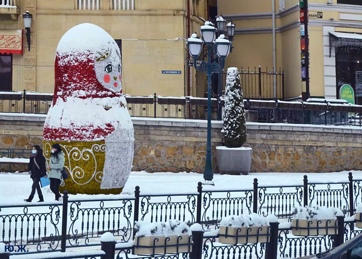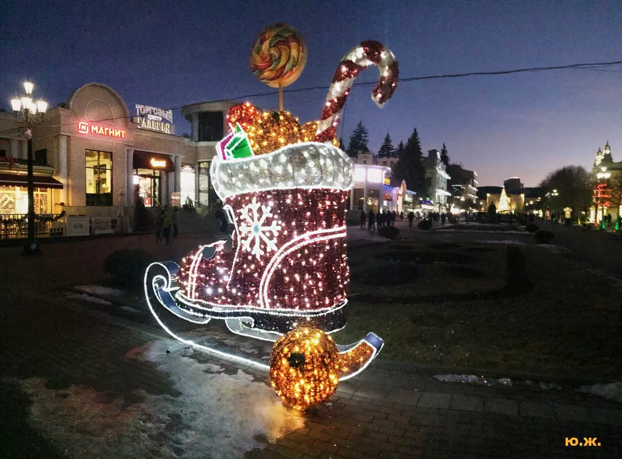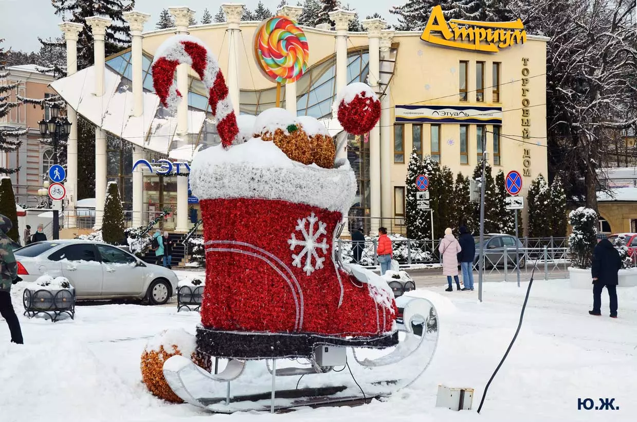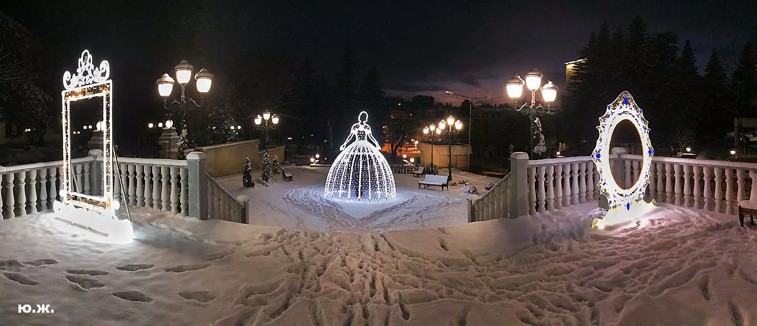 Вот он и наступил, 2021 год. Хотелось бы надеяться, что он будет благожелательнее ушедшего. Прошедший за несколько дней до Нового года, обильный и красивый снегопад, преобразил, пусть на короткое время Кисловодск, набросил на город стерильной белизны покрывало, подчеркнули сделал торжественнее, знакомые по прошлогодним зимним праздникам, подсвеченные фигуры. Хотя сейчас они поменяли свою дислокацию: матрешка, самовар, сапожок новогодний, веер, голливудская леди… Да и хотелось бы увидеть что-то новое в этом жанре.