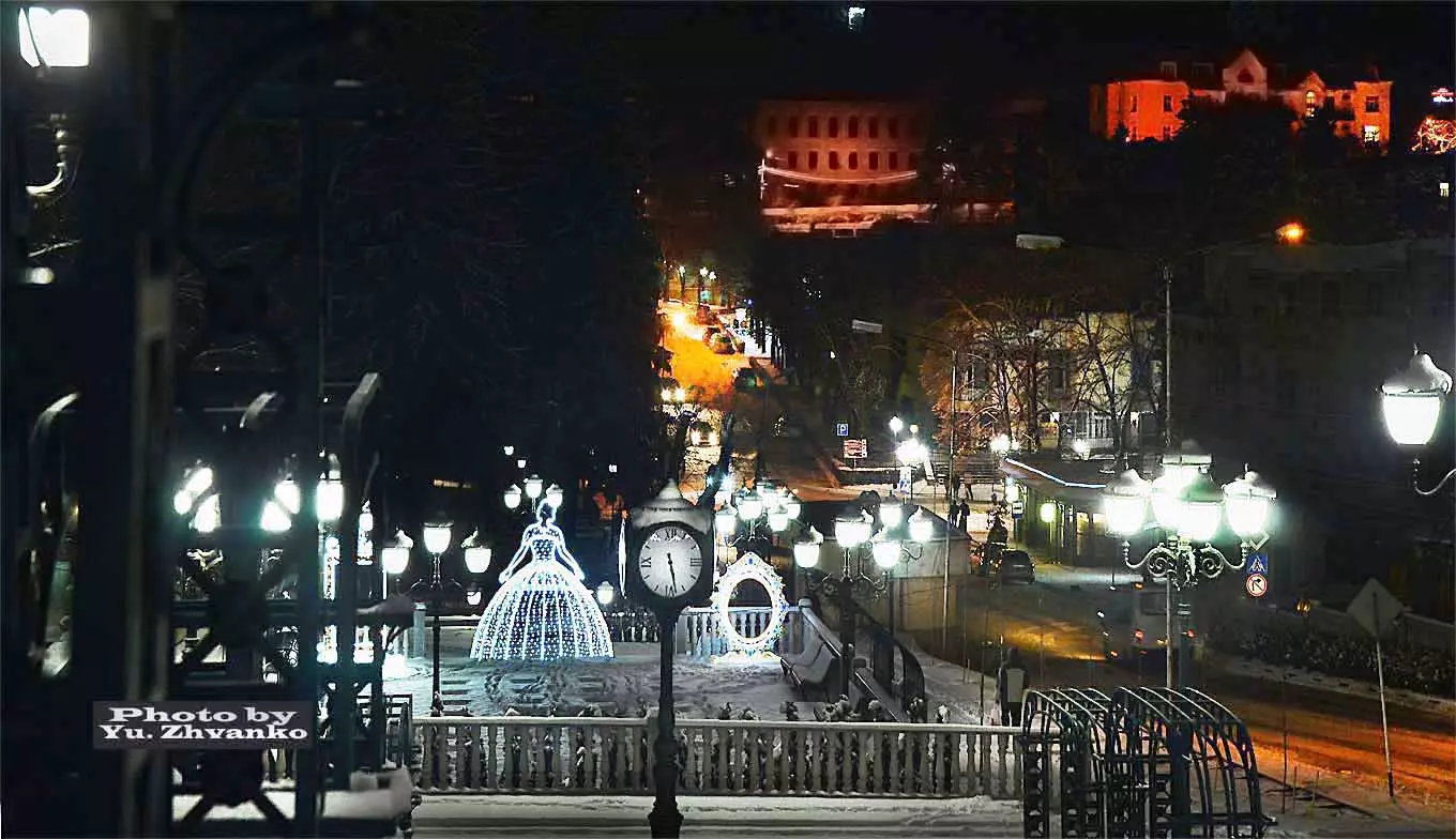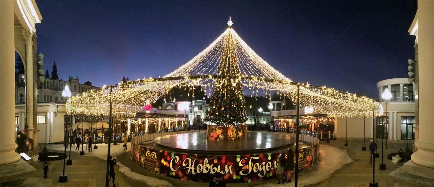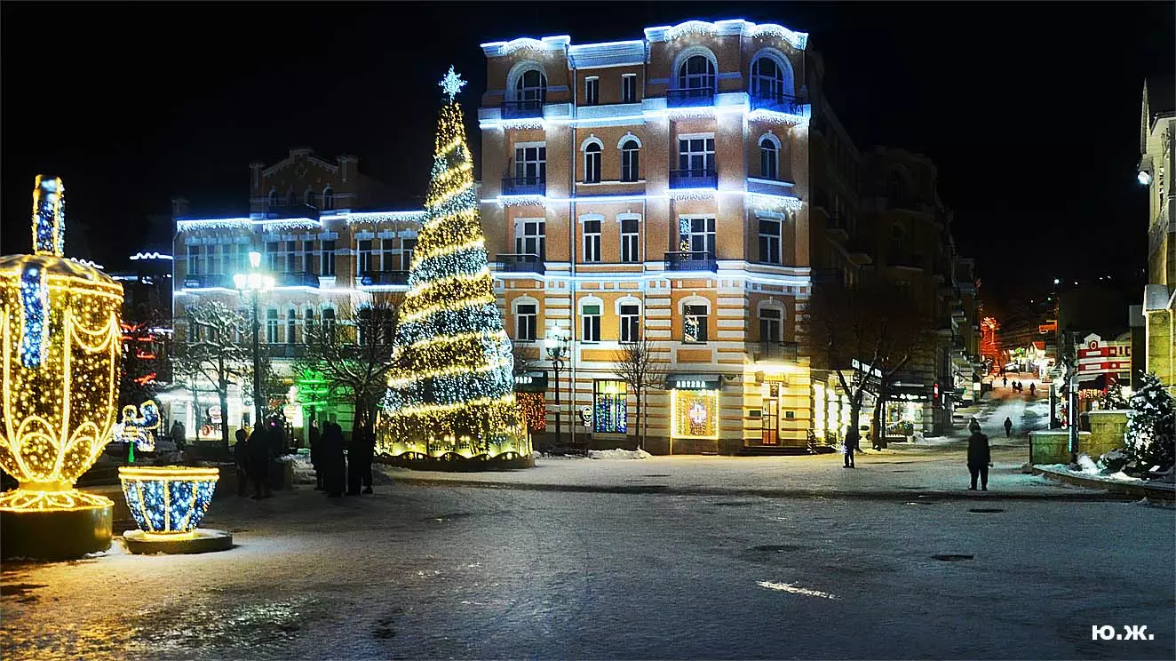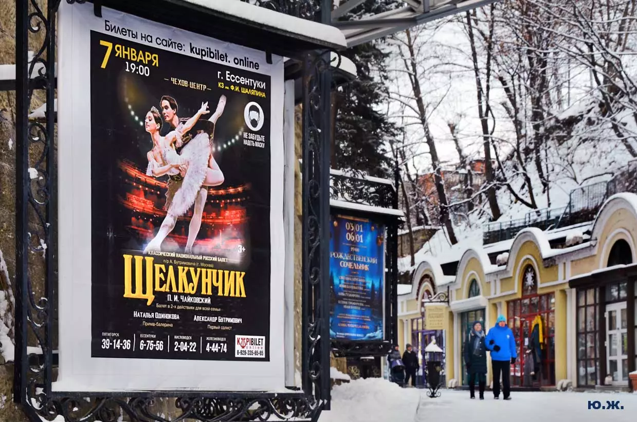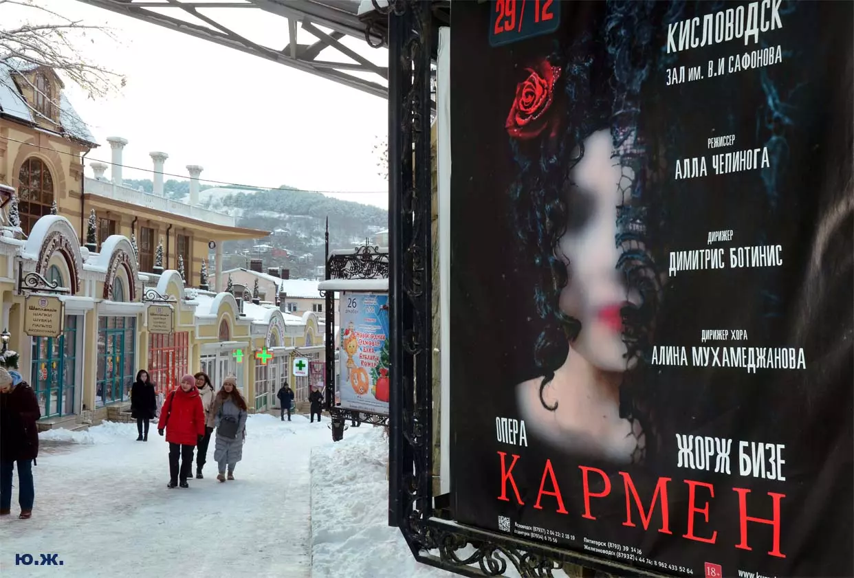 На Курортном бульваре установлены две красивые новогодние елки, на разный вкус. Бульвар же как всегда прекрасен. Вверх от него по проспекту Карла Маркса можно пройтись и полюбоваться на театральные афиши, они достойны этого всегда, но в зимние праздники, с их богатым новогодним и рождественским репертуаром, особенно. А еще, когда все вокруг белым бело от снега и перед собой видишь гондольера а позади его Венецию… Релакс- прекрасная вещь, даже когда это просто афиша. Врачам курорта хорошо бы рекомендовать своим пациентам такой променад как позитивную психотерапию, и, естественно, с посещением Курзала.