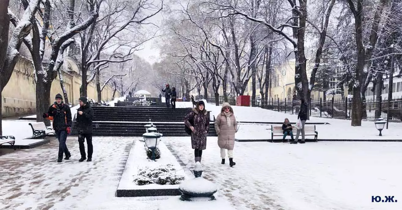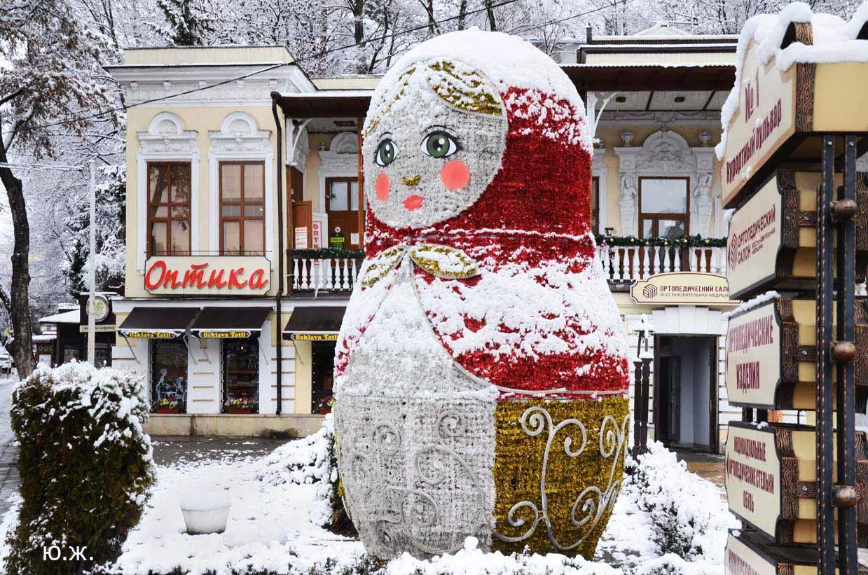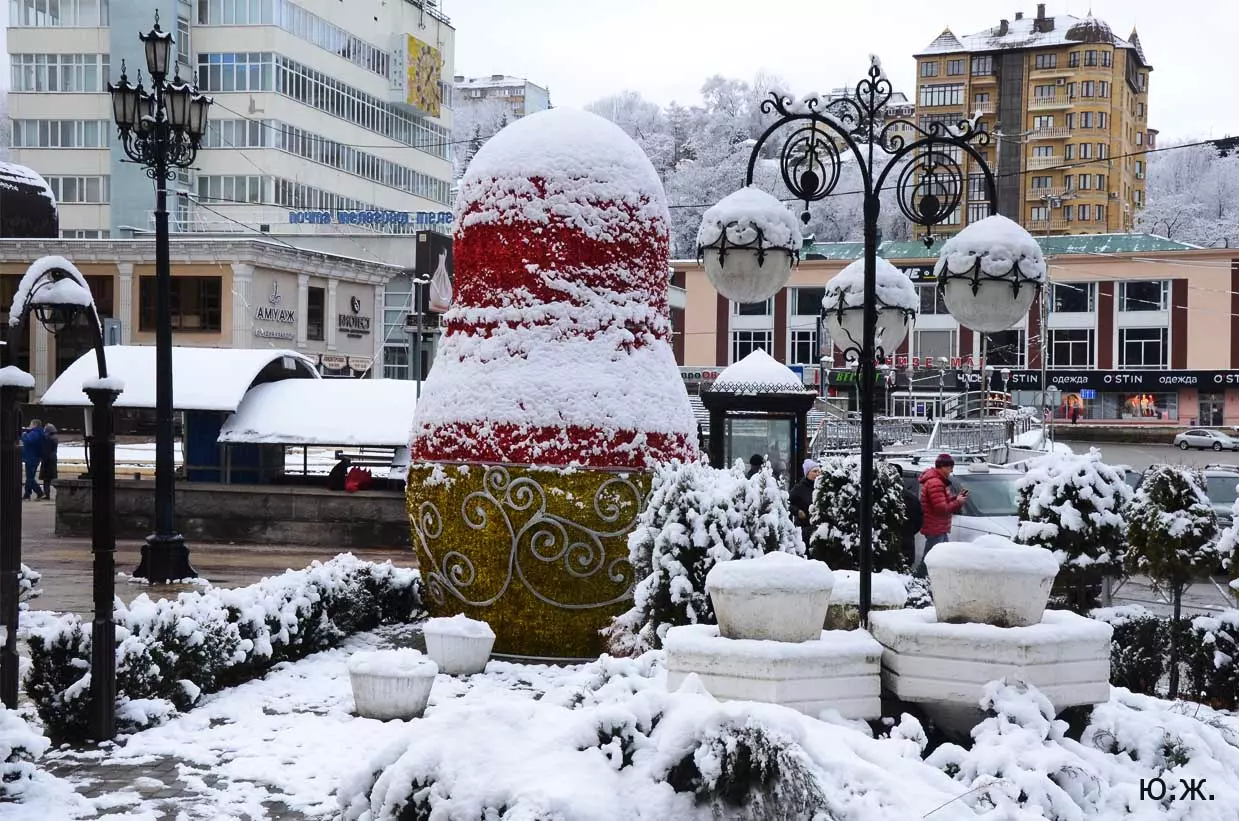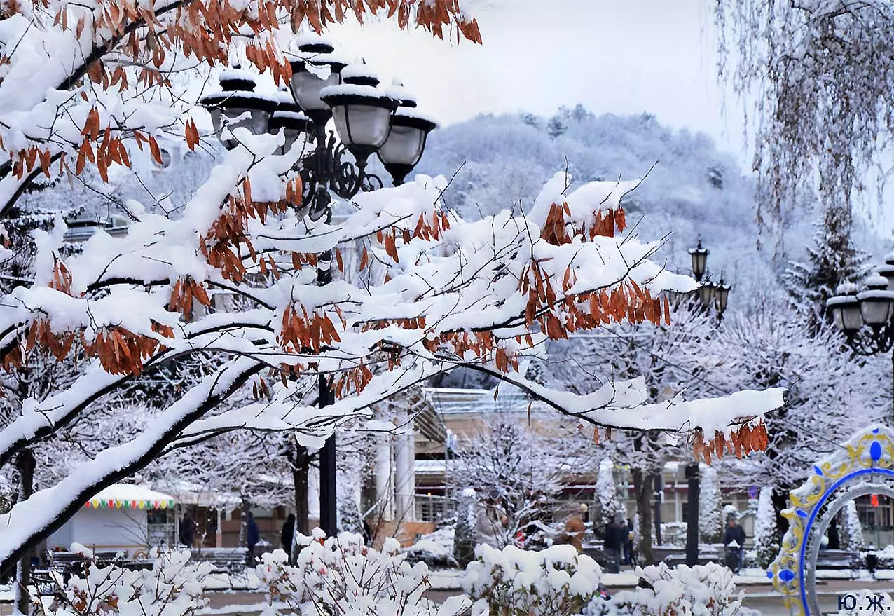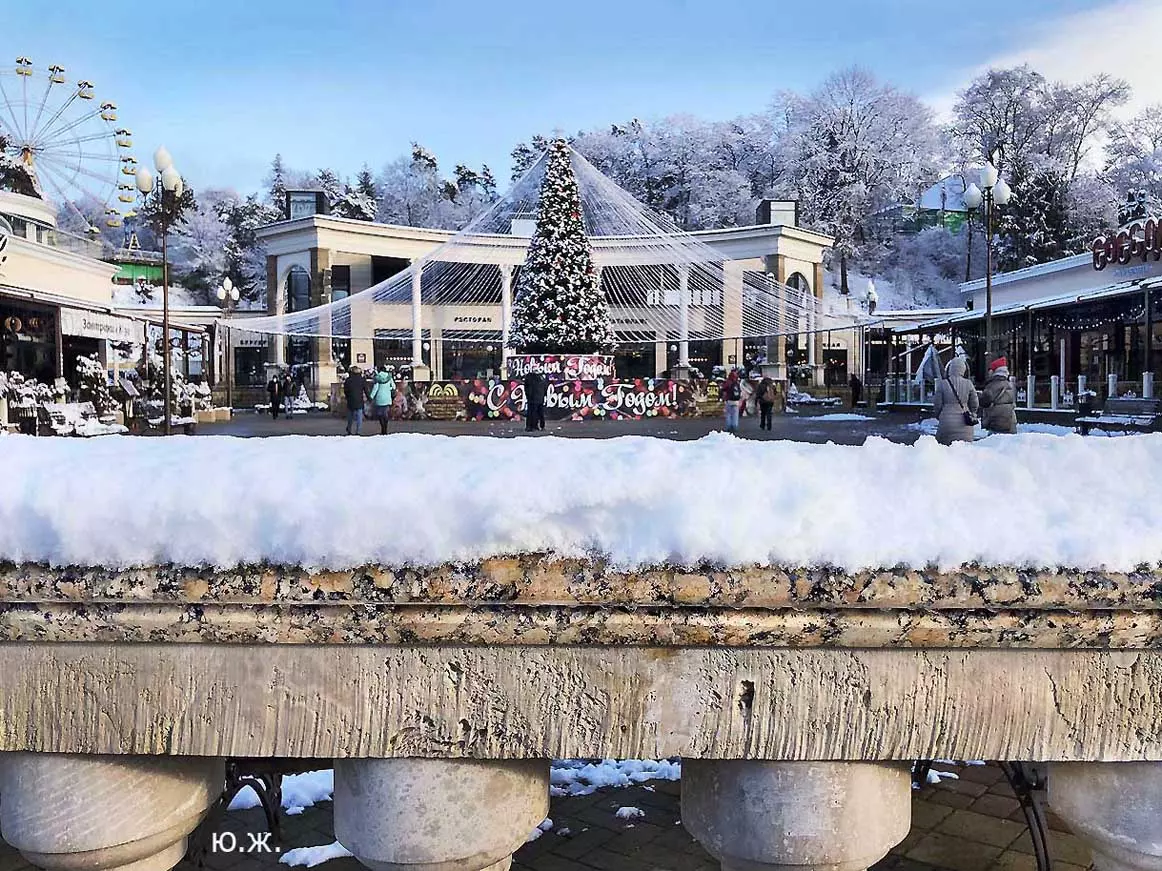 В этой подборке фотографий представлены снимки конца прошлого и начала нового года. Выпавший очень кстати для съемки обильный и красивый снег хоть и продержался чуть более суток, позволил запечатлеть под белоснежным покрывалом и город, Курортный бульвар, и Новое старое озеро с верхних точек, и завершающуюся стройку в долине Аликоновки.