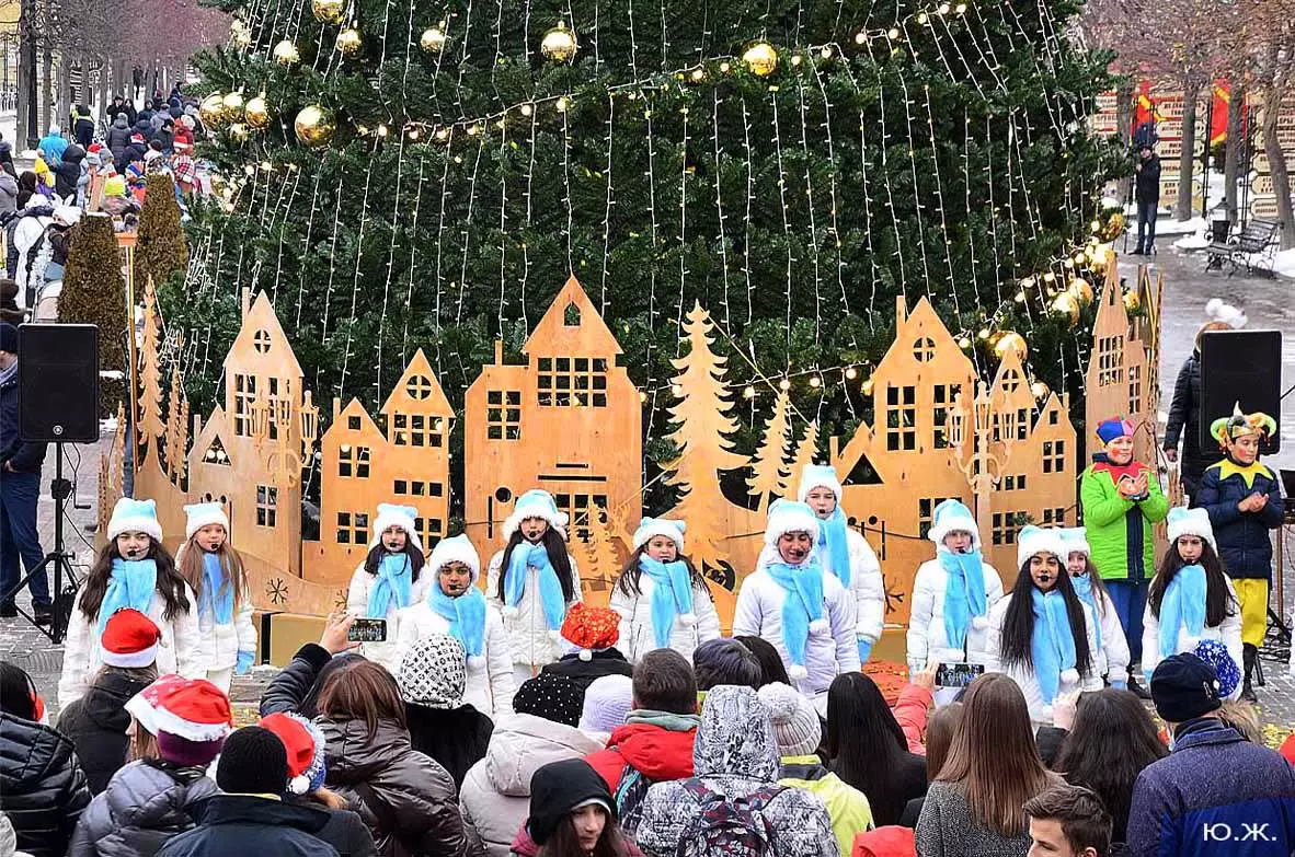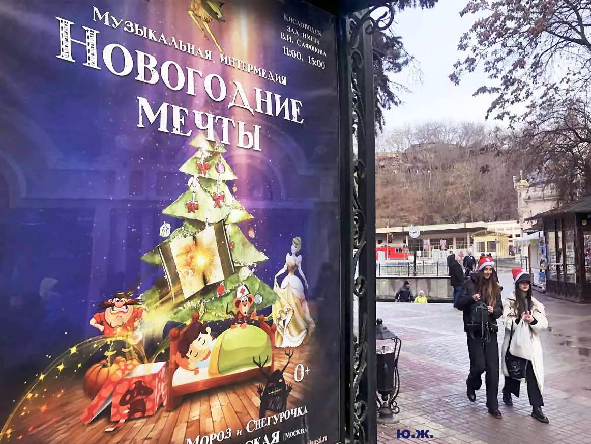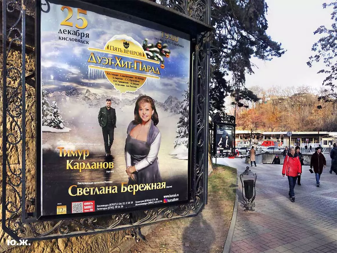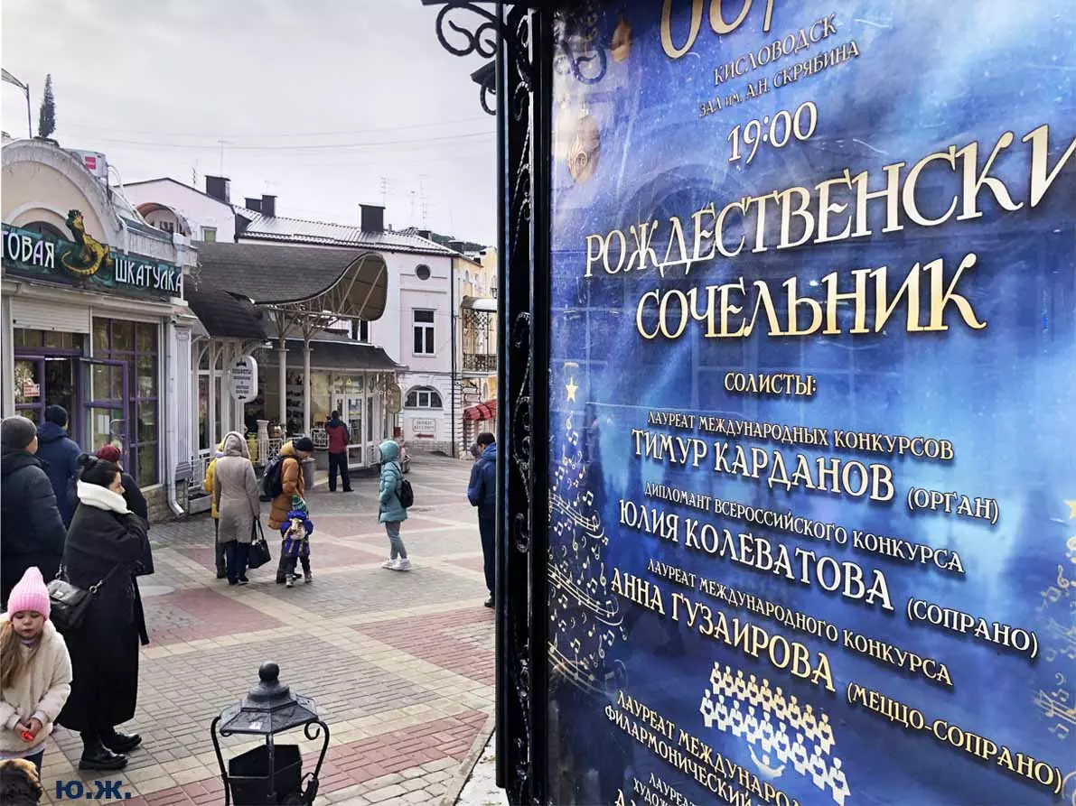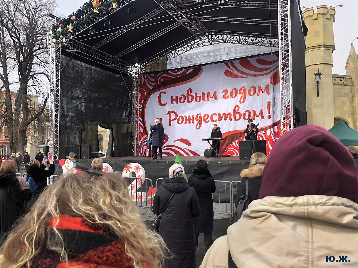 5 января, у входа в Нарзанную галерею, на сцене металлической музыкальной конструкции, украшенной новогодней иллюминацией, шел интересный концерт.