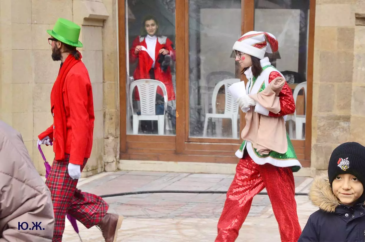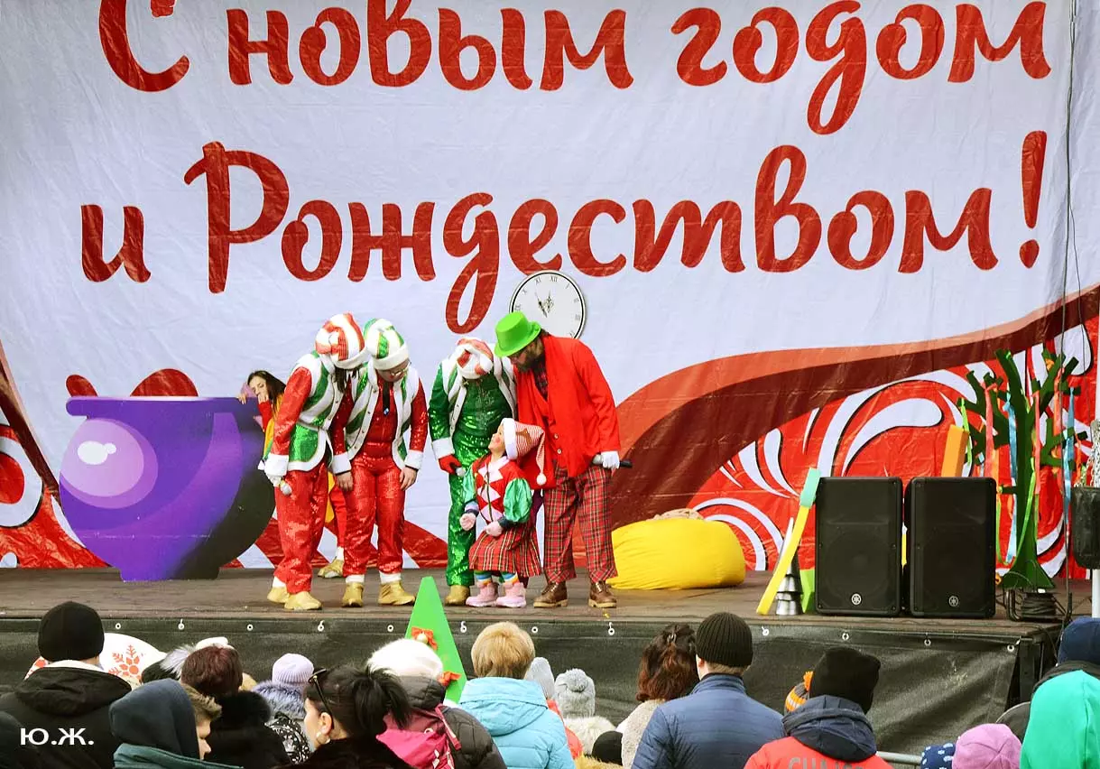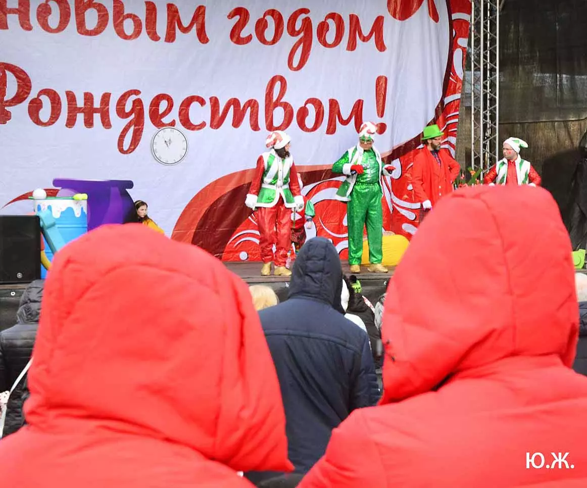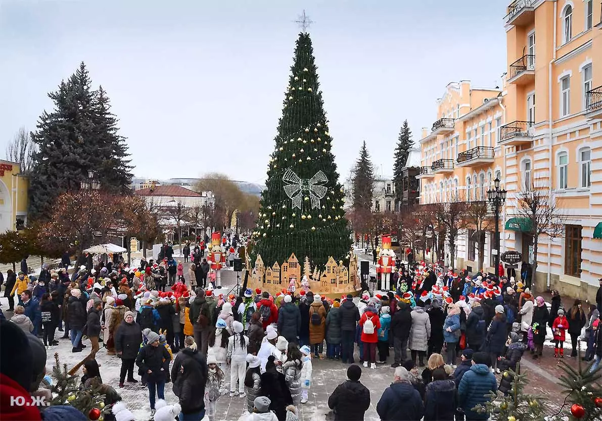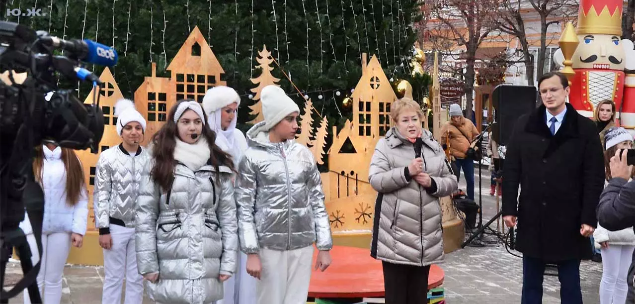 5 января, у входа в Нарзанную галерею, на сцене металлической музыкальной конструкции, украшенной новогодней иллюминацией, шел интересный концерт.