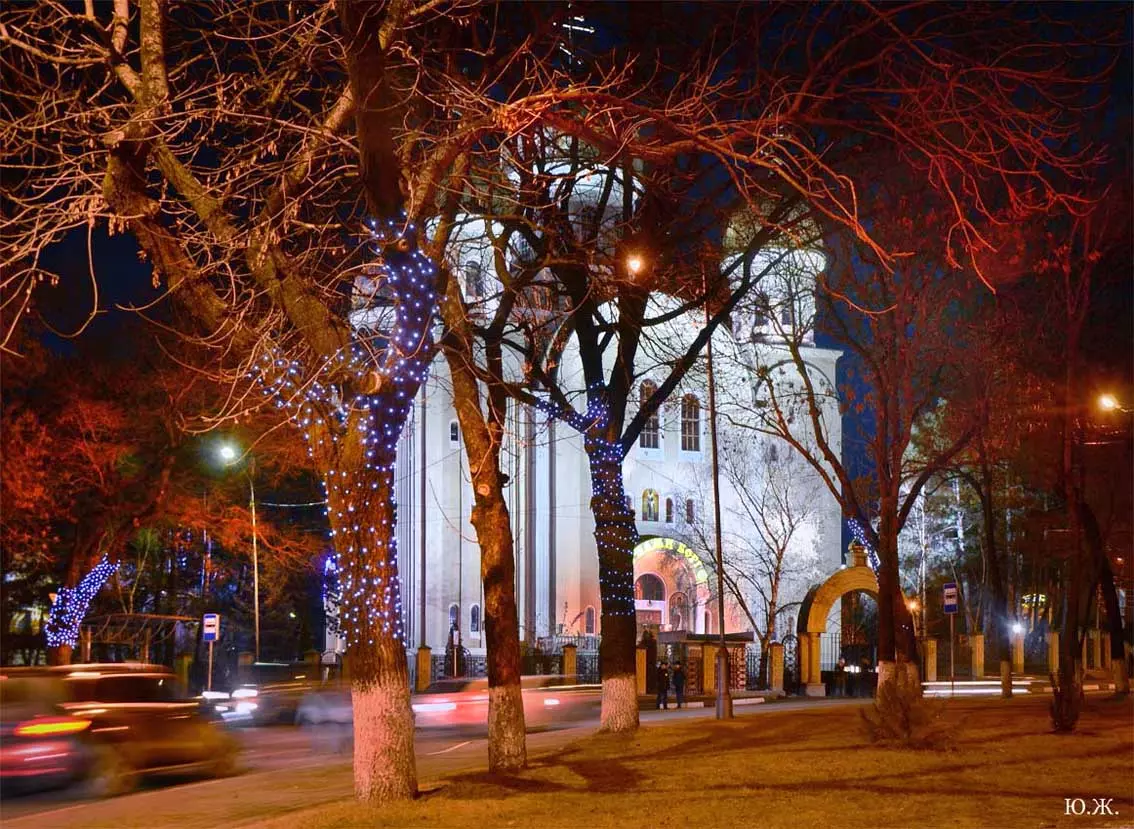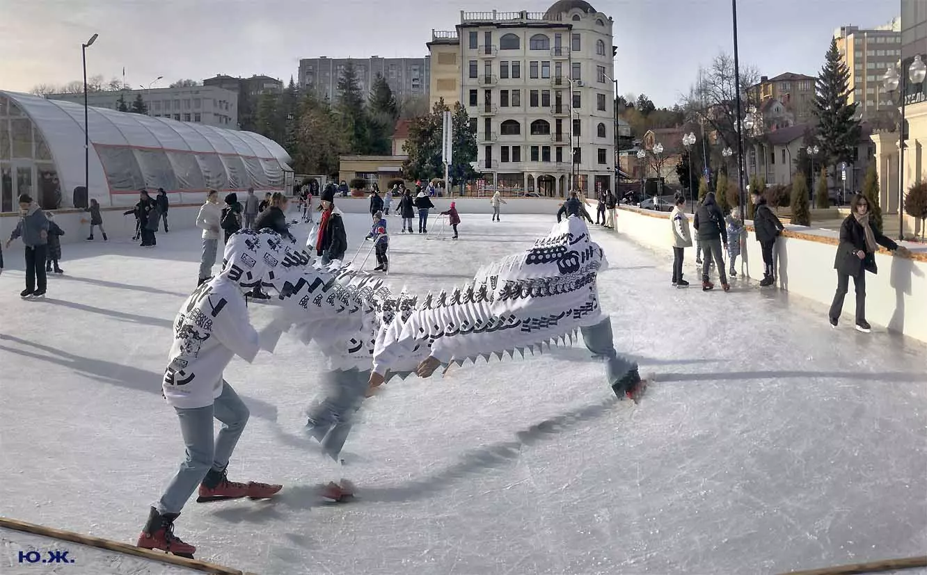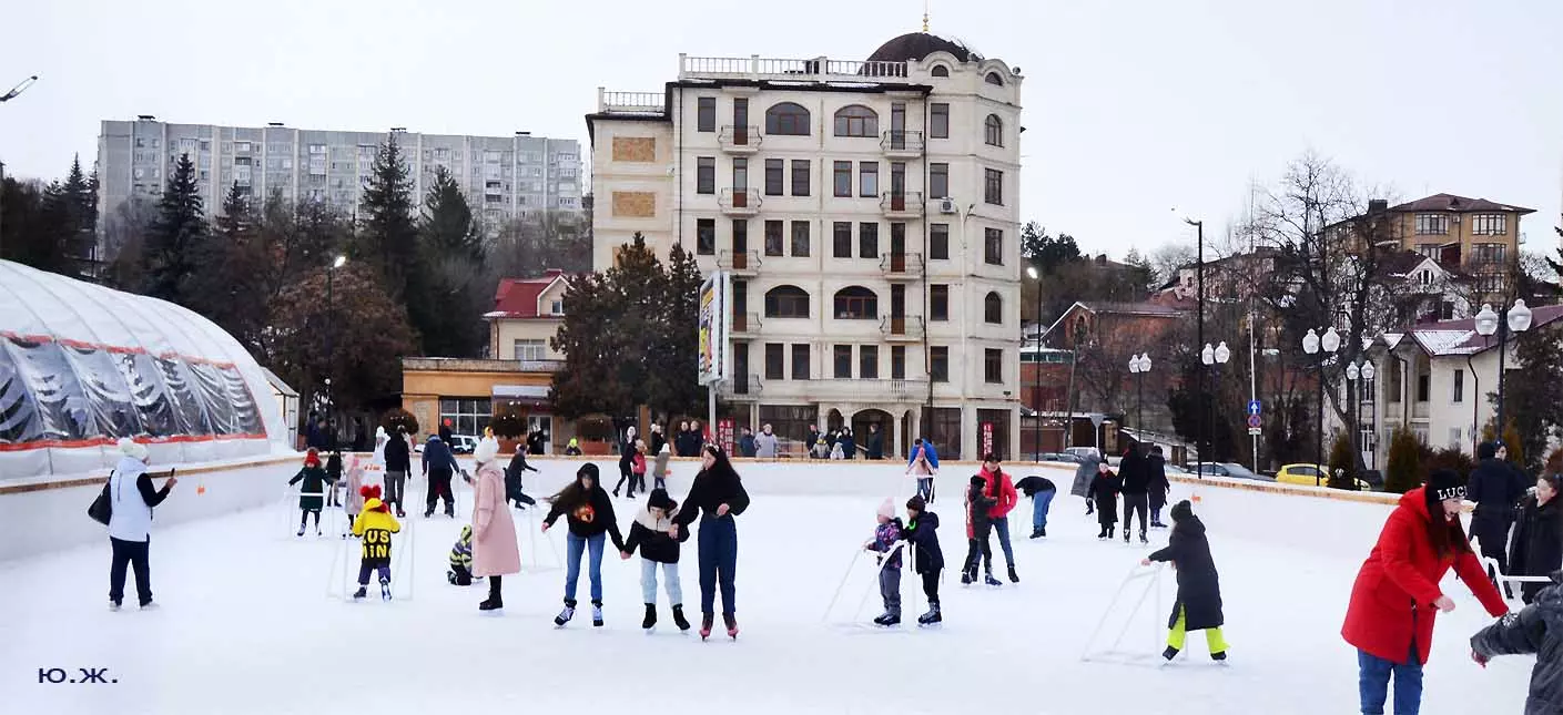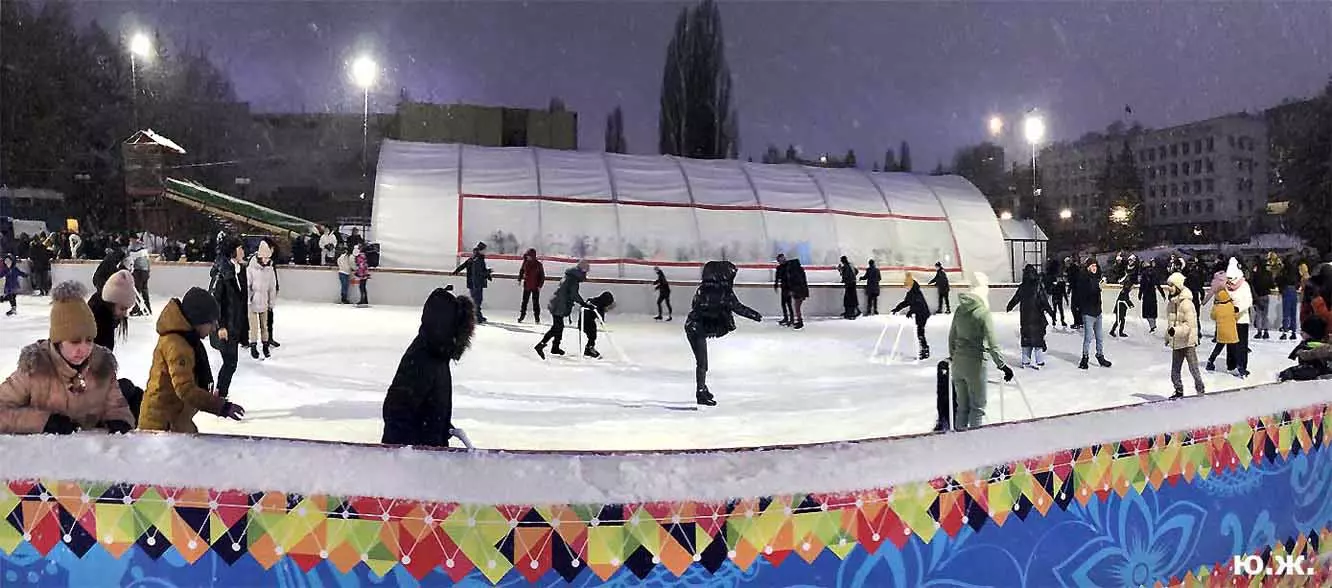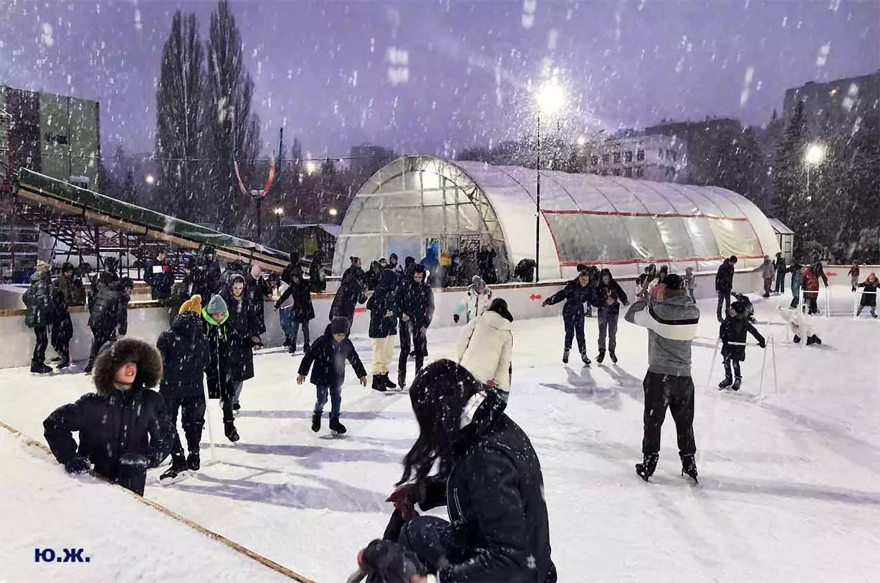 Рано утром при отсутствии человеческих следов на снегу, последние два объекта смотрелись, как зимняя сказка, просто девственно. Красиво прошло открытие Главной елки города, удивила и ярмарка авторских изделий, и особенно авторское облачение продавцов-художников. А ледяной каток, часто переполненный, особенно красив при вечерней и ночной подсветке — тем более при медленно падающем пушистом снеге, как было второго января.