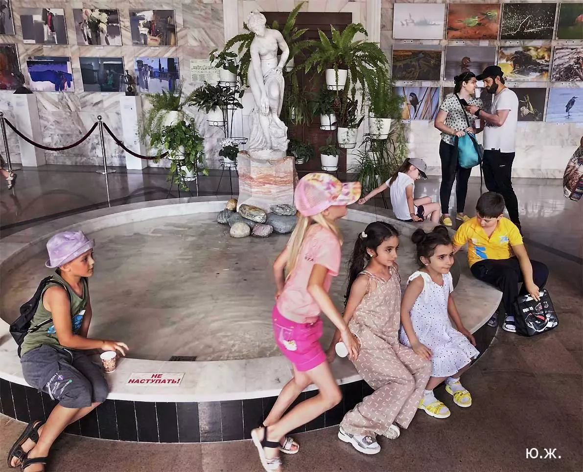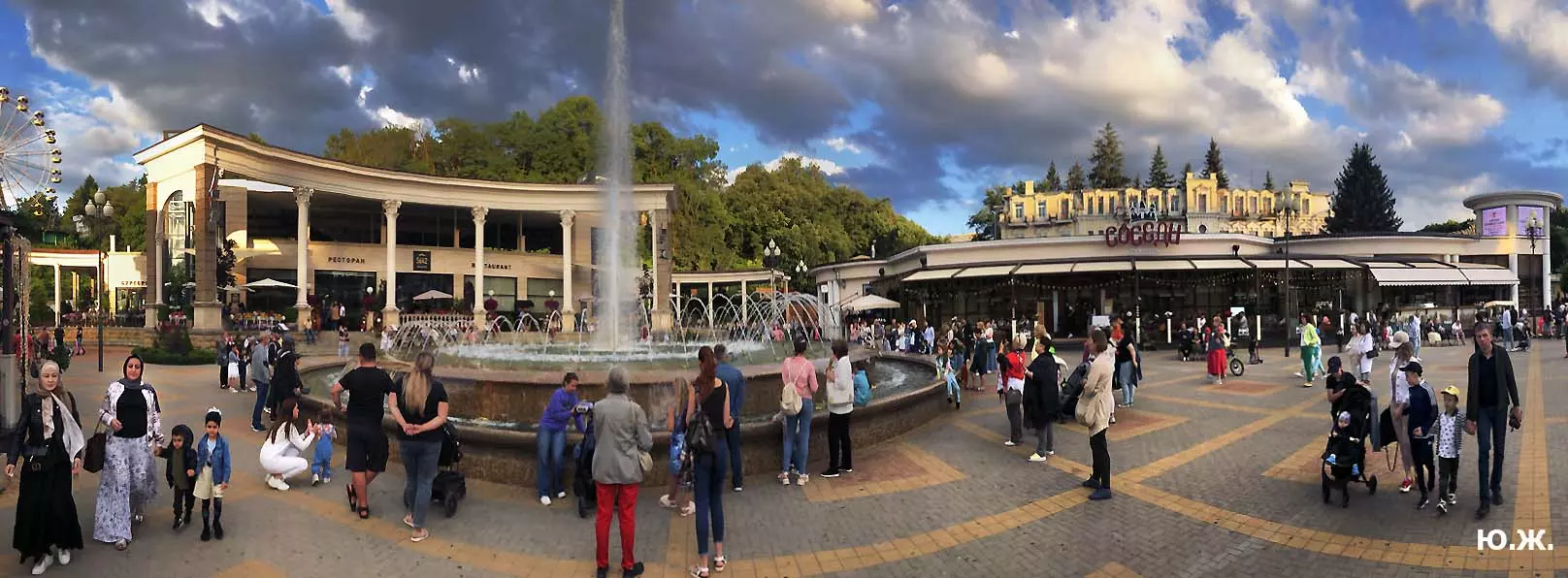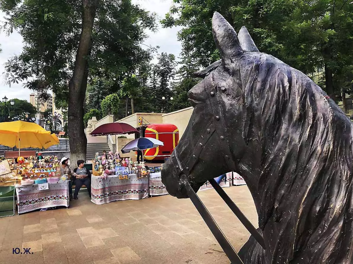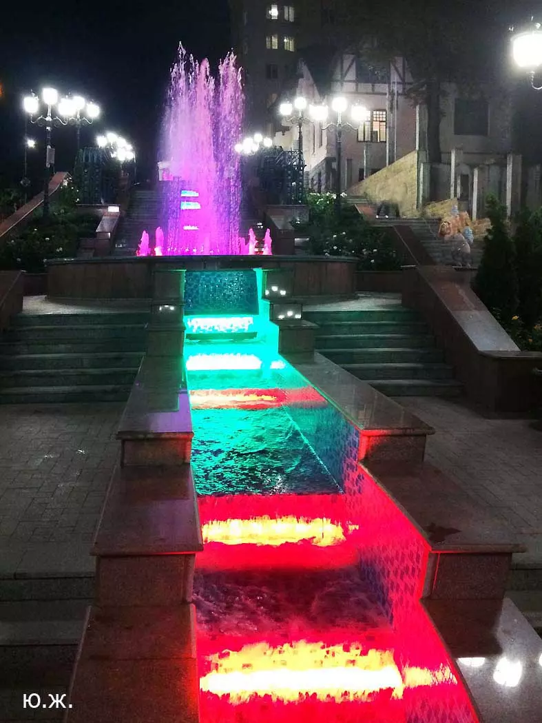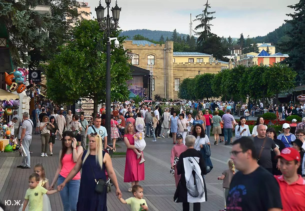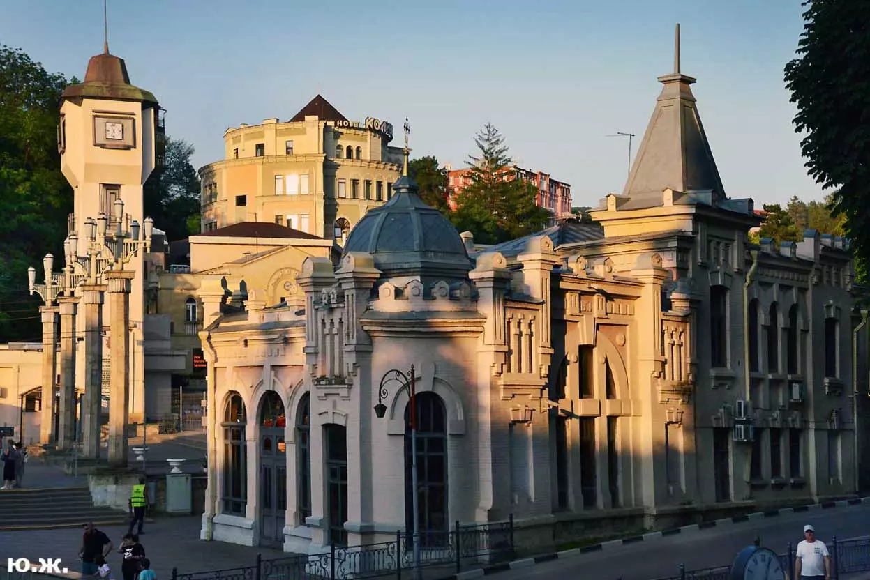Вот уже и середина лета. Публика переходит на светлые наряды. Многочисленные фонтаны города работают по максиму, придавая настоянному на фитонцидах кисловодскому воздуху дополнительную свежесть — хотя и не все они работают. Очень эффектно смотрится комплекс Малой Каскадной лестницы. И высота струй, и подсветка. Набравшие полную мощь роскошные клумбы, особенно бисквитные, дарят фланирующим вдоль них отдыхающим и горожанам эстетическое удовольствие. Хорошо сейчас и в Национальном парке, и чем выше, тем лучше. Много людей на Красном Солнышке. Отсюда прекрасный обзор, почти круговые панорамы, еще свежее воздух… Апогей лета! Здесь стоит памятник Михаилу Юрьевичу Лермонтову.