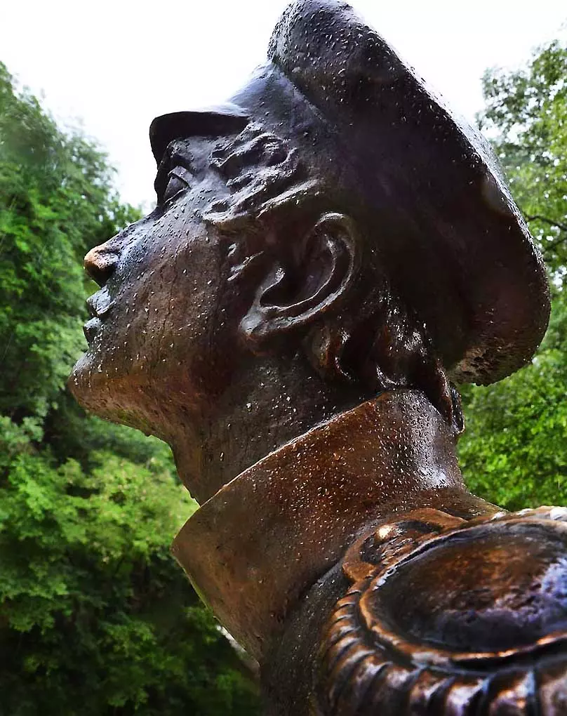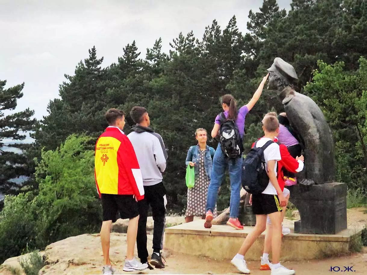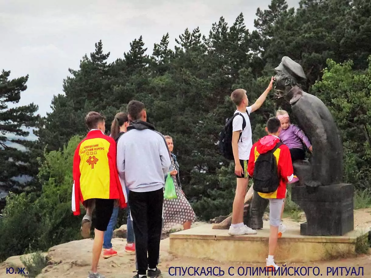 А вот спускаются с Олимпийского комплекса высокие ребята и начинают полировать скульптуре нос, который и так сверкает, мешая им же, как и другим собравшимся, сделать нормальный снимок. Хорошо, что когда то, еще в первое водружение здесь памятника на красивый пьедестал (который после переносов пропал), я сделал несколько фотосессий свежей бронзы, отсняв памятник с запасом.