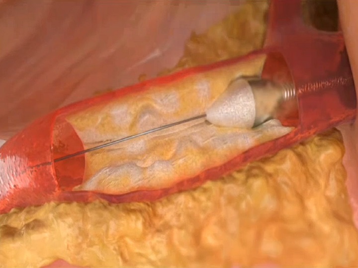 Новую методику ротационной атерэктомии используют в Региональном сосудистом центре Пятигорска. Это современный метод очищения коронарных сосудов при ишемической болезни сердца, с помощью специального вращающегося бура с алмазным напылением. Этот метод особо эффективен, когда бляшка, закупорившая сосуд, еще и окаменела (приобрела плотность, сопоставимую с плотностью камня).